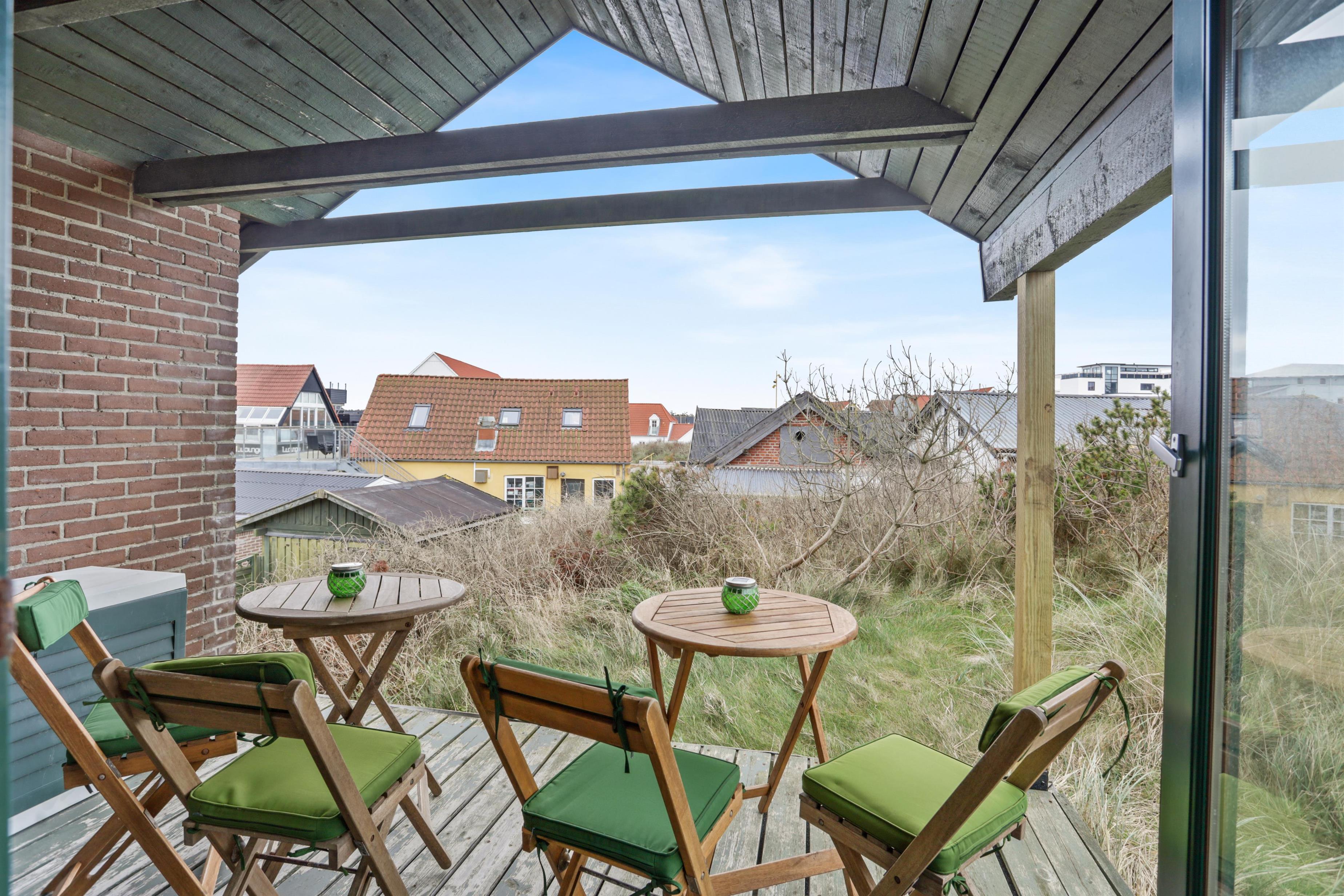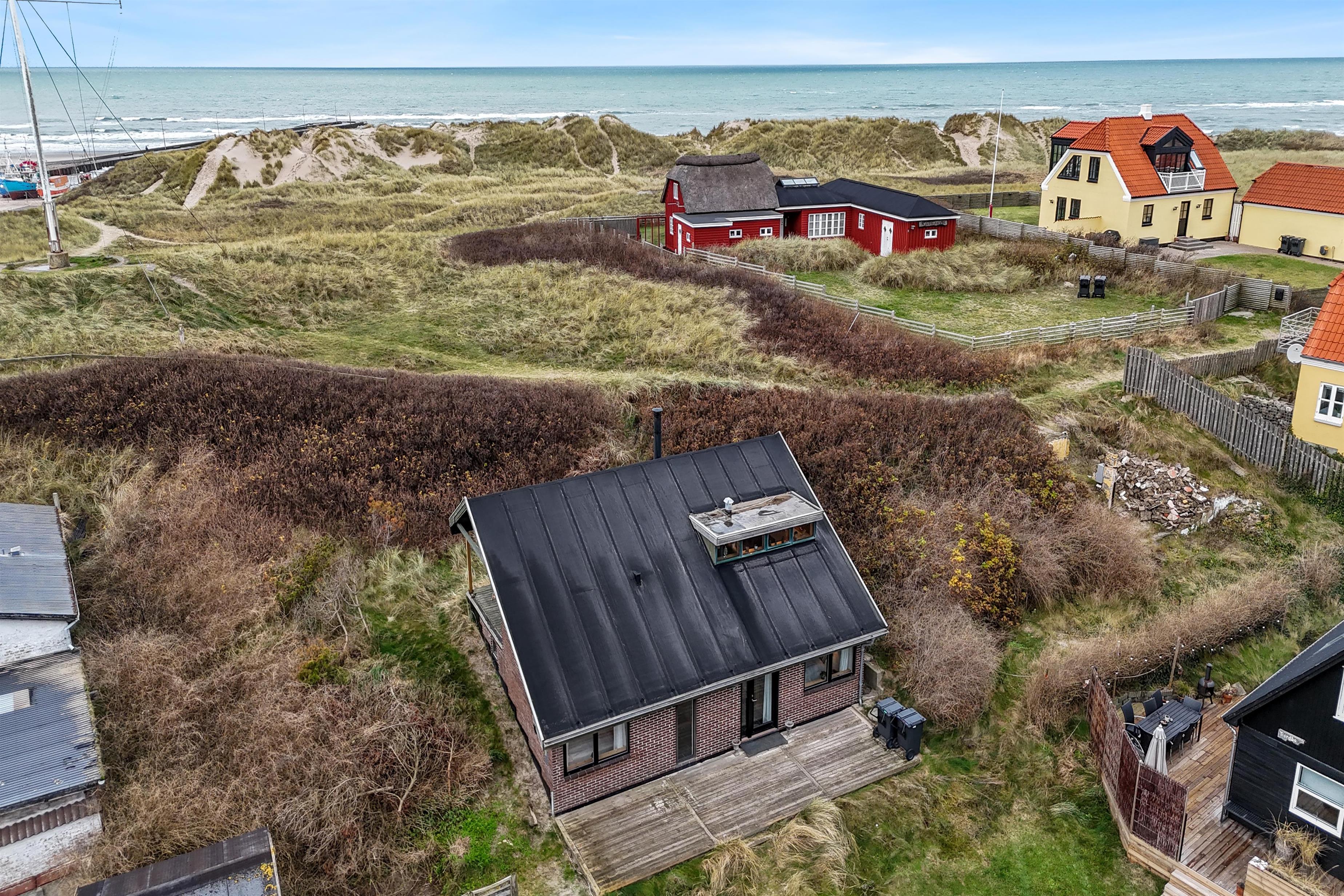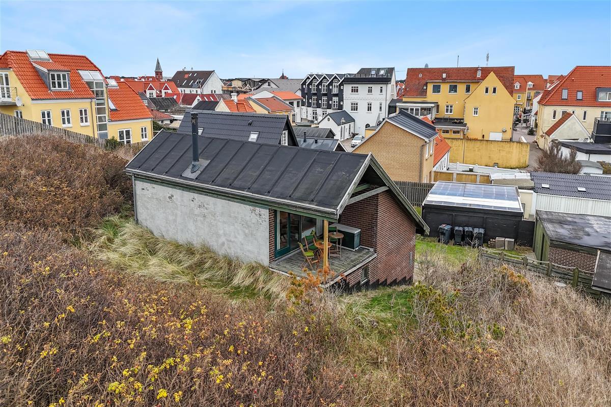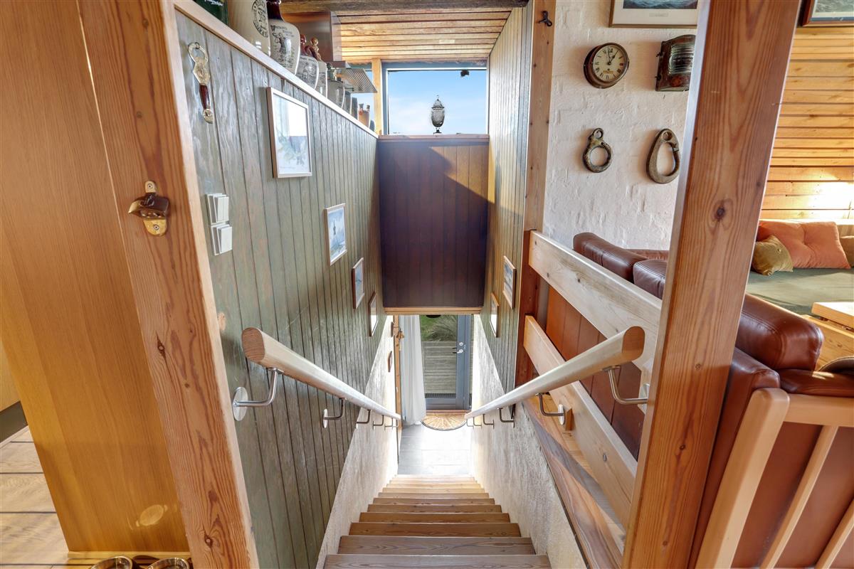 To access the holiday home, you’ll walk between two of Løkken’s popular restaurants. This gives you an immediate sense of holiday cheer and vibrant life, with the option to retreat to tranquility whenever you like. On warm summer evenings, it feels like being in the Mediterranean, surrounded by the buzz of people, cozy vibes, and the roar of the North Sea. The house is built into the dunes and offers two lovely terraces, perfect for soaking up the sun. We recommend parking at the large square nearby, as the driveway between the restaurants is narrow. The terrain is hilly and may not be suitable for those with mobility issues.