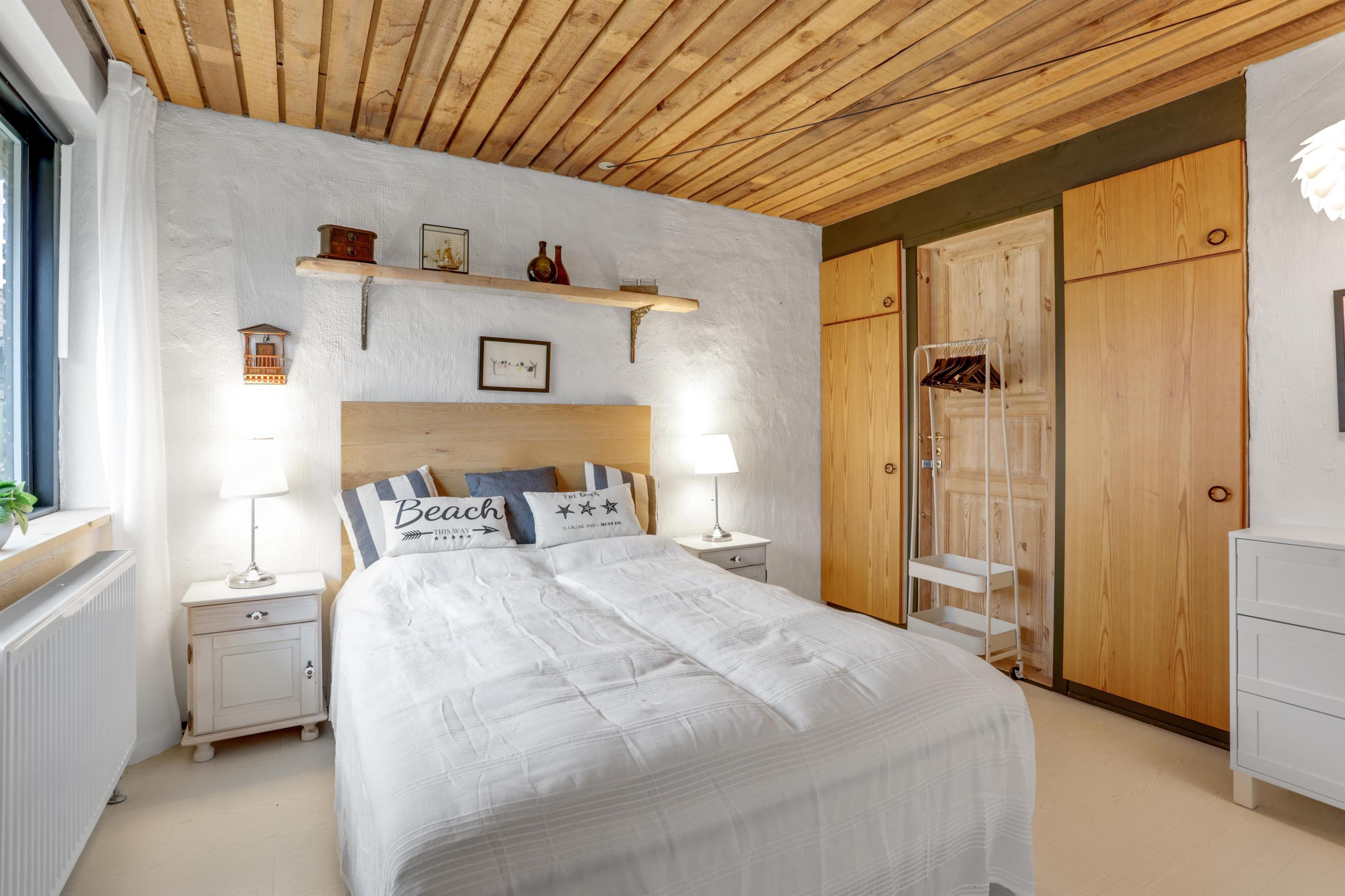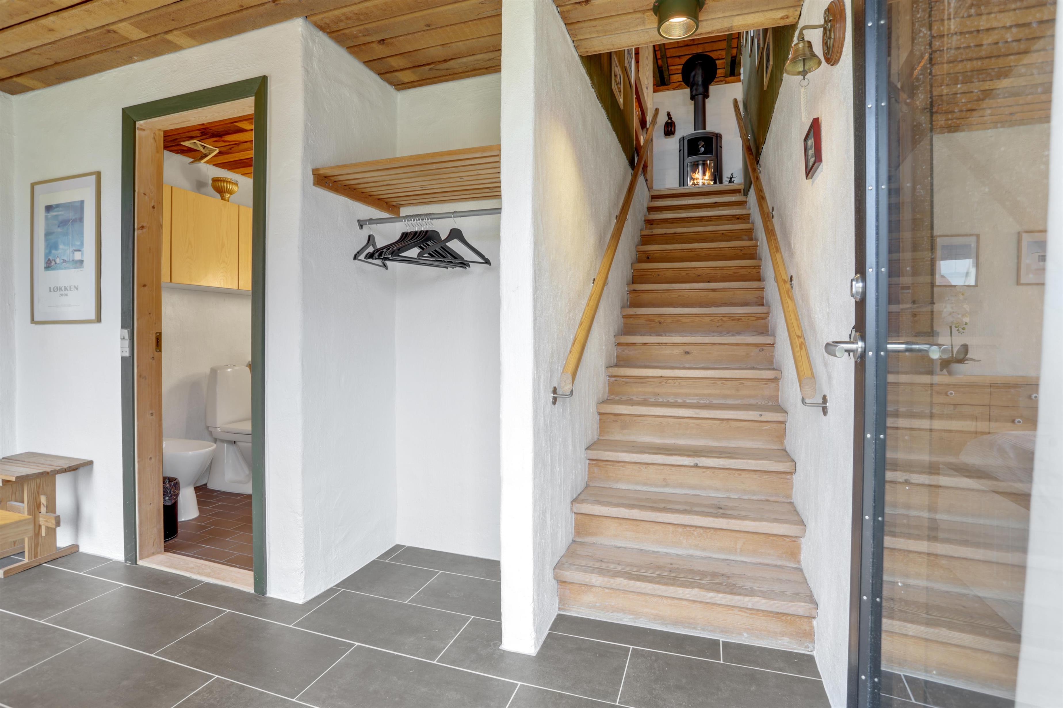 The moment you step through the door, you’ll sense the warm and welcoming atmosphere of this house. The entrance leads to two cozy bedrooms on either side, along with the bathroom. Straight ahead is the staircase to the first floor, where a wood-burning stove greets you. When the stove is lit, the coziness spreads from the very first step.
