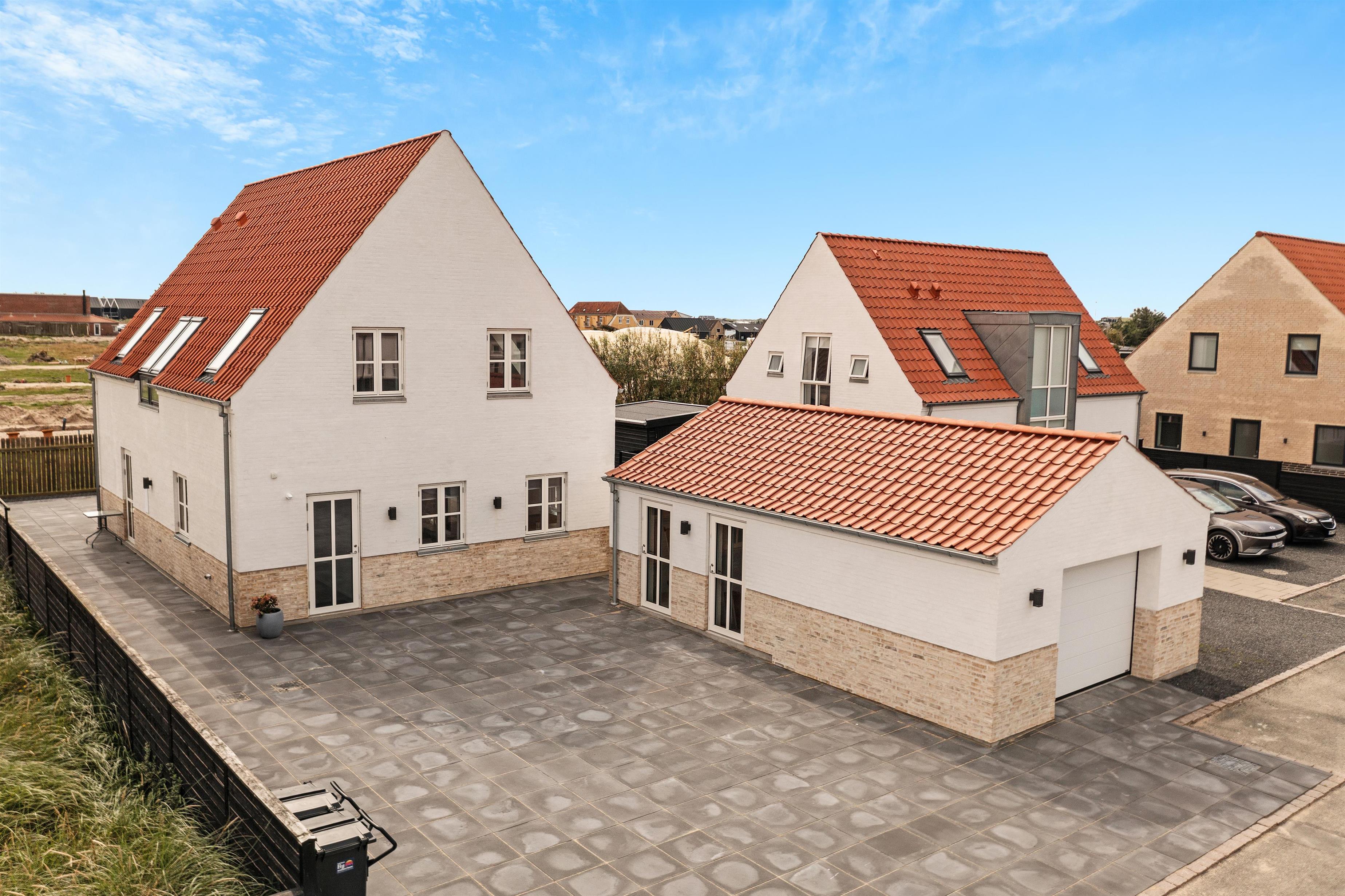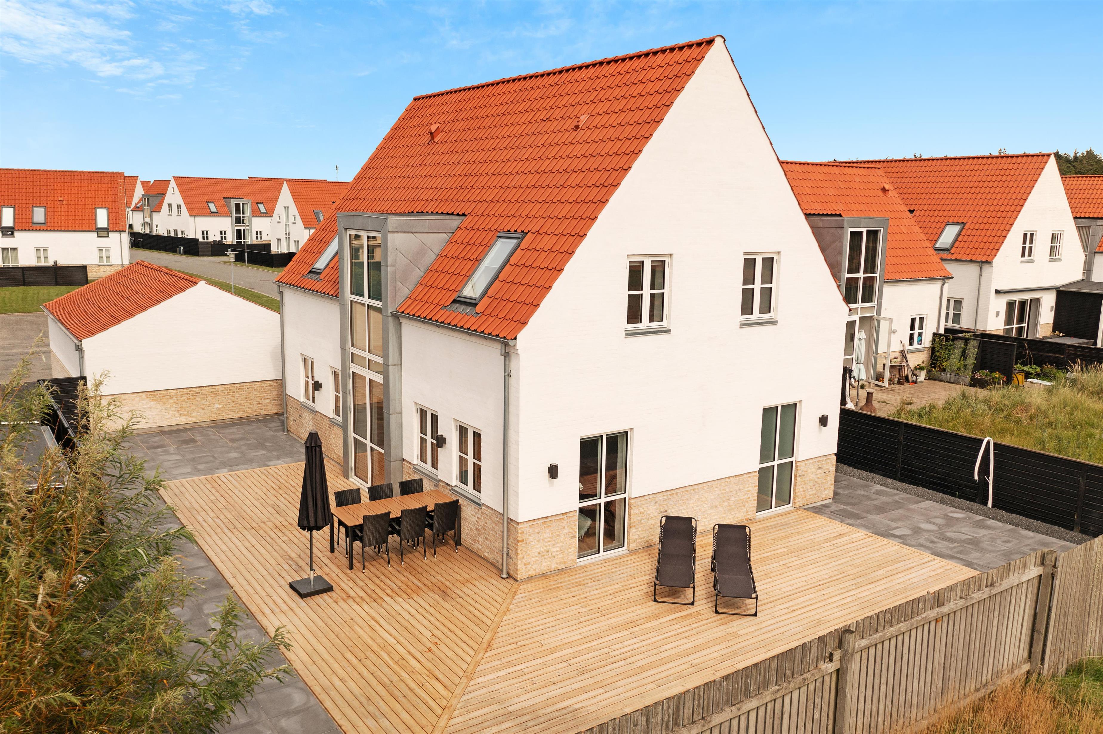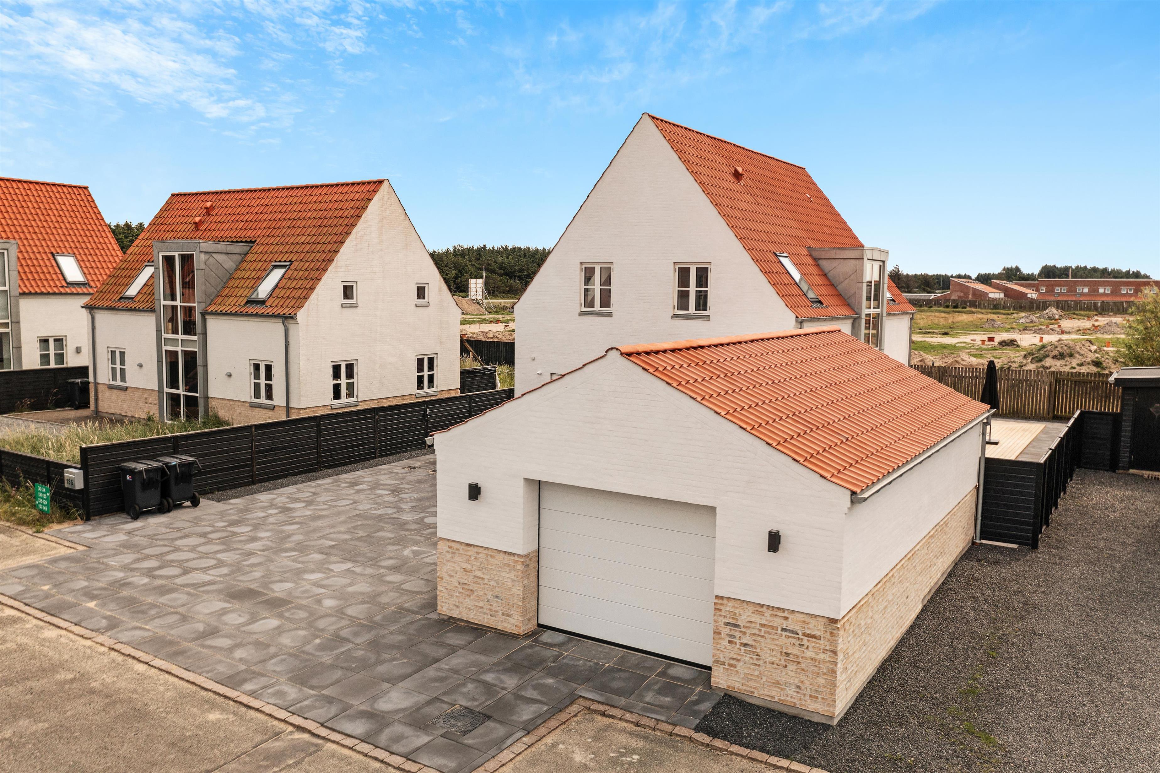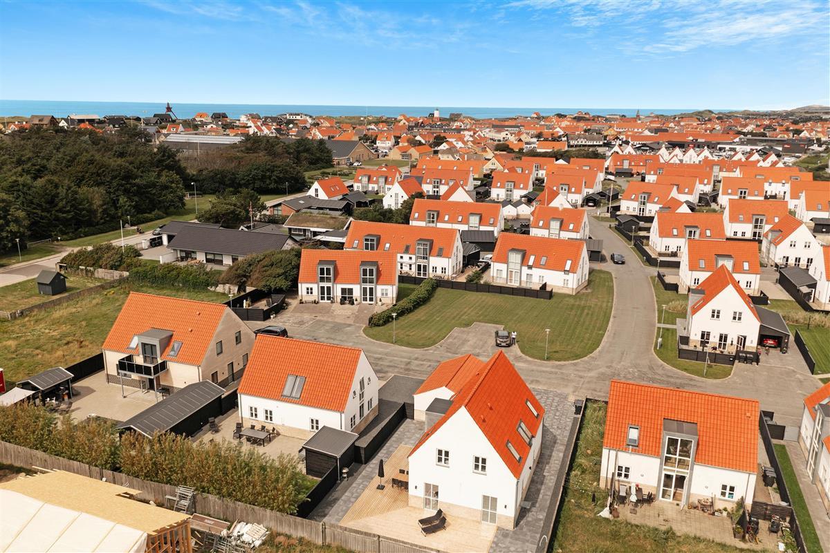 A lovely holiday home built in 2022. This holiday home offers modern comfort for those who are not into the traditional wooden houses in the dunes. Josefine Have number 135 is a modern brick house that offers almost everything the heart could desire in terms of modern facilities. The house has two bedrooms on the first floor, where there is also a large living room. In addition, the house has three bathrooms and there is room for 6 people. On the ground floor there is, among other things, a beautiful open concept kitchen and dining room, with large window sections and much light - and comfort that suits everybody! Like the other beautiful houses in Josefines Have, the holiday home is a two floor house with a view of the beautiful Danish holiday home areas as well as Vendsyssel Park, which is on the way to the beach, immediately on the other side of Søndergade. In Josefines Have no. 135 you will find shelter on the terrace, surrounded by several beautiful, white houses with red rooftops and large window sections - everything kept completely aligned and beautiful. The backyard is enclosed and private. In addition to the holiday homes for rent, Josefines Have also houses several permanent residents, so the area is safe and well maintained. There isn’t much traffic, as the entire area consists of enclosed roads with just a single exit and entrance. The cottage is non-smoking and youth groups are not allowed.