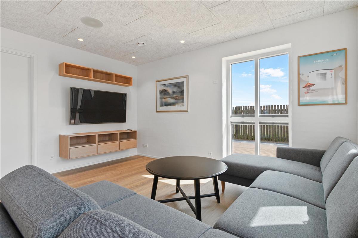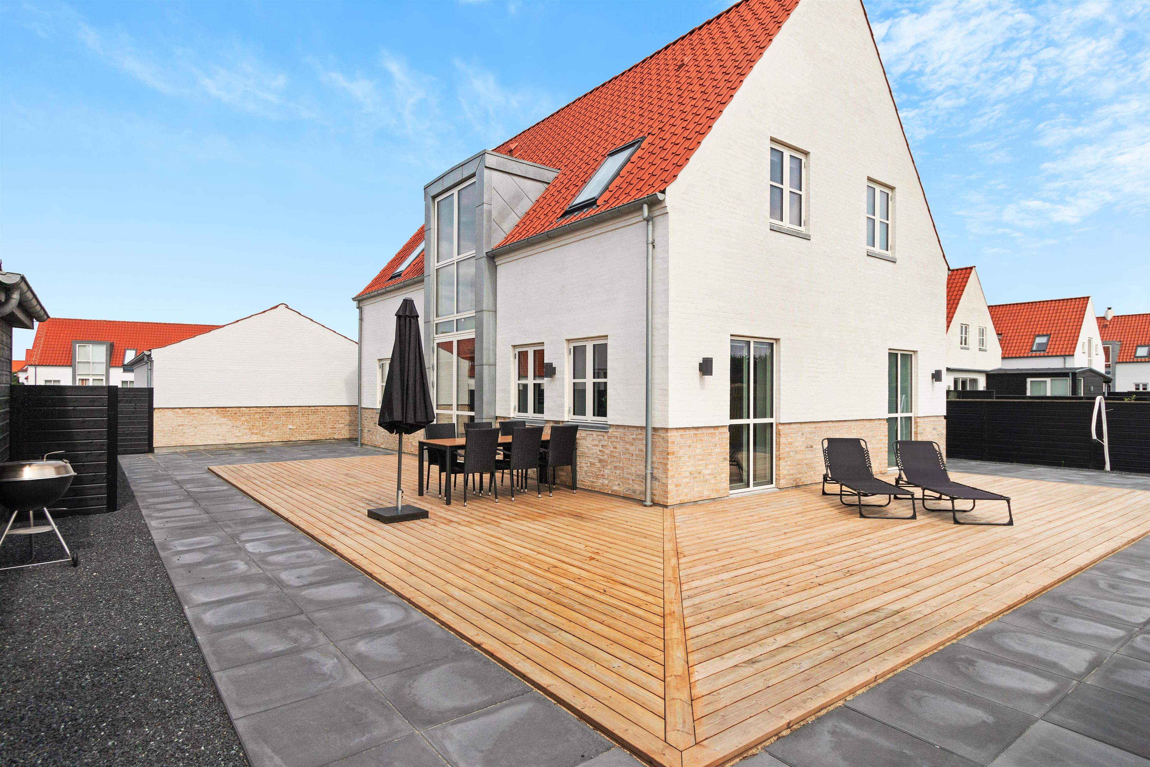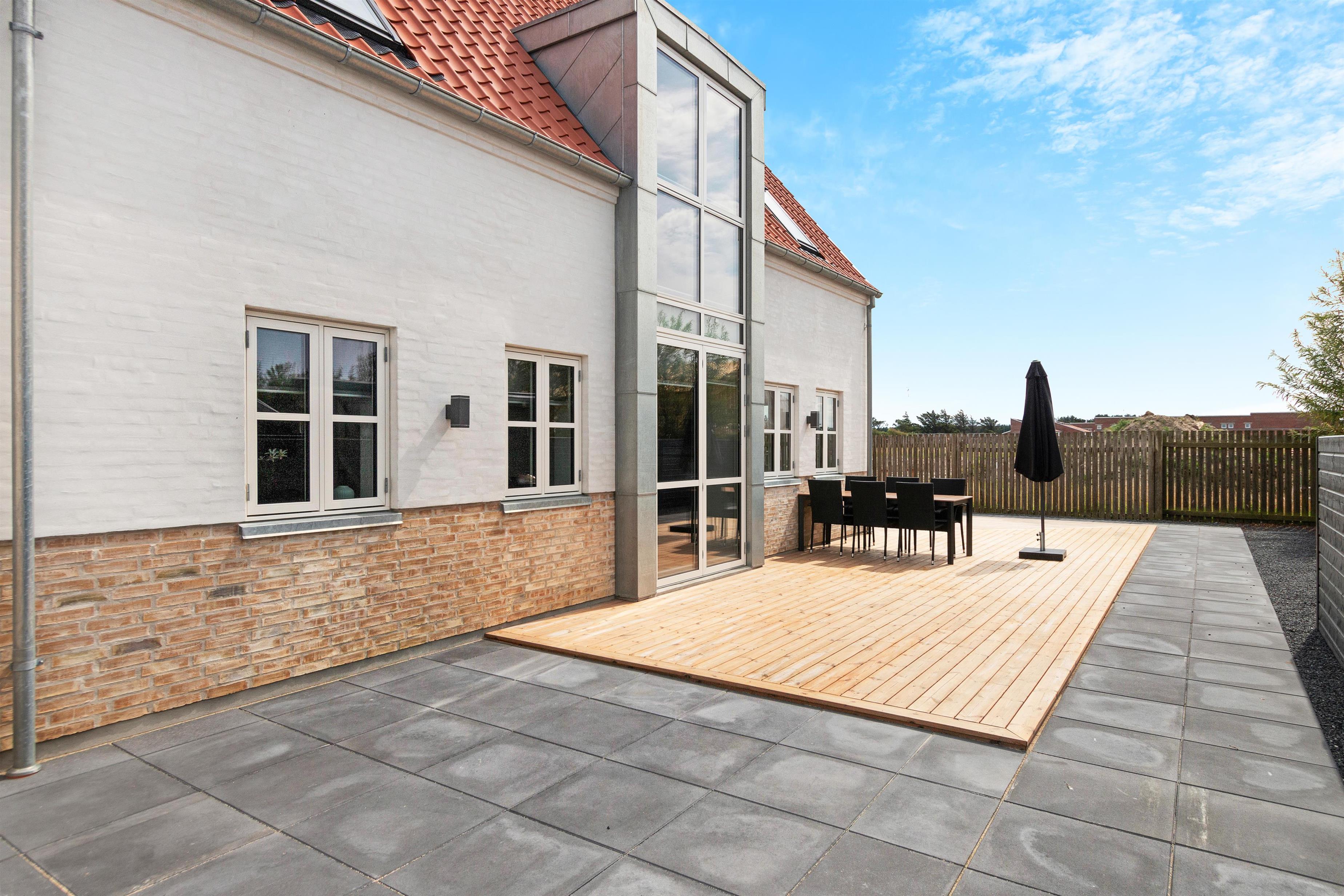 A lovely holiday home built in 2022. This holiday home offers modern comfort for those who are not into the traditional wooden houses in the dunes. Josefine Have number 135 is a modern brick house that offers almost everything the heart could desire in terms of modern facilities. The house has two bedrooms on the first floor, where there is also a large living room. In addition, the house has three bathrooms and there is room for 6 people. On the ground floor there is, among other things, a beautiful open concept kitchen and dining room, with large window sections and much light - and comfort that suits everybody! Like the other beautiful houses in Josefines Have, the holiday home is a two floor house with a view of the beautiful Danish holiday home areas as well as Vendsyssel Park, which is on the way to the beach, immediately on the other side of Søndergade. In Josefines Have no. 135 you will find shelter on the terrace, surrounded by several beautiful, white houses with red rooftops and large window sections - everything kept completely aligned and beautiful. The backyard is enclosed and private. In addition to the holiday homes for rent, Josefines Have also houses several permanent residents, so the area is safe and well maintained. There isn’t much traffic, as the entire area consists of enclosed roads with just a single exit and entrance. The cottage is non-smoking and youth groups are not allowed.