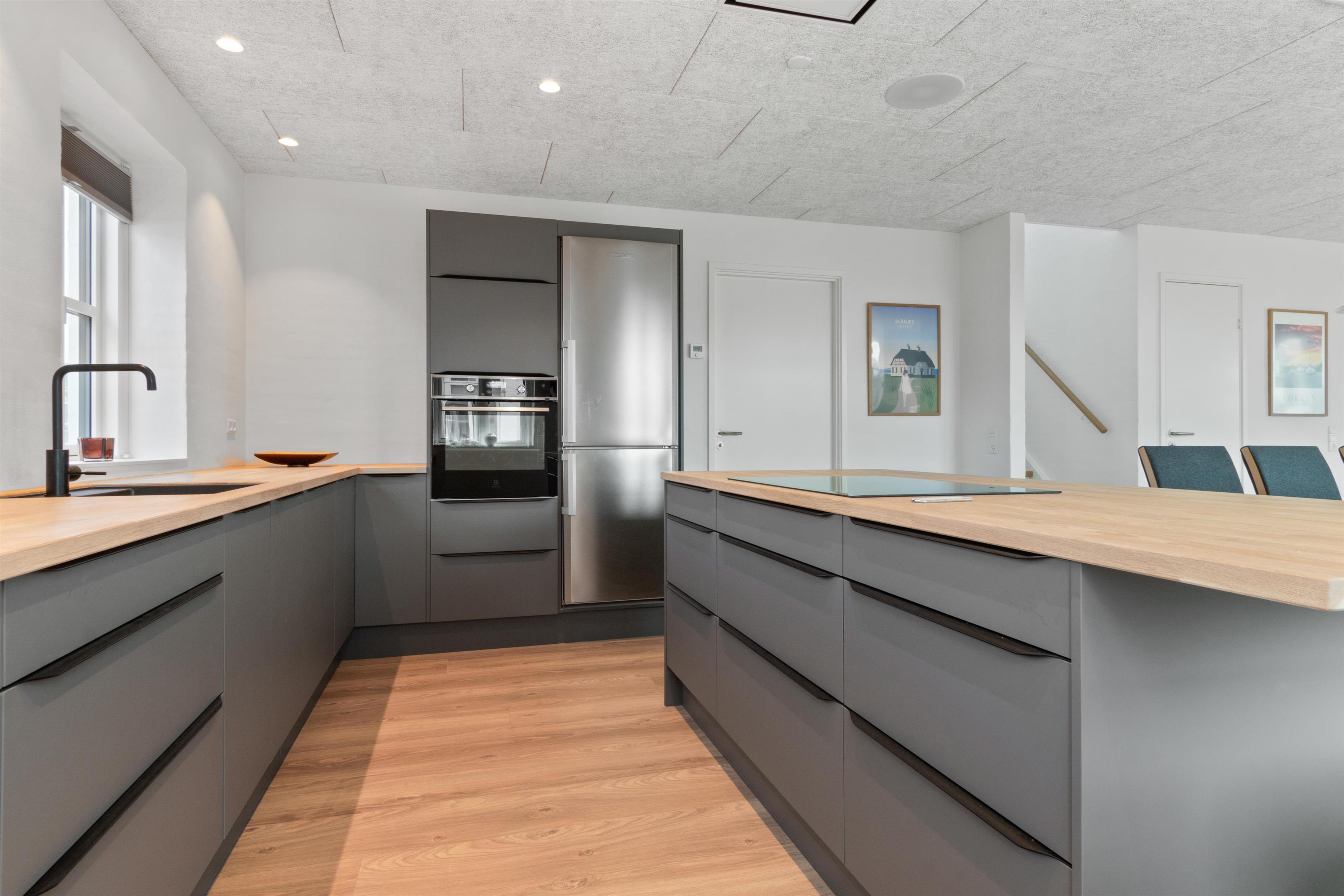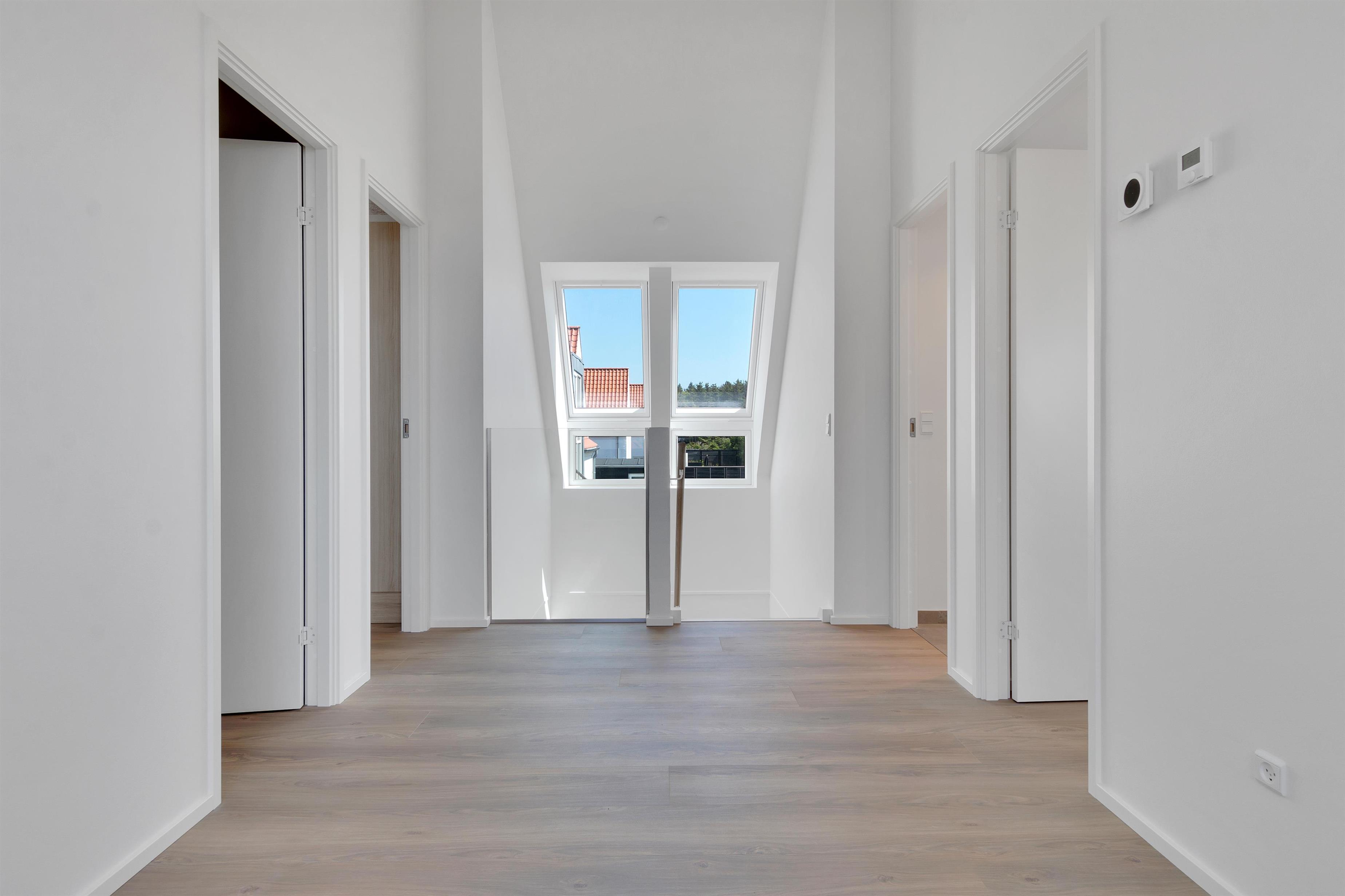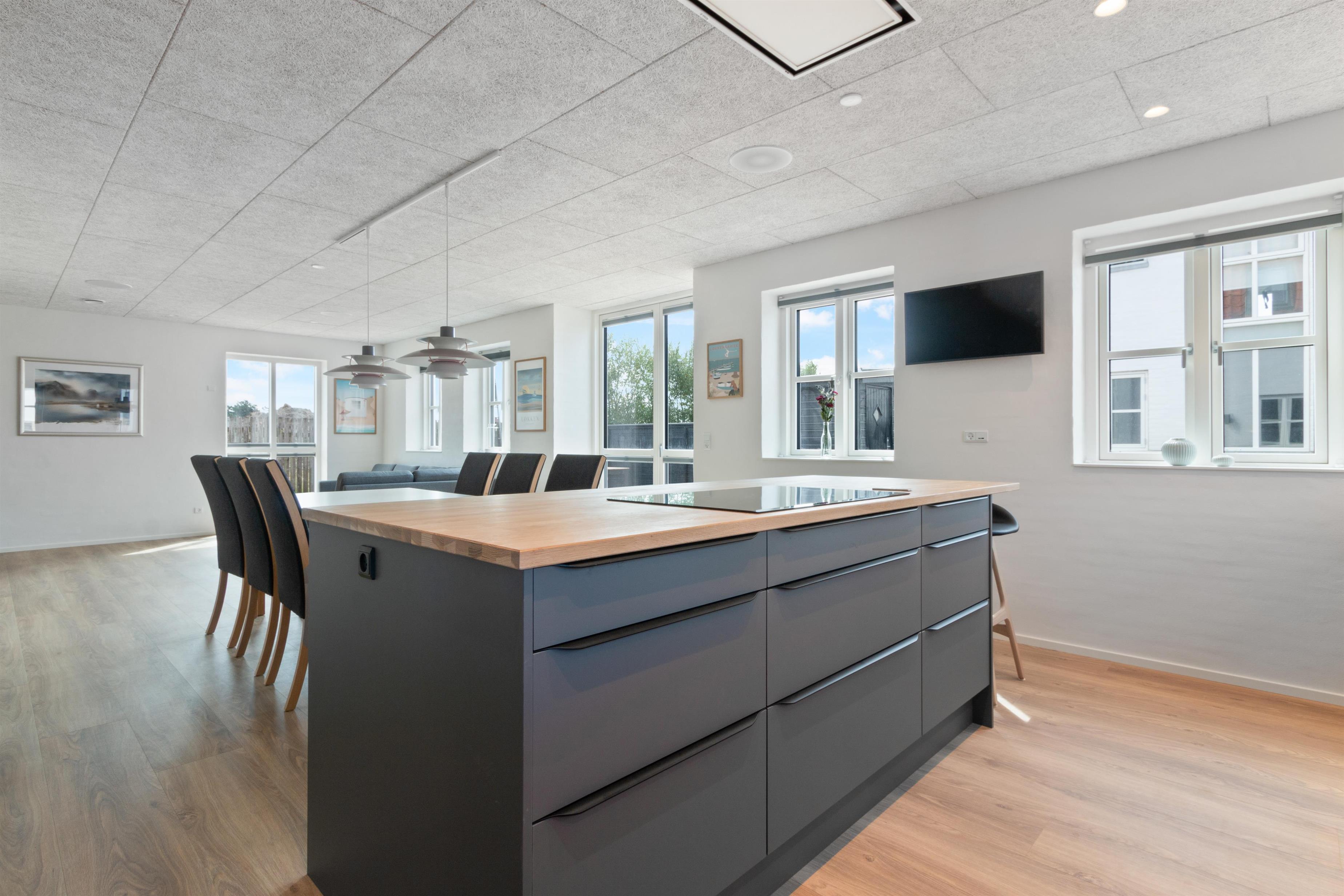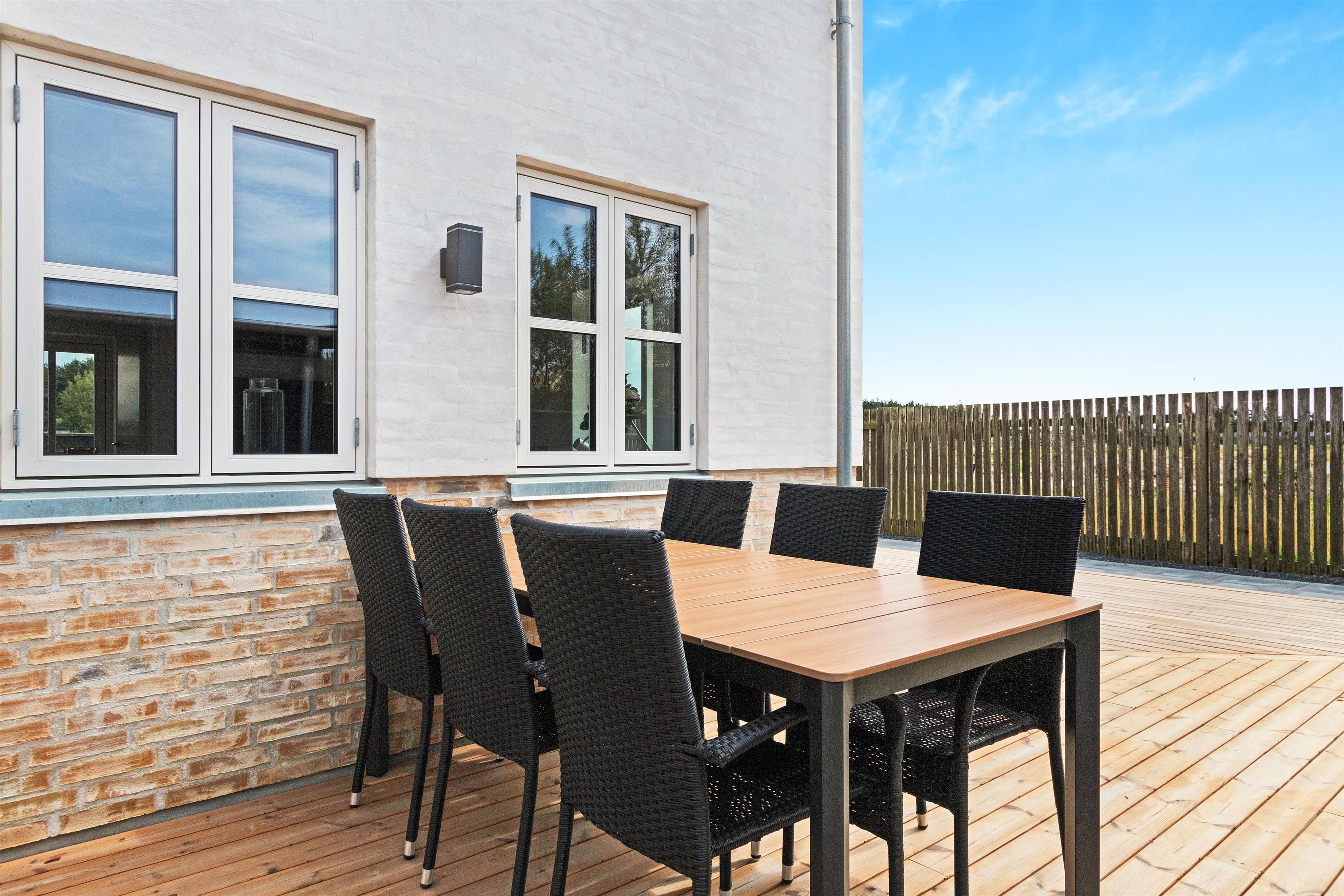A lovely holiday home built in 2022. This holiday home offers modern comfort for those who are not into the traditional wooden houses in the dunes. Josefine Have number 135 is a modern brick house that offers almost everything the heart could desire in terms of modern facilities. The house has two bedrooms on the first floor, where there is also a large living room. In addition, the house has three bathrooms and there is room for 6 people. On the ground floor there is, among other things, a beautiful open concept kitchen and dining room, with large window sections and much light - and comfort that suits everybody! Like the other beautiful houses in Josefines Have, the holiday home is a two floor house with a view of the beautiful Danish holiday home areas as well as Vendsyssel Park, which is on the way to the beach, immediately on the other side of Søndergade. In Josefines Have no. 135 you will find shelter on the terrace, surrounded by several beautiful, white houses with red rooftops and large window sections - everything kept completely aligned and beautiful. The backyard is enclosed and private. In addition to the holiday homes for rent, Josefines Have also houses several permanent residents, so the area is safe and well maintained. There isn’t much traffic, as the entire area consists of enclosed roads with just a single exit and entrance. The cottage is non-smoking and youth groups are not allowed.