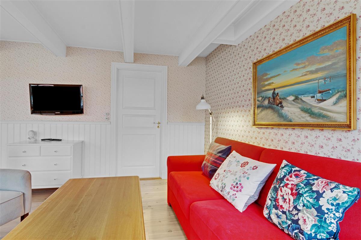 The apartment's rooms are bright and welcoming, and the style is exactly like something out of an episode of "Badehotellet" (Danish Series). The apartment's kitchen/dining room and living room is one large space with a dining table and TV area, where the sofa is a sofa bed for extra bedding. From the living room, you can access a lovely, sunny terrace (when the weather permits it), and here you are close to your neighbors. The atmosphere is always cozy, and there are almost always happy guests enjoying themselves. From the apartment's bedroom, you have a view of Løkken's Torv (Market Square), where you can follow the holiday mood at the square's restaurants, candy store, shopping opportunities and more. The bathroom and toilet are en-suite to the bedroom and have the same lovely atmosphere as the rest of the holiday home with blue and white tiles. The holiday apartment is non-smoking and youth groups are not allowed.