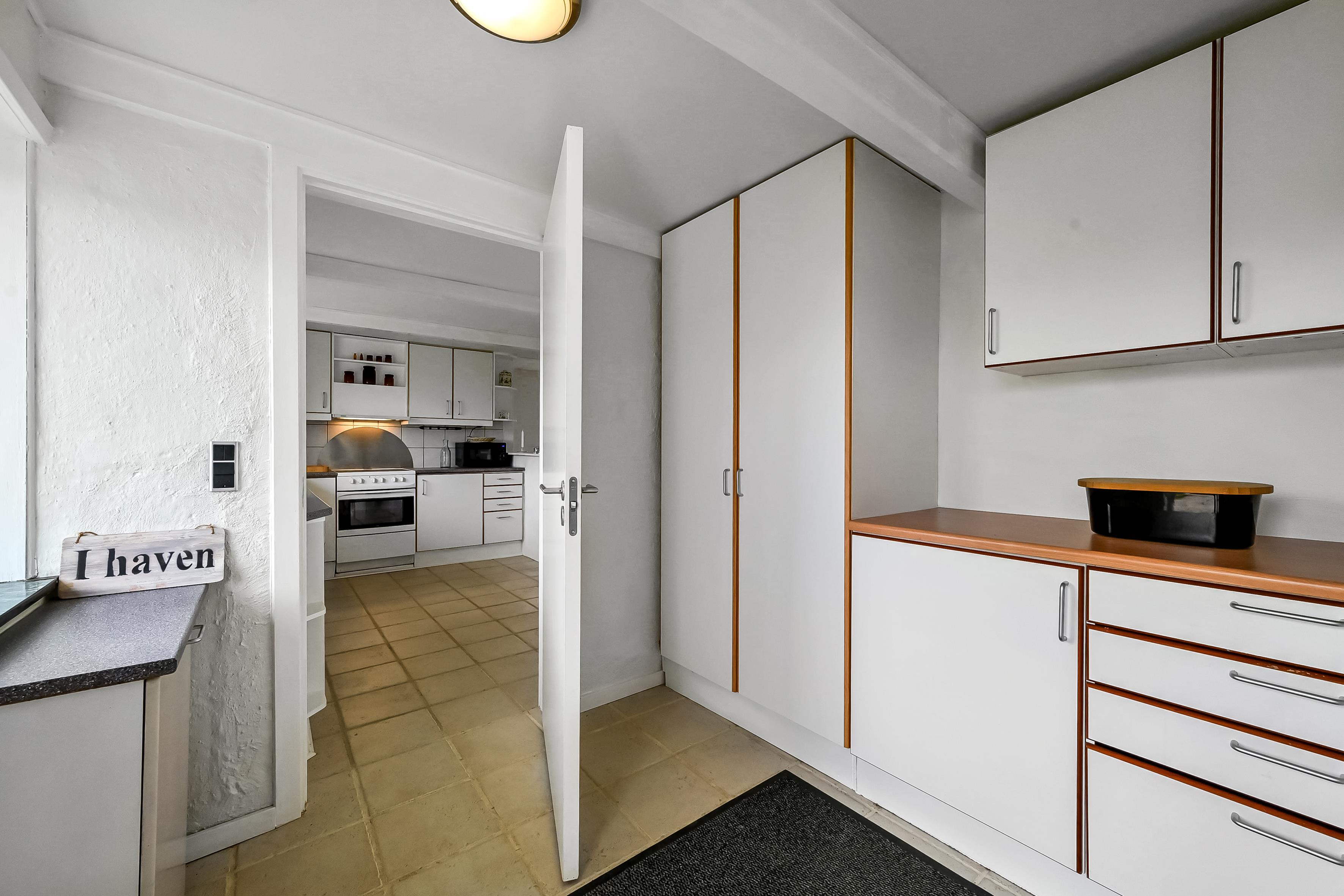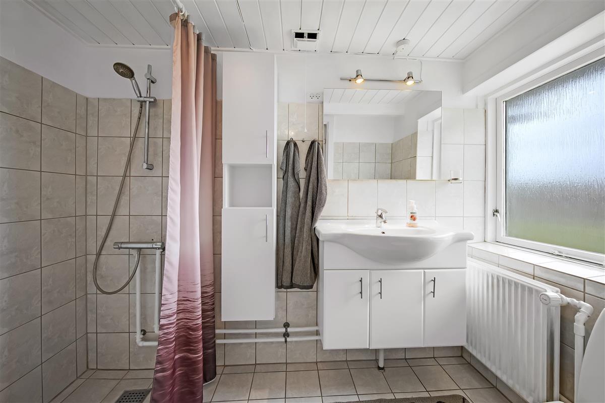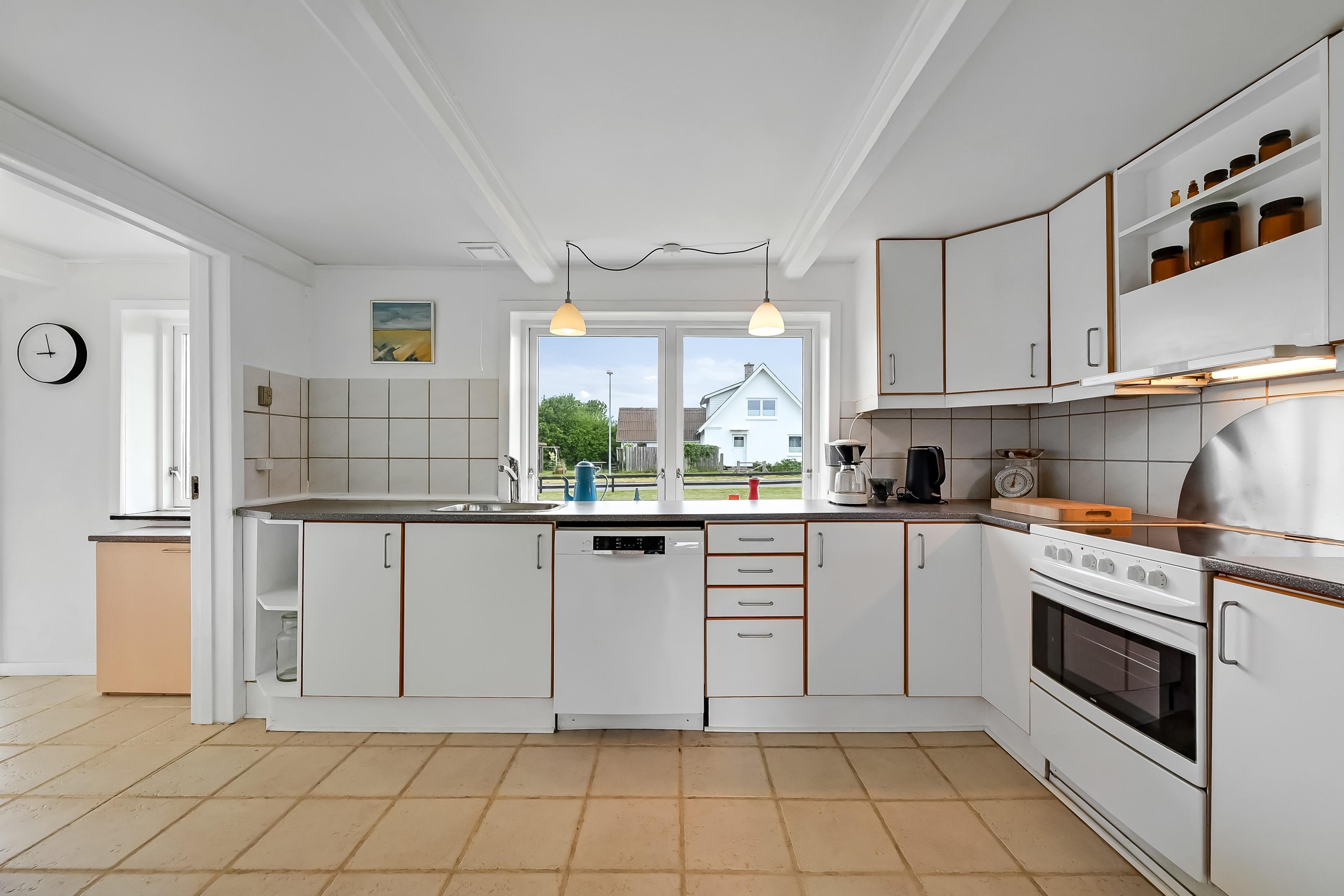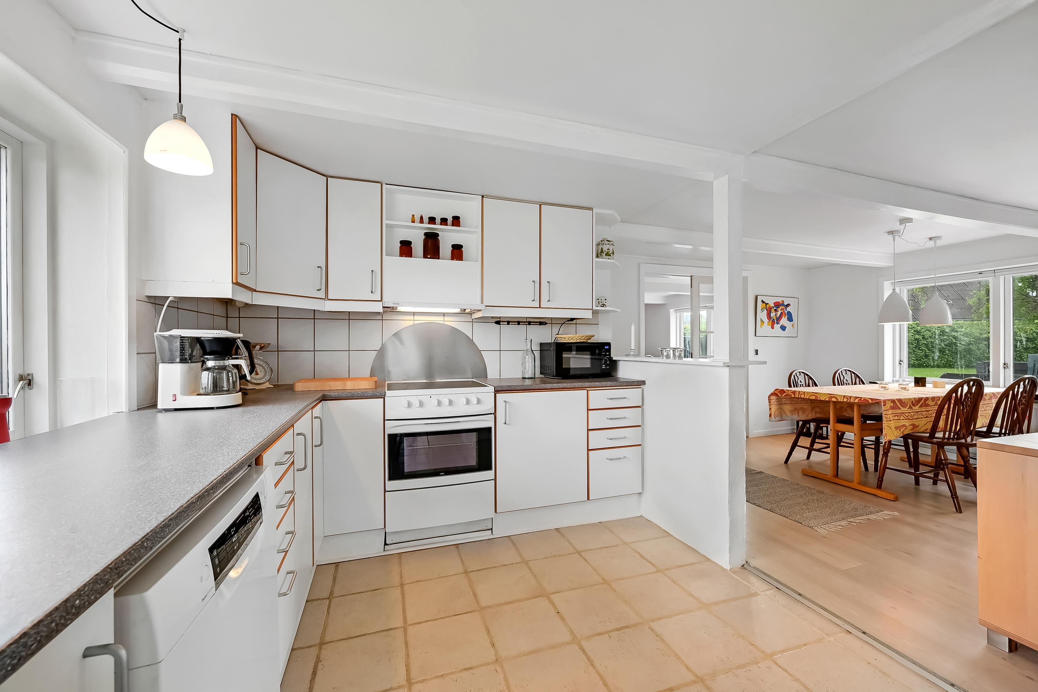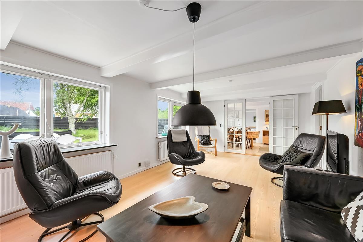 The house is 120 m² and spread over two floors. On the ground floor, you'll find a bright and open living space with a living room and dining kitchen in one. The kitchen is connected to the dining area and is cosy and well-lit – a great space for cooking, relaxing, or playing games.