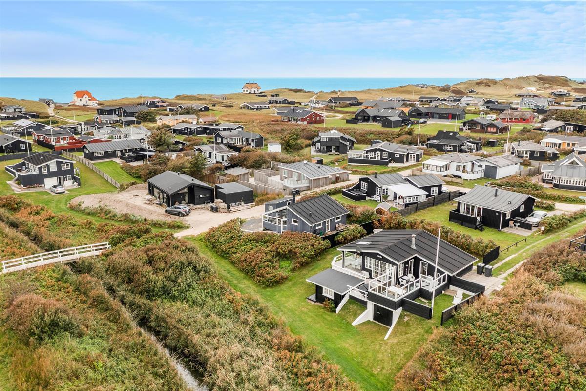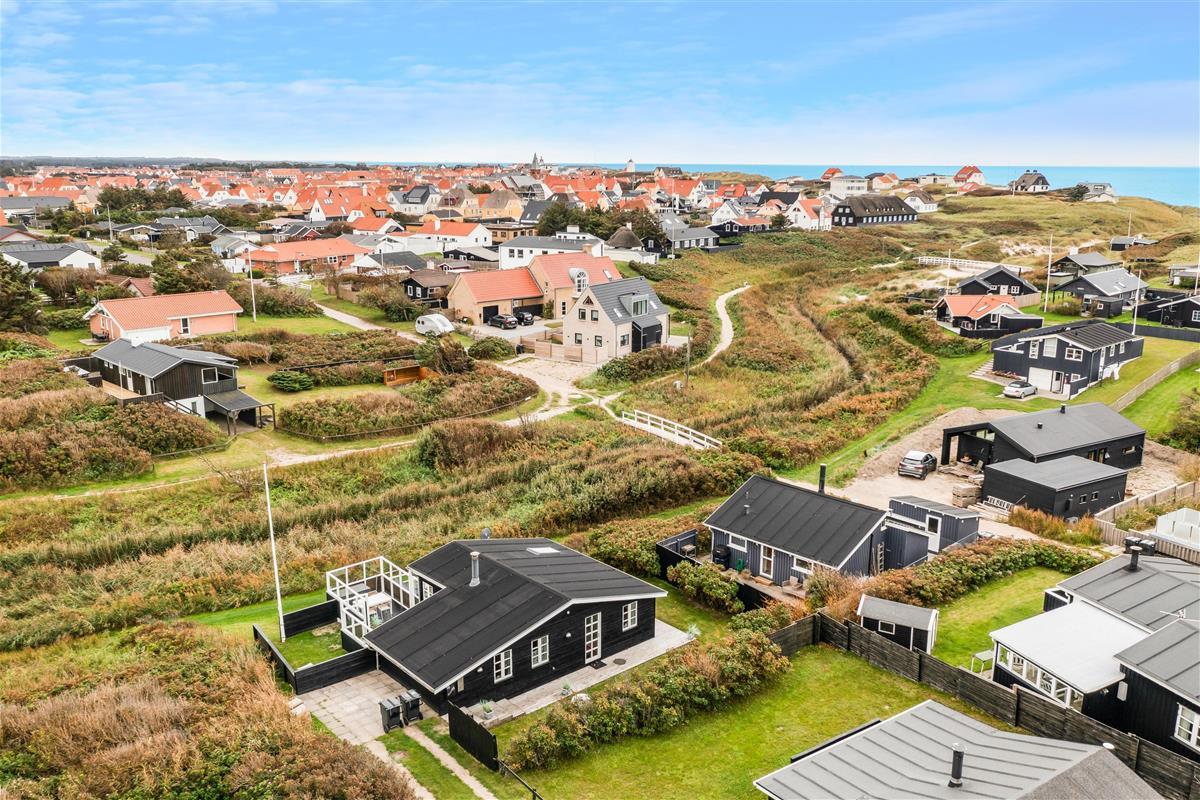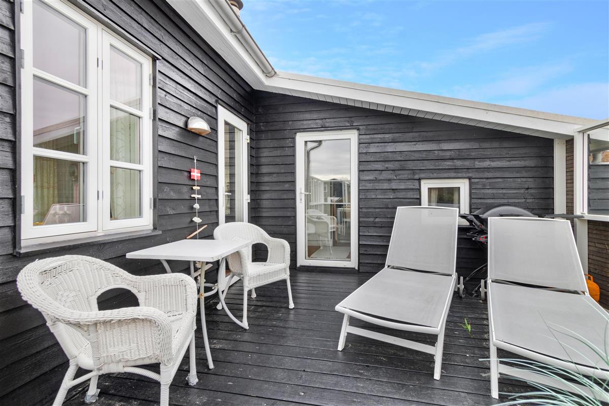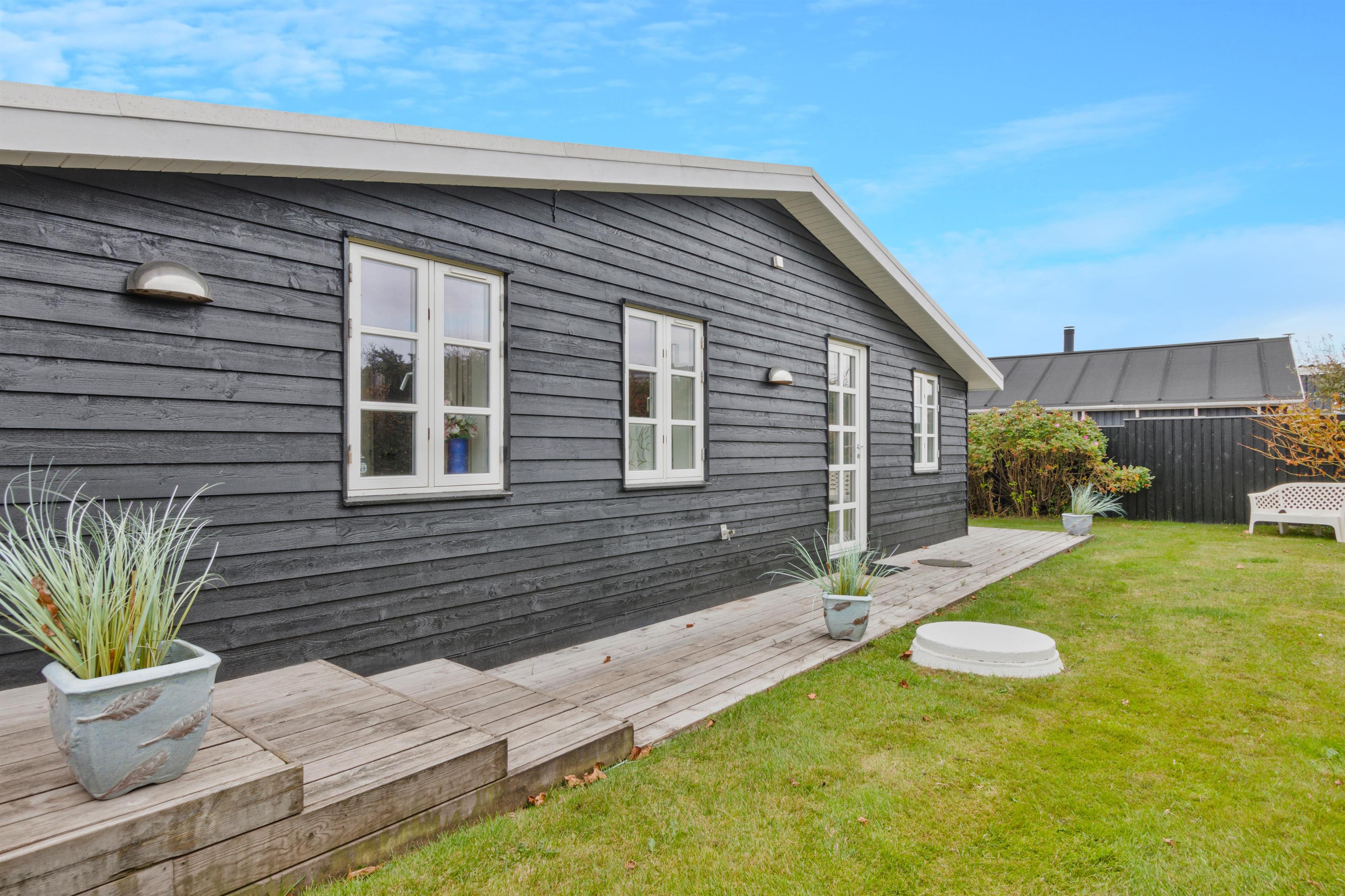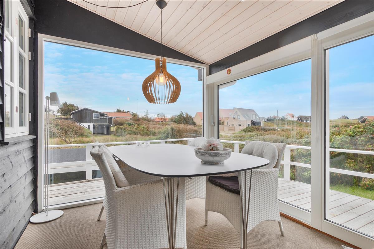 The holiday home is extremely charming and must be experienced. It's located at the end of Drosselvej, overlooking Furreby Creek and into Løkken, as well as over some of the lovely vacation homes in Furreby. There's a terrace around half of the summer house, providing plenty of opportunities for sunbathing and relaxation. Inside the house, there's a delightful distribution of space with an open kitchen/living room/dining area and a lovely conservatory where you can sit in shelter and enjoy the view. There are 2 bedrooms and space for 4 people. The house is decorated in a delightful, light summer house style, and in our view, it offers everything a classic summer vacation requires and more. There's parking space for two cars next to the house.