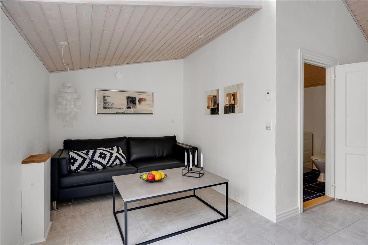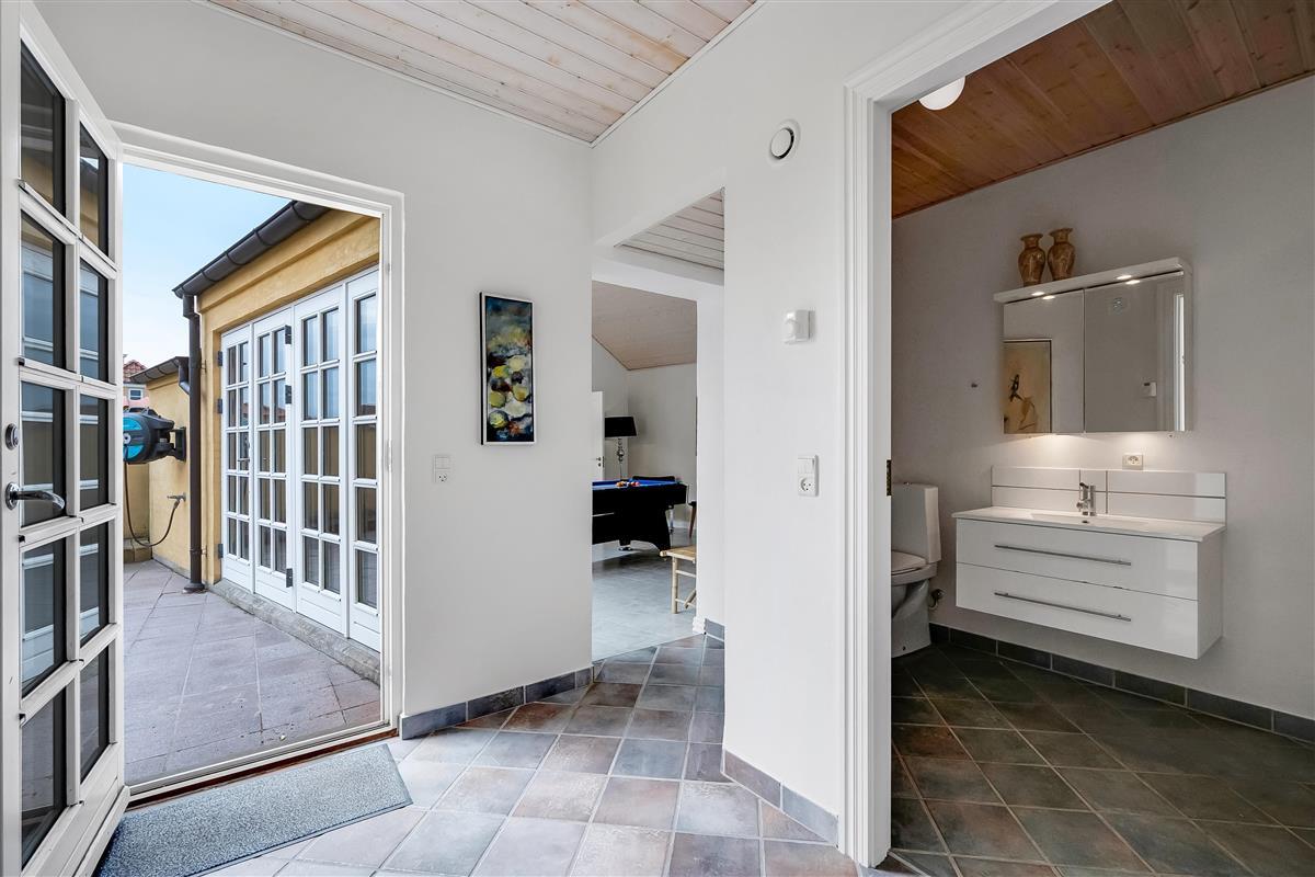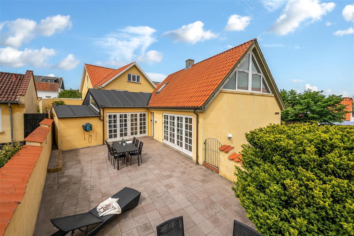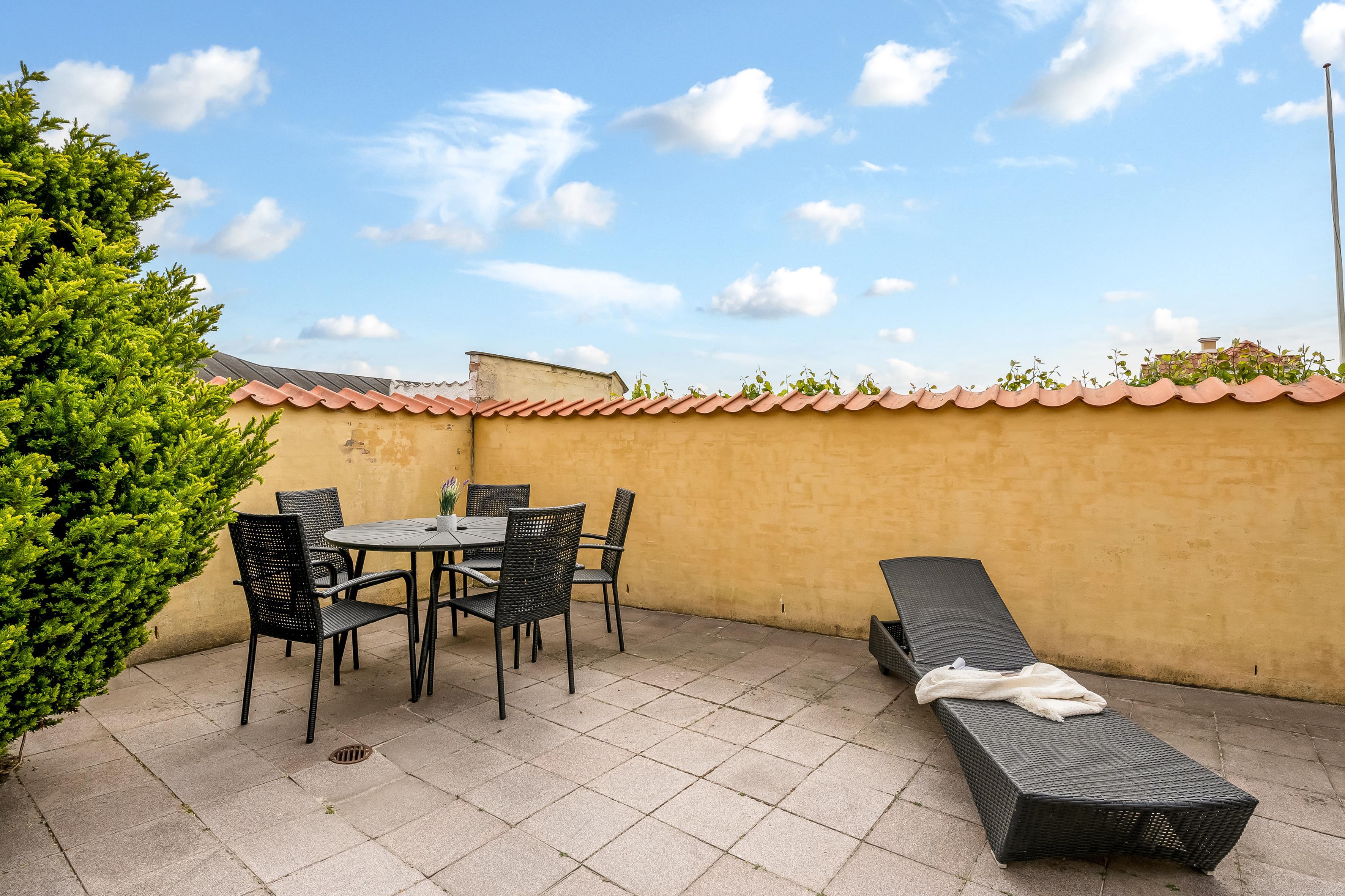 The private terrace is tucked away behind the house. The street, Strandstien, ends in a dead end, turning into a dune path leading to the beach. This makes the street quiet and peaceful.
