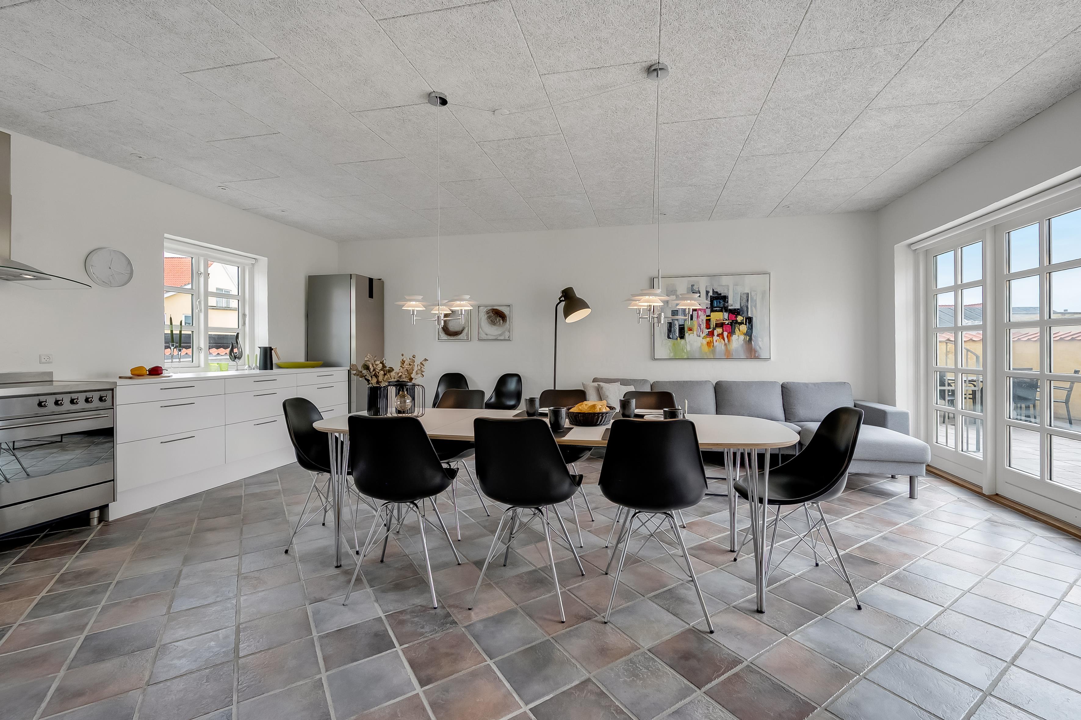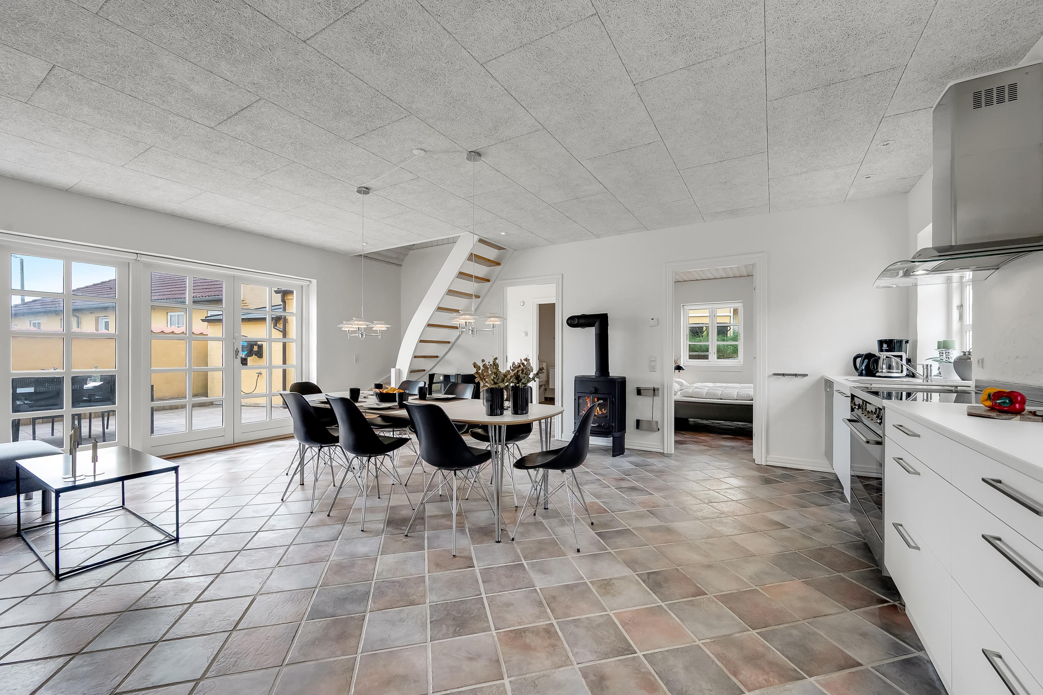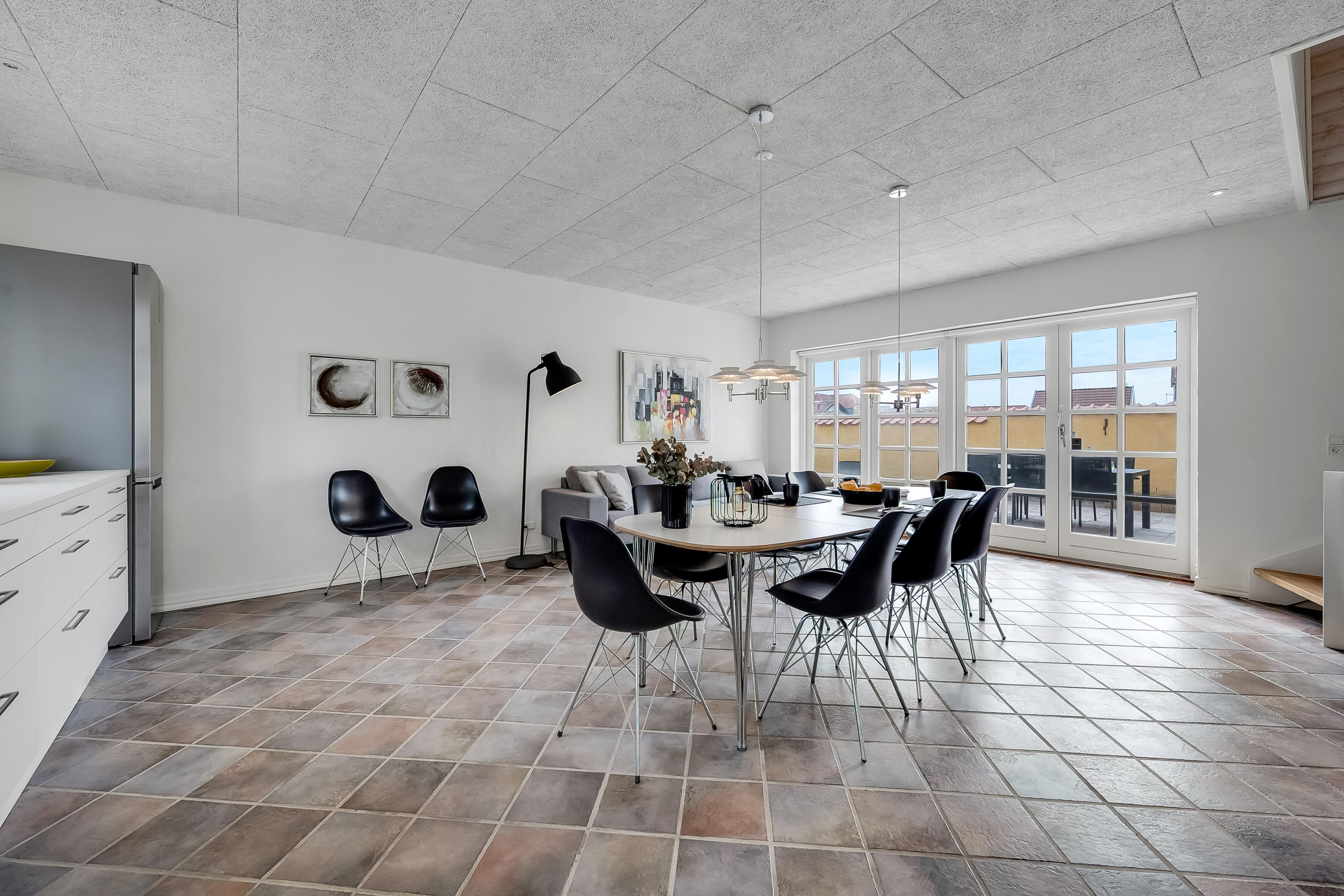 The private terrace is tucked away behind the house. The street, Strandstien, ends in a dead end, turning into a dune path leading to the beach. This makes the street quiet and peaceful.