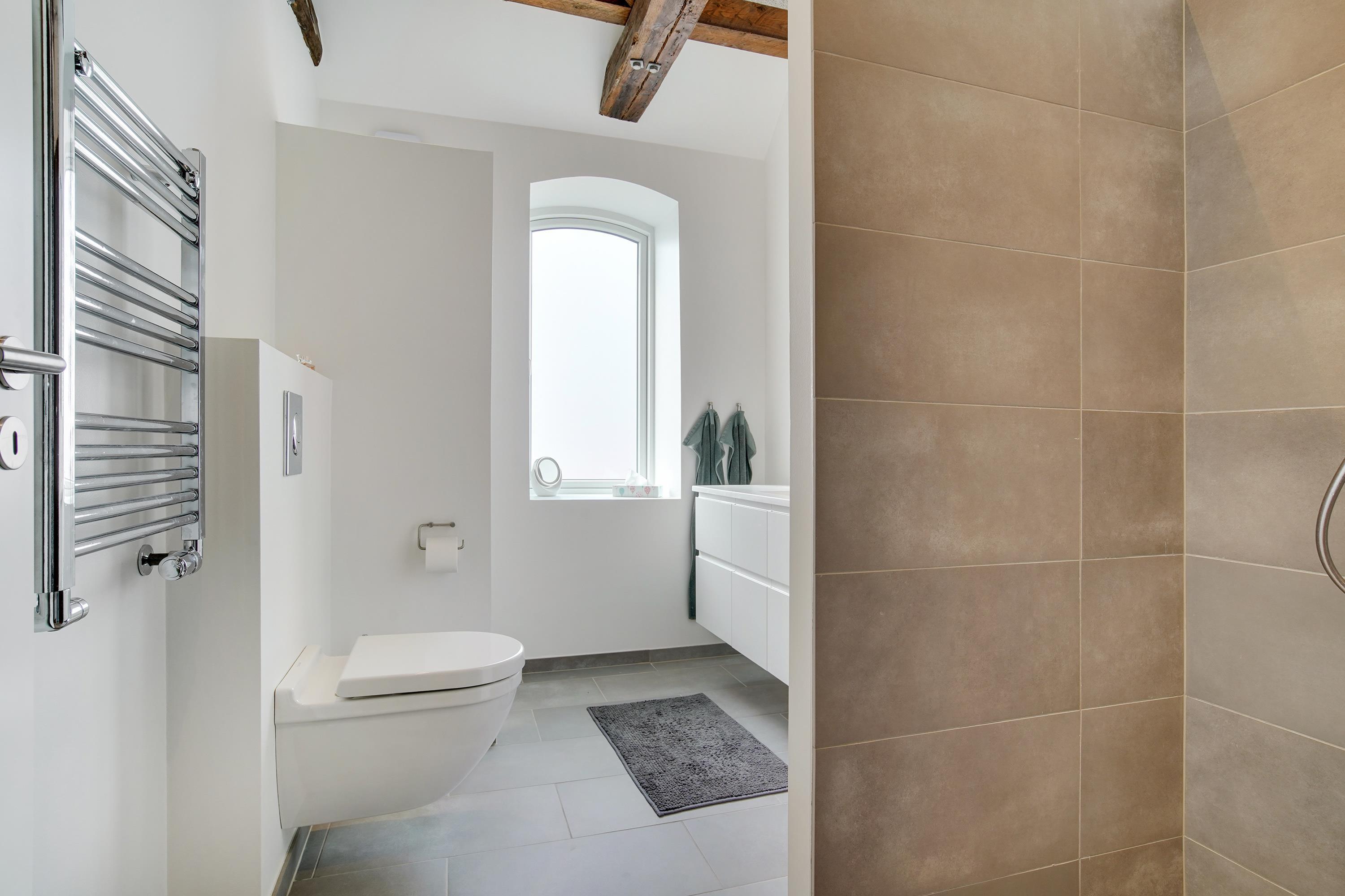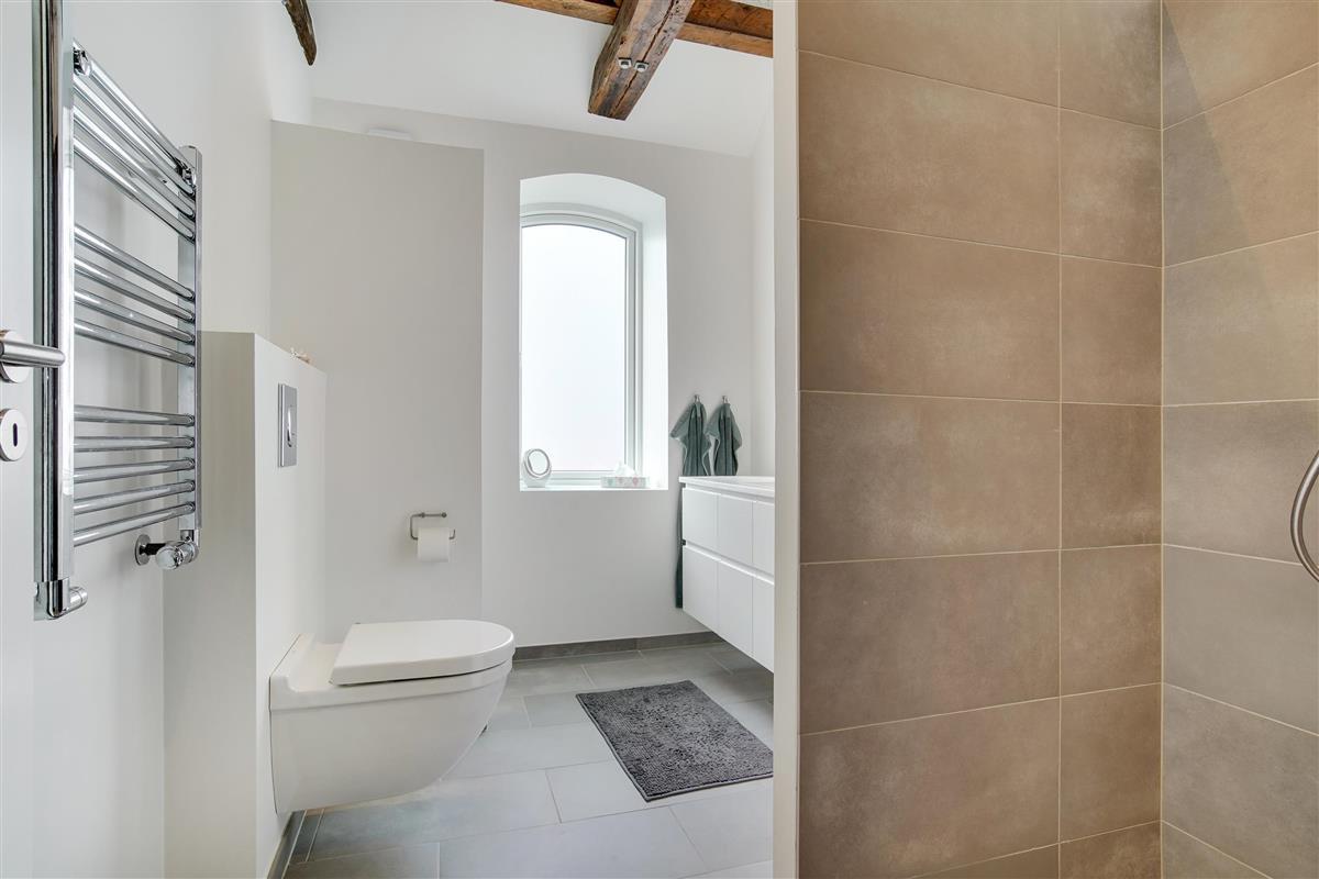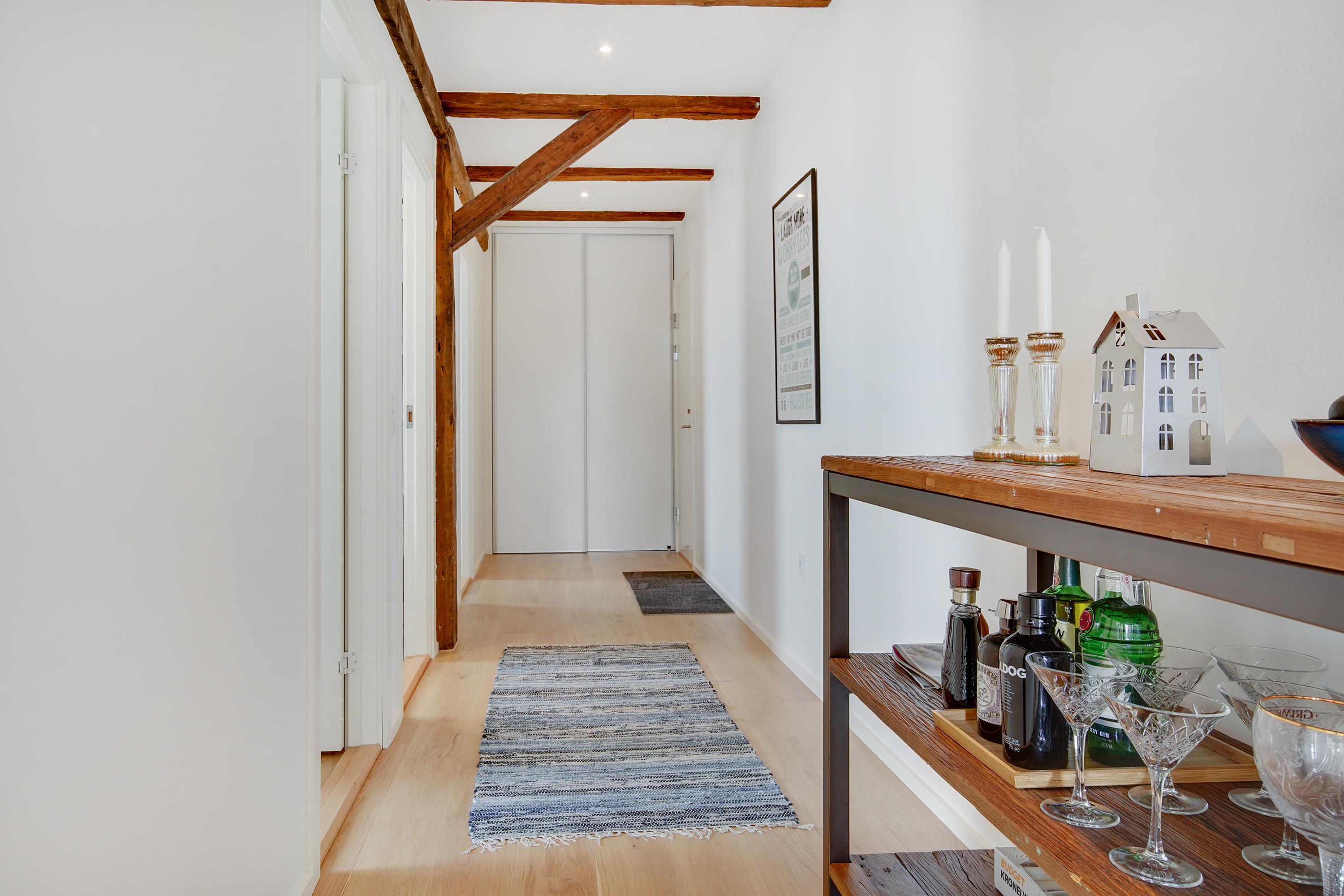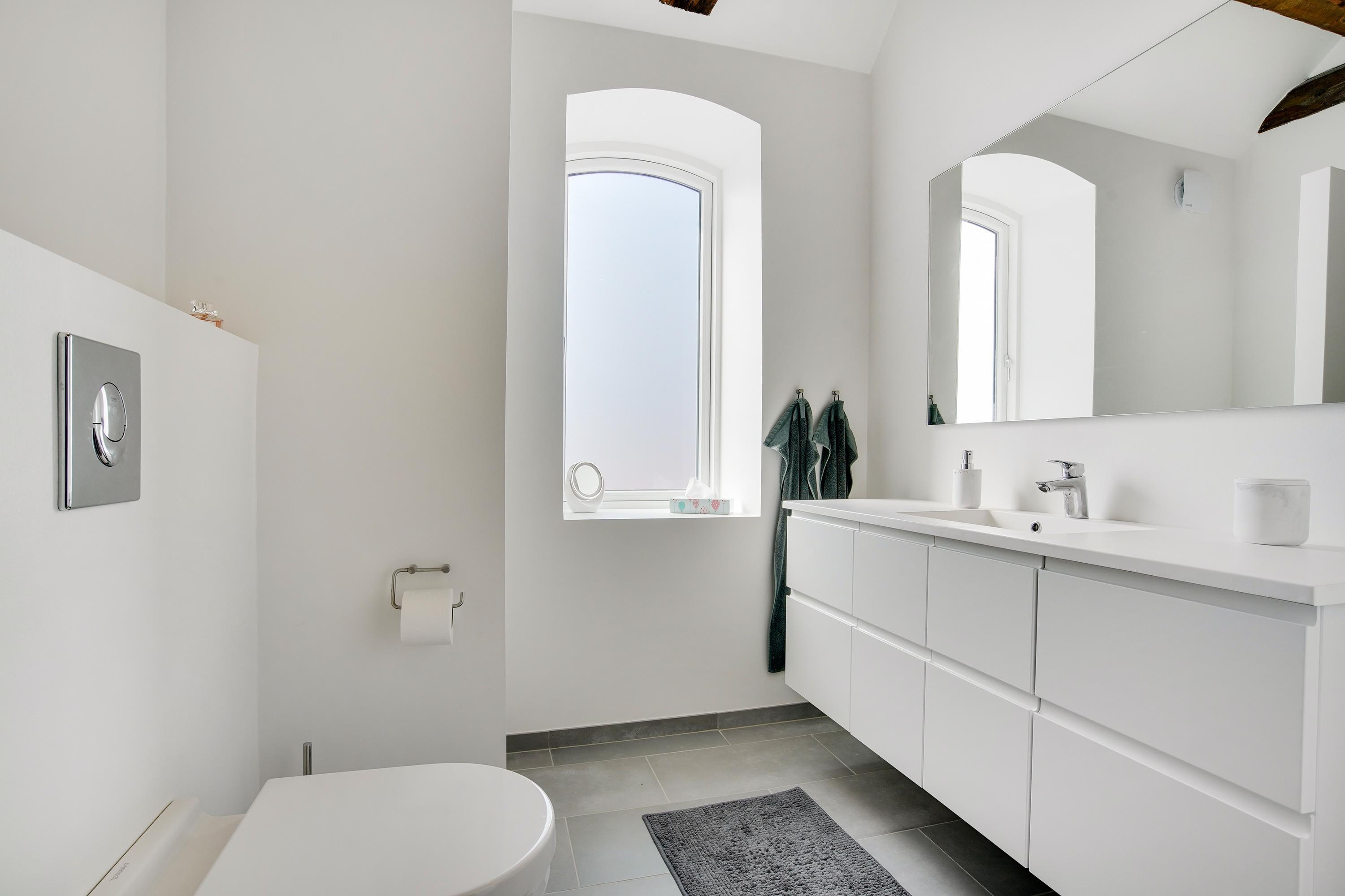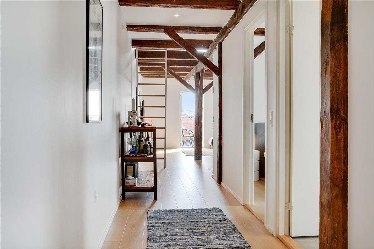 The holiday apartment is located in the middle of Løkken center, but it is nice and quiet! The noise level in the apartment does not reveal that the vibrant city life is right outside the front door. Imagine that this once was a discotec - with parties, noise and trouble as well as dim lighting. Now the building houses bright and airy holiday apartments, where you do not sense the neighbor on the other side of the wall. The light shines from the curved windows, where you can sense the old warehouse.
