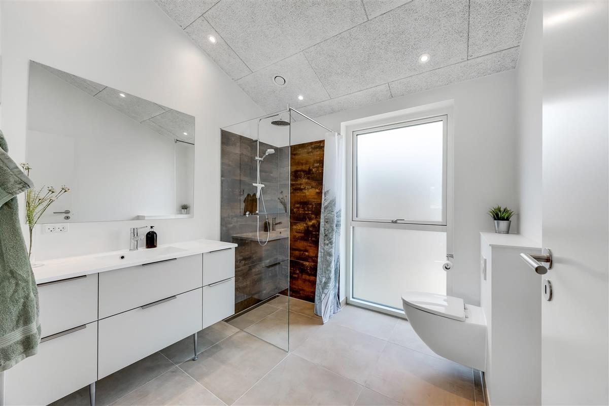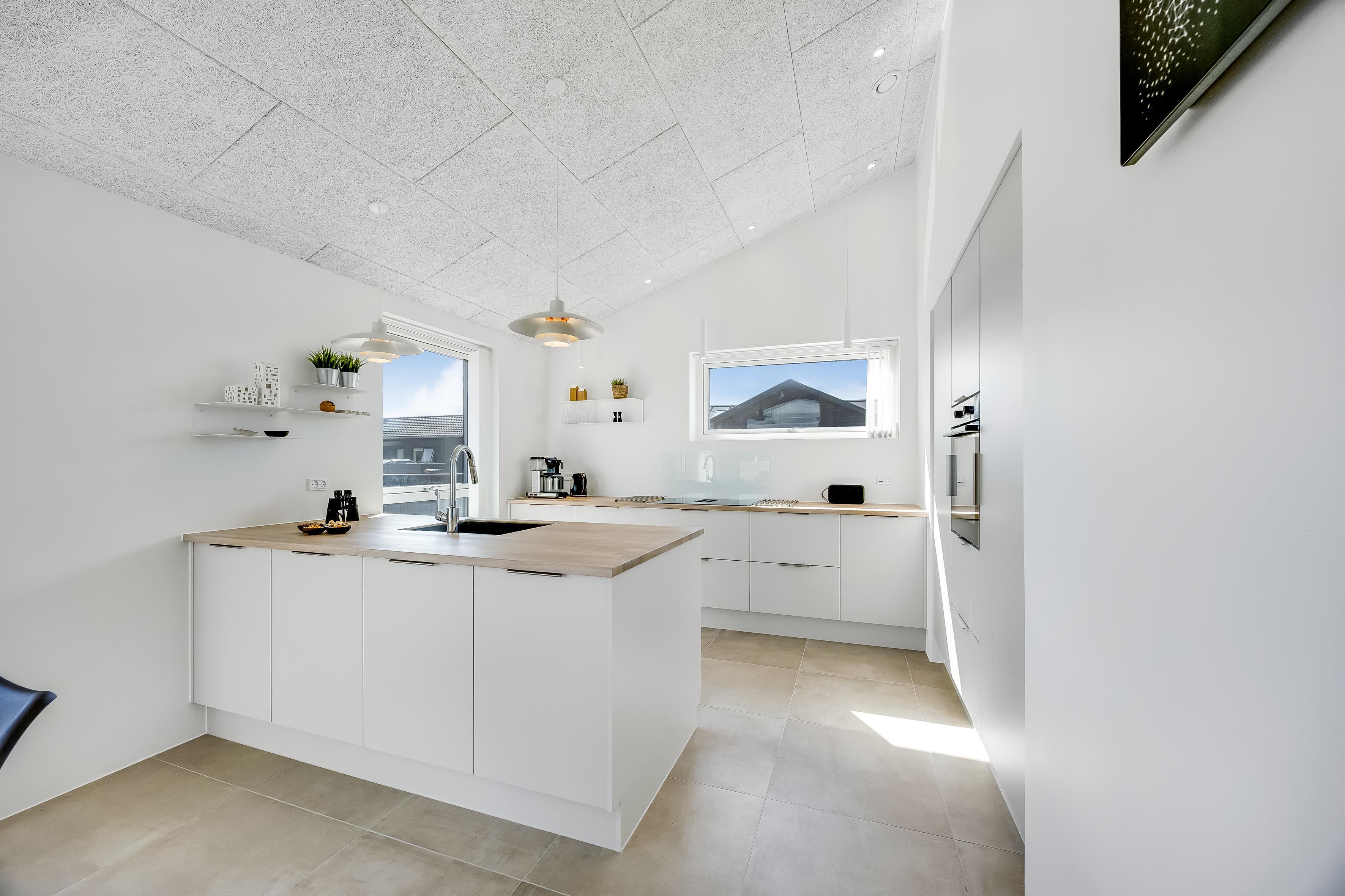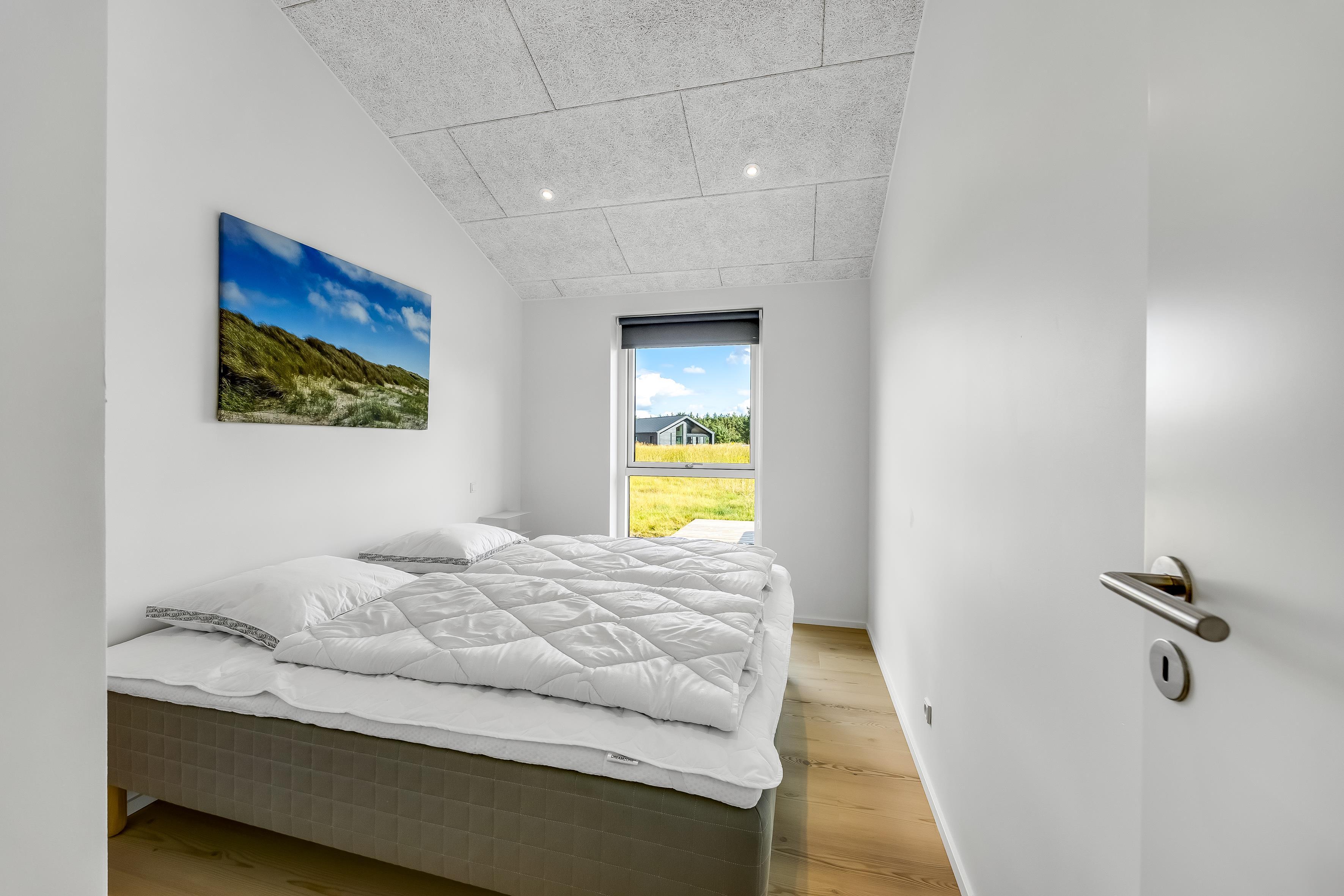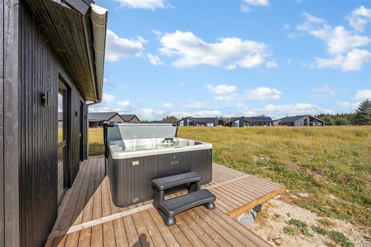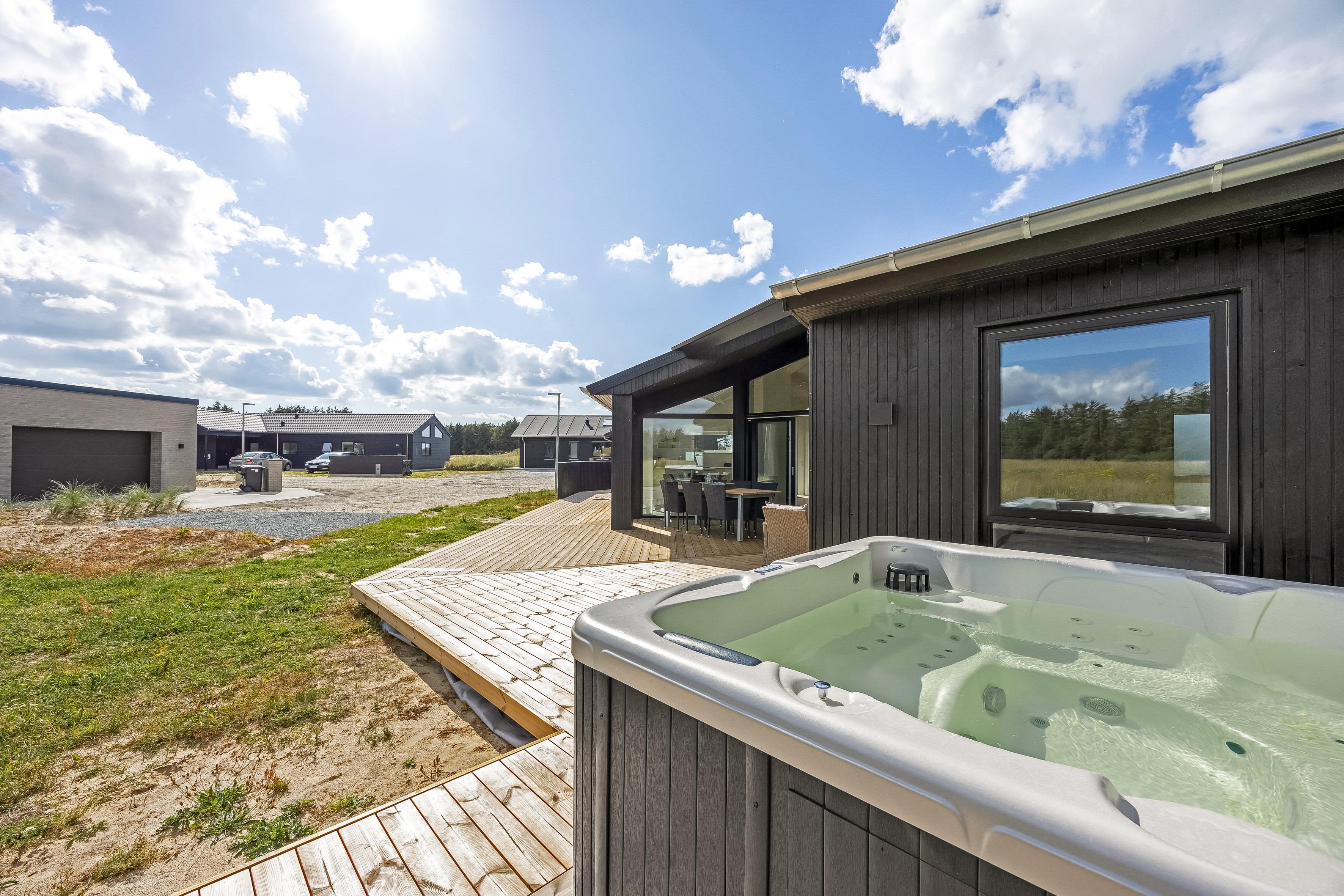 The main house sleeps 6 people, while the cosy annex offers an additional 2 beds and its own bathroom – in total 8 sleeping spaces divided into 3 double beds and 2 single beds. The open-plan kitchen and living area is bright and thoughtfully designed. The bathrooms are spacious and stylish, and a practical utility room is located by the entrance. Although situated in a new development, the house is well positioned with a focus on privacy.
