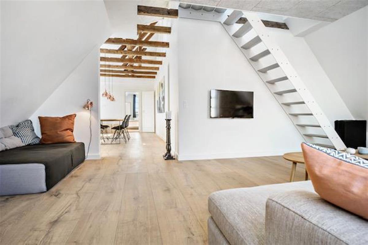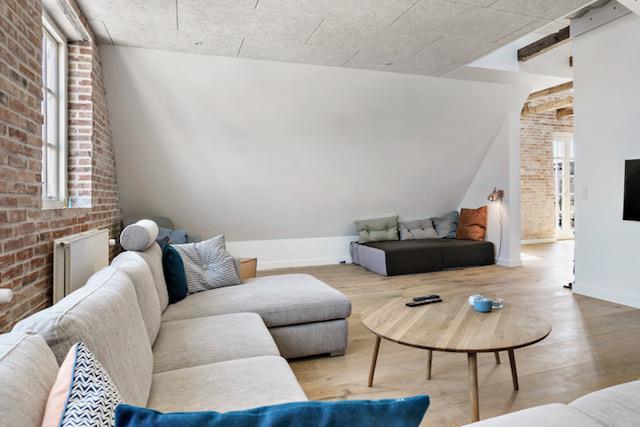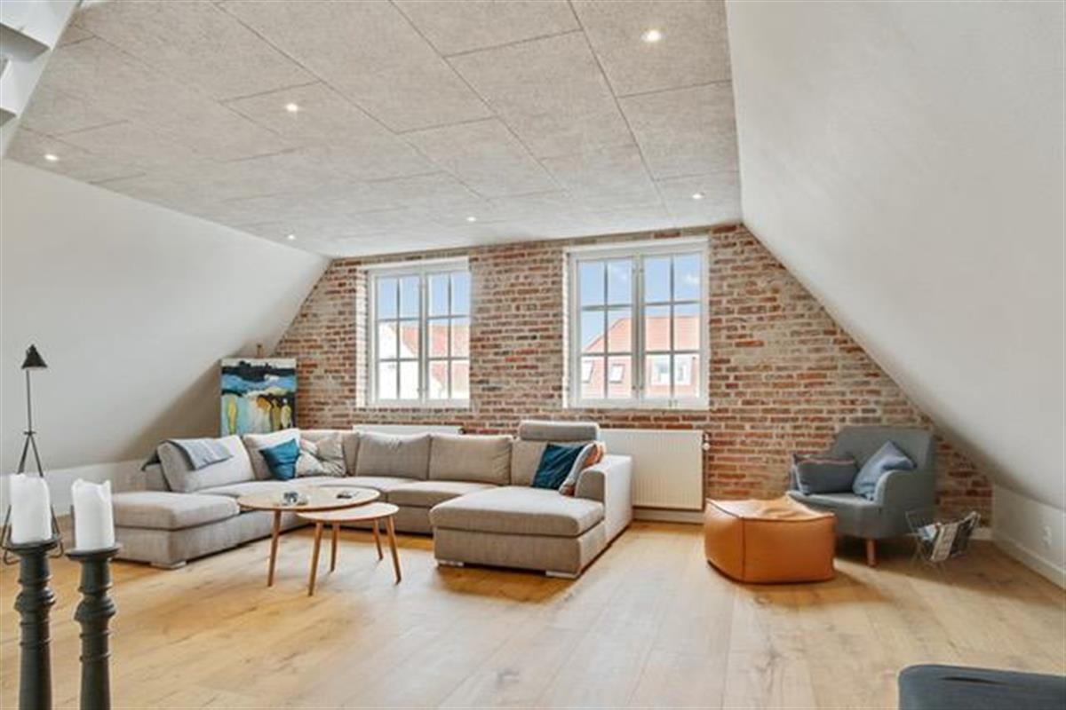 The holiday apartment is practical and beautifully furnished, with a focus on comfort and modern amenities. The apartment is heated with district heating, which is both practical and economically sensible. Large, bright, and lovely kitchen and living room, and everything else your heart desires when renting a modern and newly renovated holiday apartment in Løkken. Two bright bedrooms, cozy sloping walls, exposed beams, and a location in a charming building.