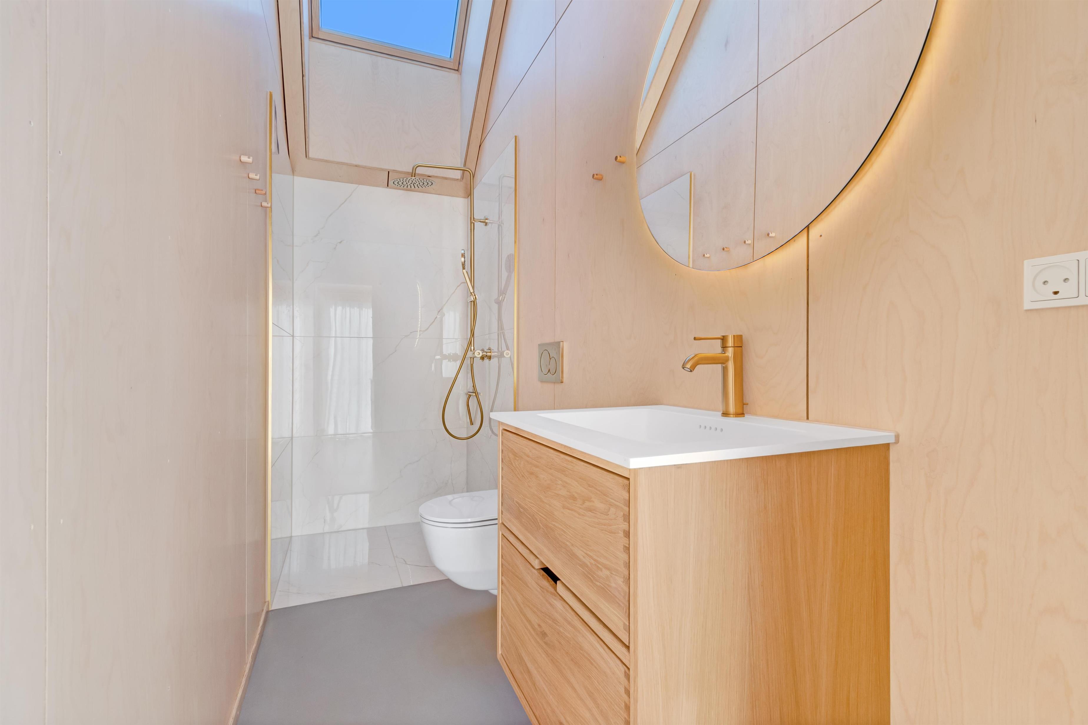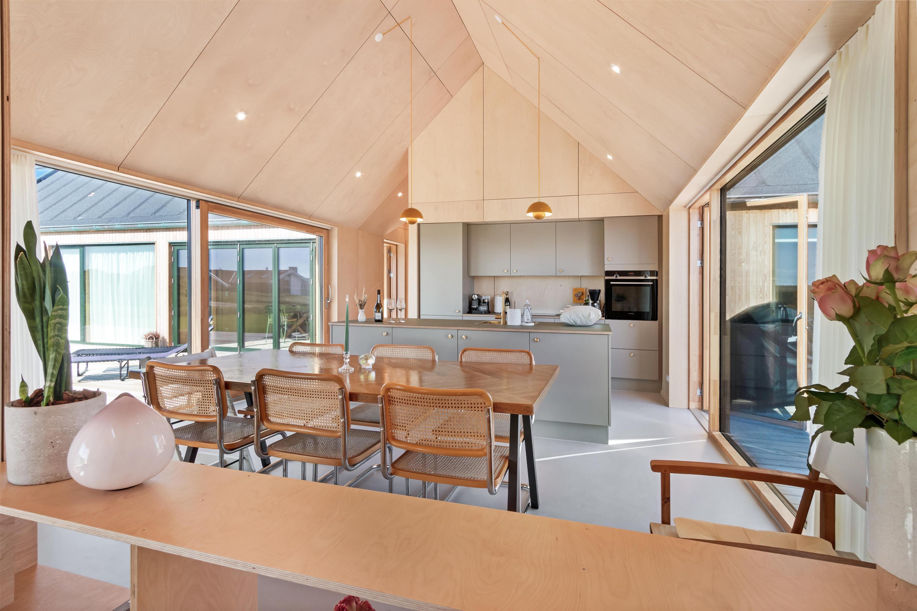 The house at Magnus Christensens Vej number 97 is both luxurious, minimalist, and cozy. It exudes quality and provides plenty of space for relaxation and comfort. It can accommodate 8 people in 4 bedrooms. There are two incredibly luxurious bathrooms, two lovely terraces, an outdoor spa, a loft, and all the modern amenities your heart desires. The construction year is 2023, so everything appears brand new. The bedrooms are located at either end of the house's 133 square meters and are separated from the kitchen/dining/living area, allowing some to retire while others stay up.