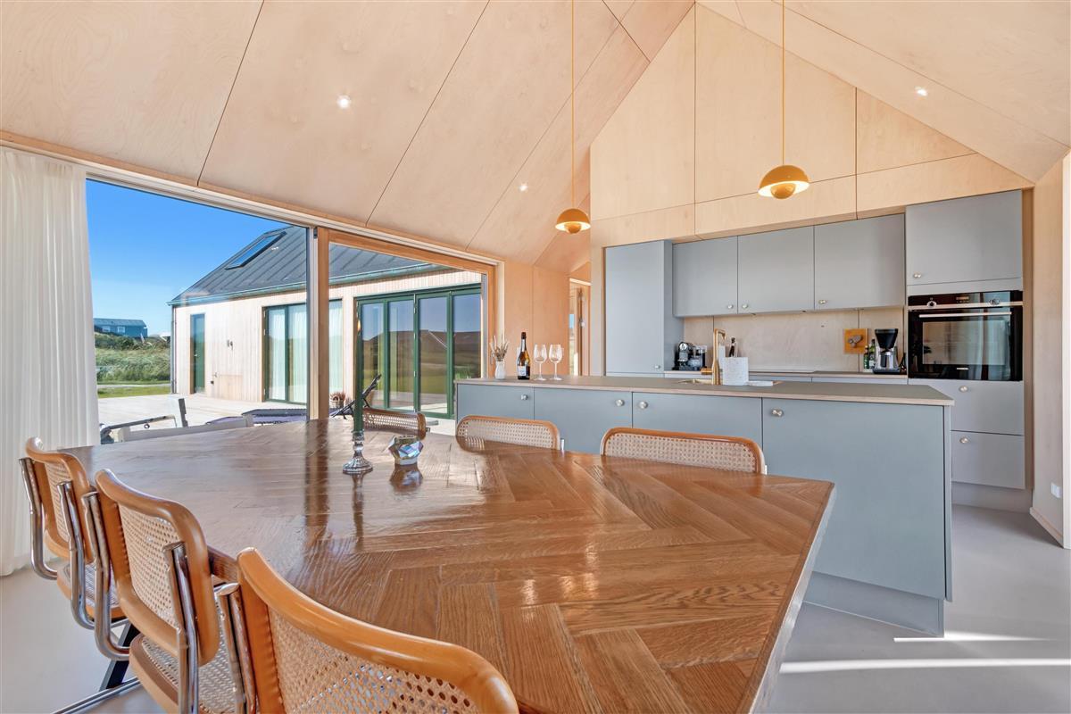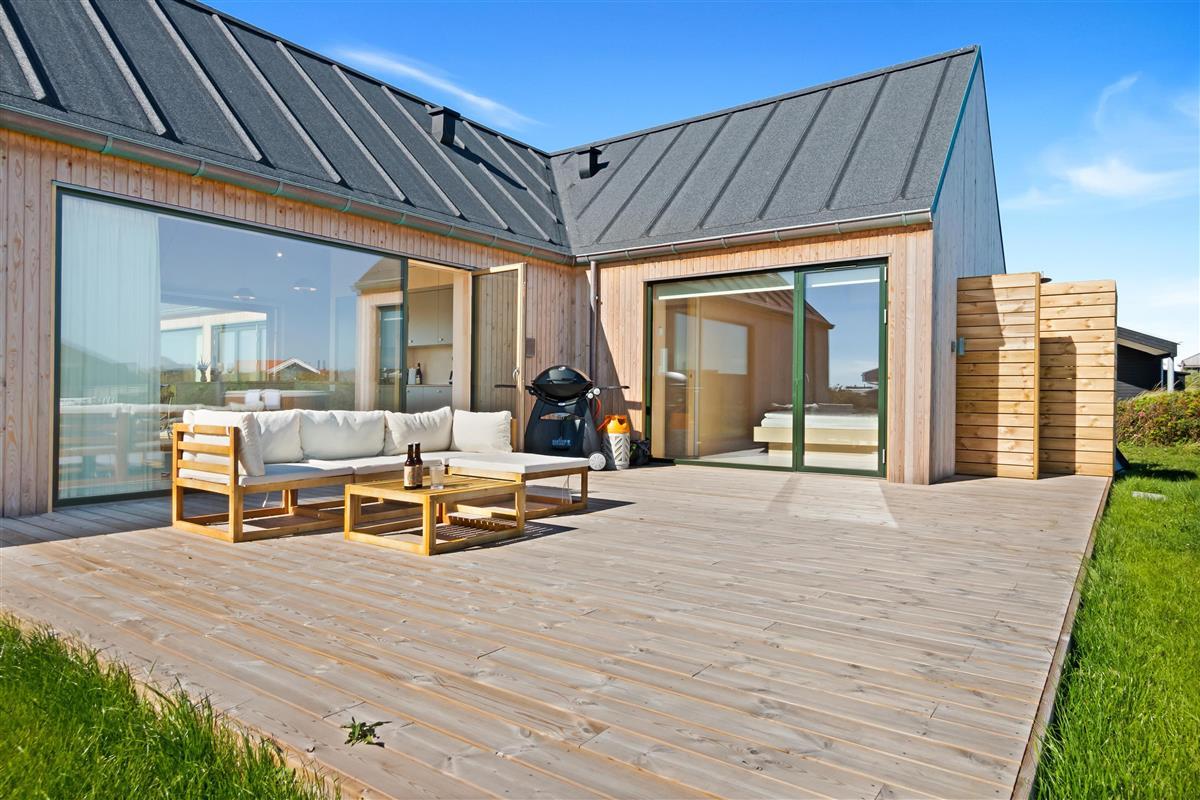 The holiday home is situated on a spacious 1200-square-meter natural plot, only 250 meters from the beach. The area is also close to Løkken center, shopping, transportation, shopping, restaurants, and plenty of indoor and outdoor activities. There is a delightful outdoor spa, an outdoor shower, spacious terraces, a barbecue, and lovely garden furniture. There are footpaths leading down to the beach, which is only 250 meters away.