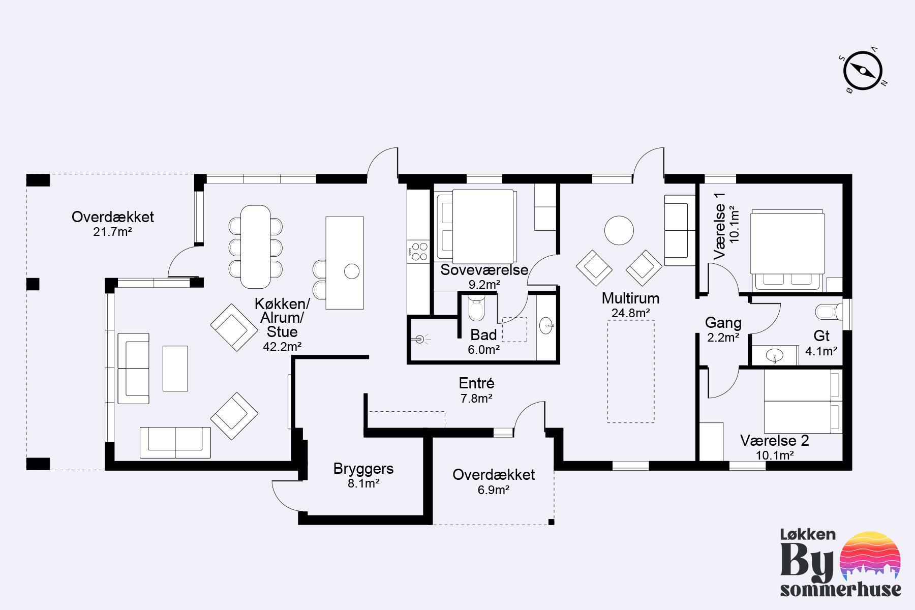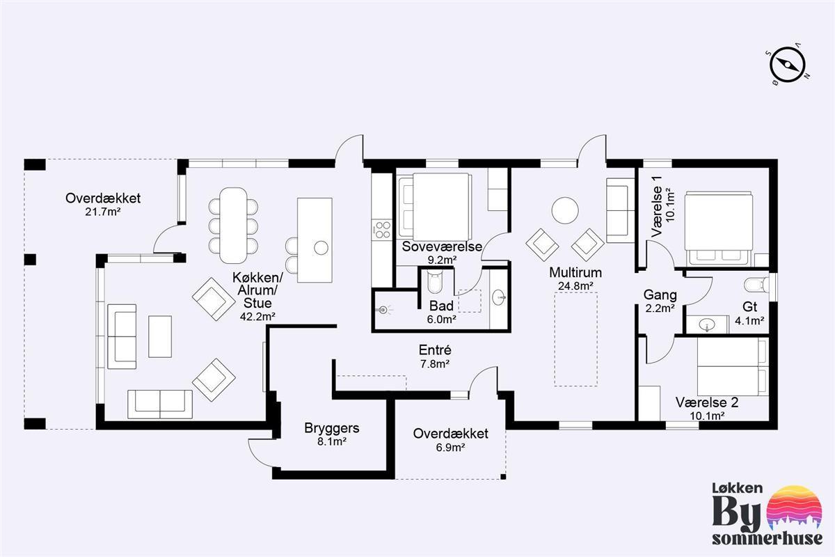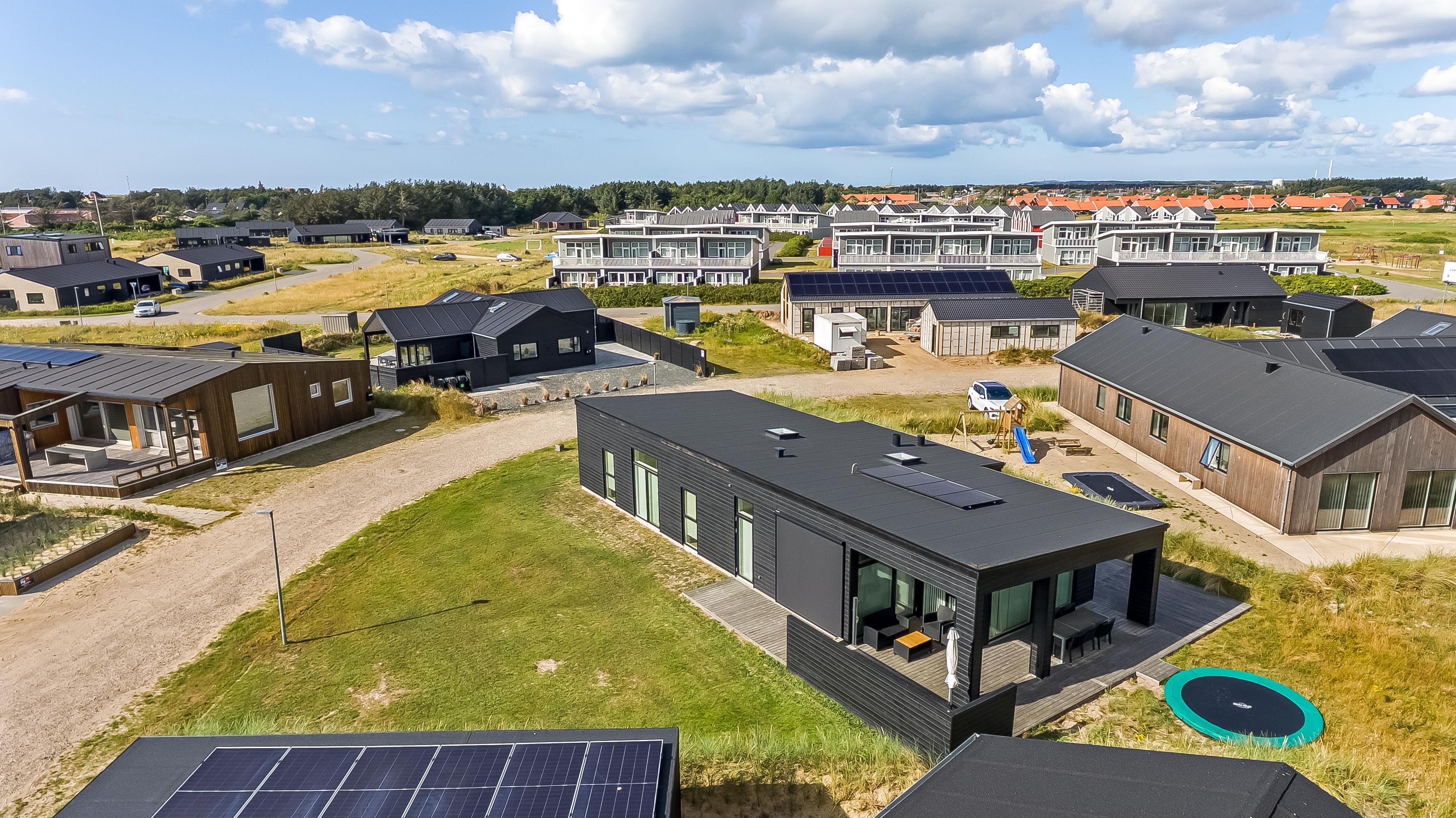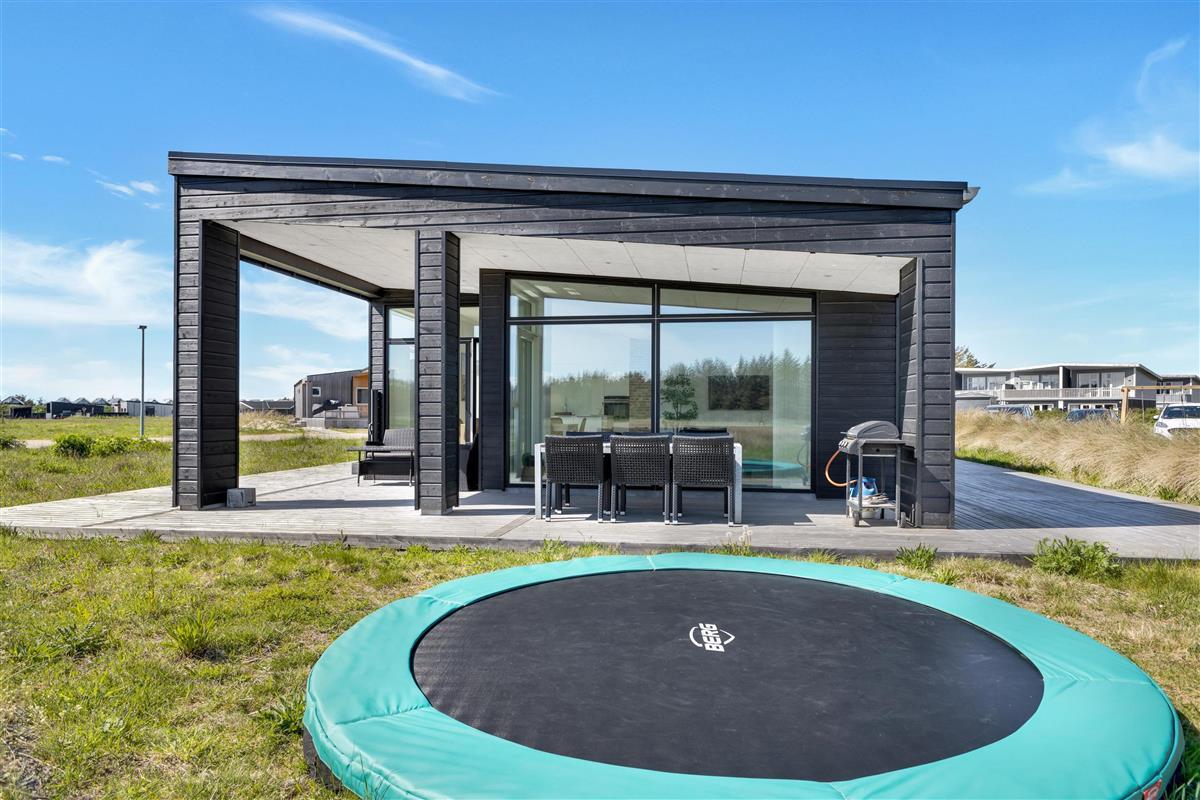 When the summer shows its best side, there is plenty of outdoor space for sunbathing, games, and play - and there is even a trampoline for the joy of children and young at heart. The holiday home is located on a corner plot, and there are terraces in all sunny angles, so it should be possible to find a lovely place in the sun or shelter. You are less than a kilometer from the beach, where there are lifeguards in the high season. Within an even shorter radius, you have shopping and transportation options as well as restaurants. The city center is about a kilometer away, just like the beach.