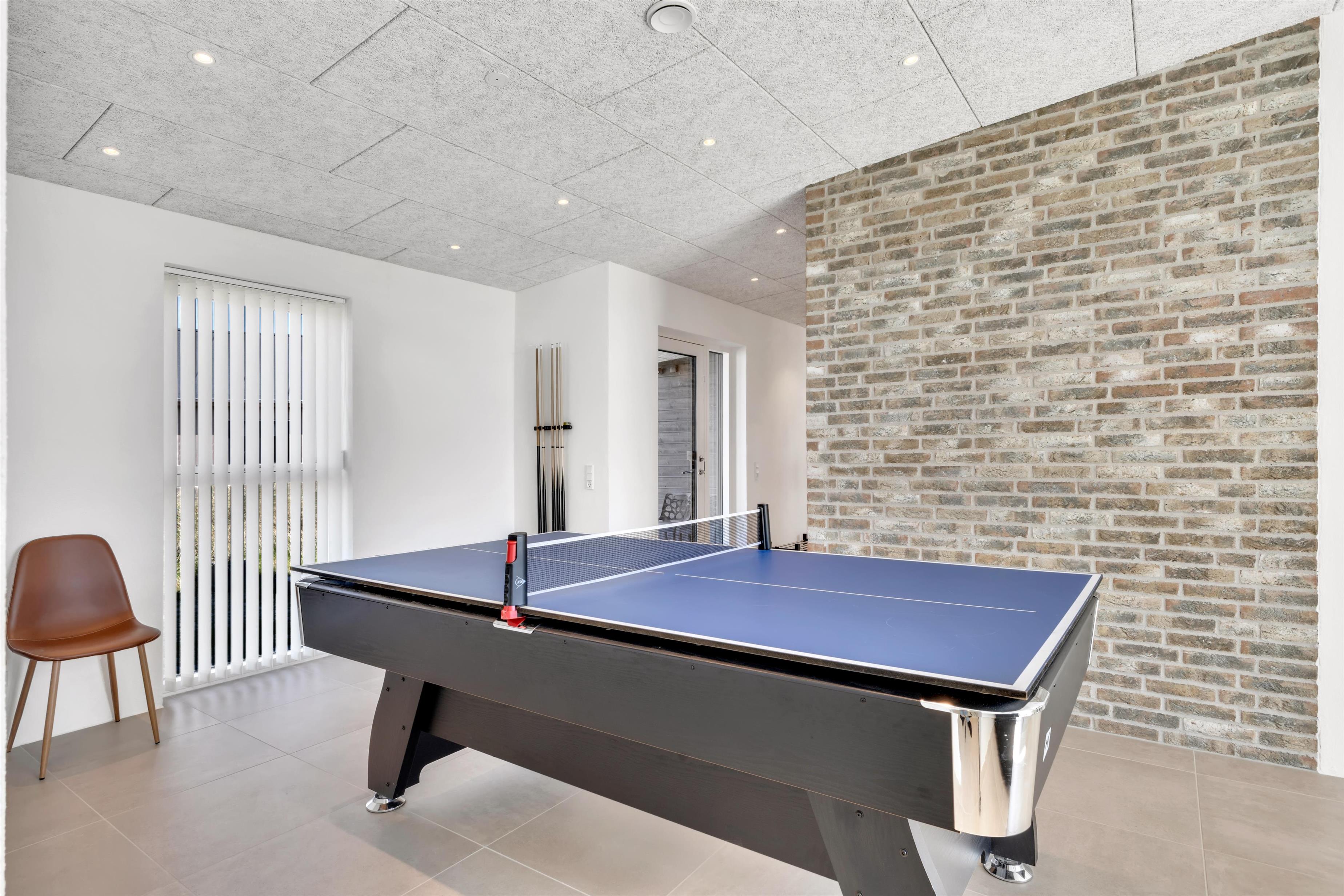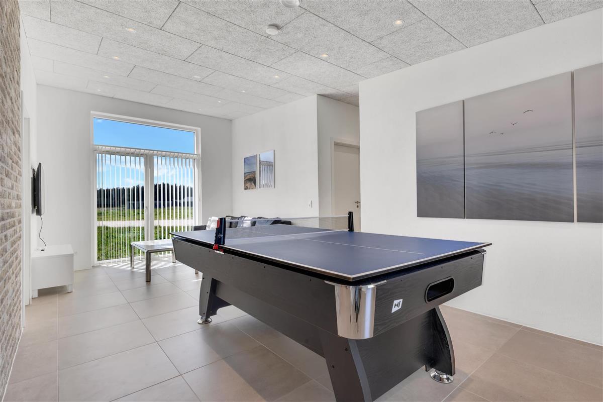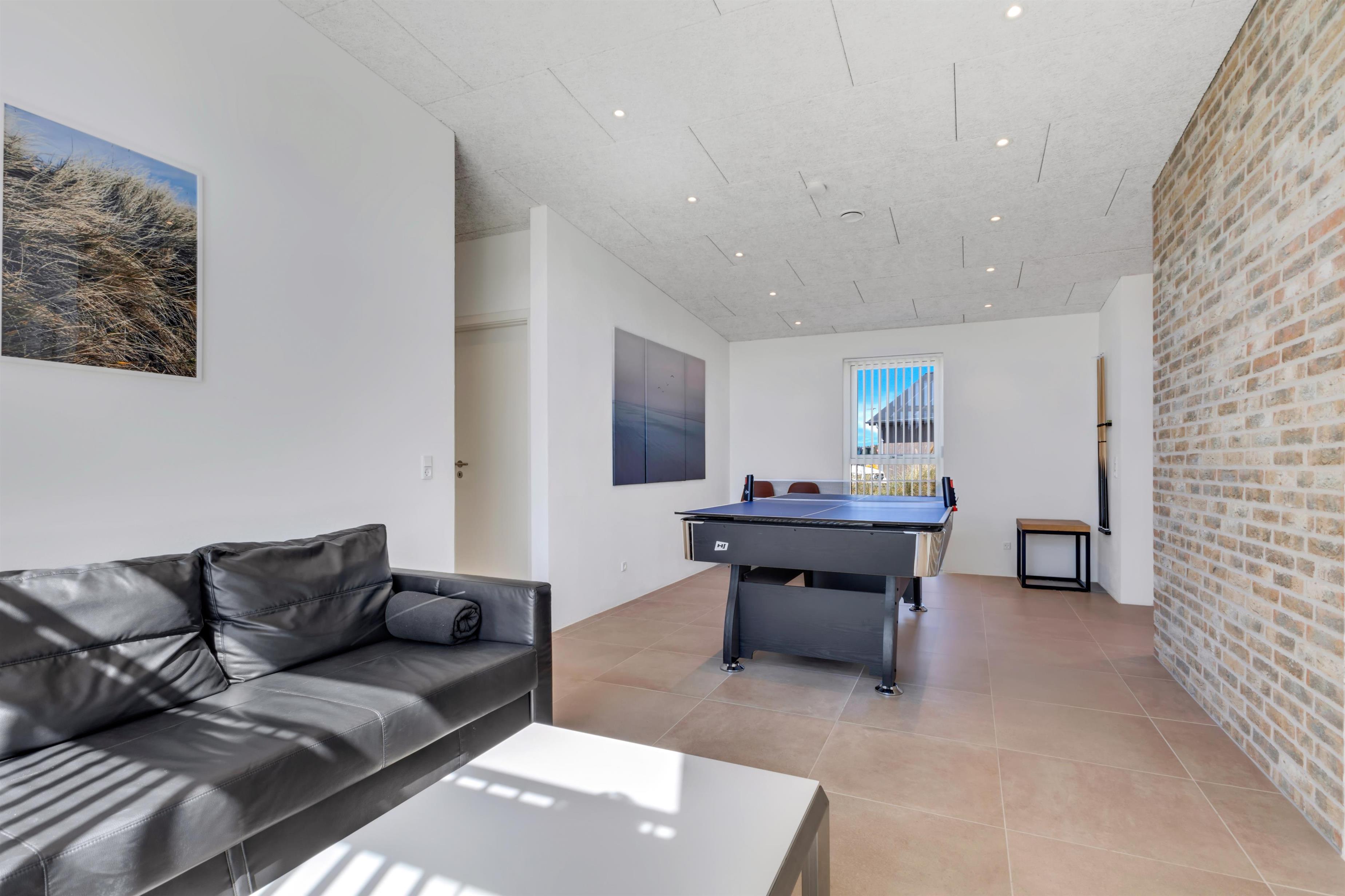 In this gem of a newly built holiday home, you can stay 8 people, 1 child up to 3 years old, and a dog. Here are large, bright rooms and a particularly cool style with raw brick walls, letting you know that you have rented a newly built holiday home where details have been considered. The bathrooms are large and beautiful, and there is also a large and practical utility room. The kitchen-dining area and living room are super inviting for many hours of coziness. Activity room with pool and table tennis, as well as a plug for charging the electric car.