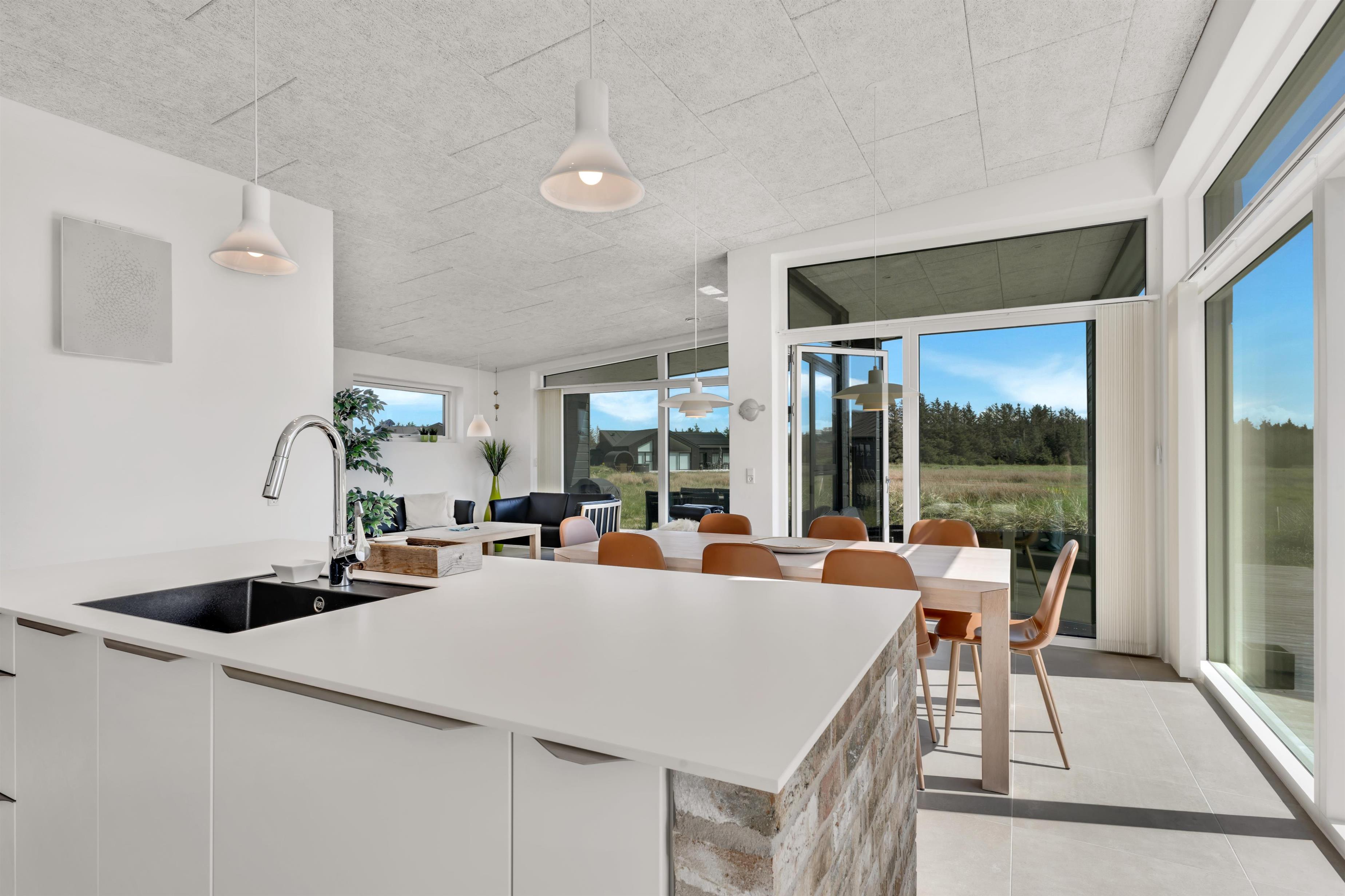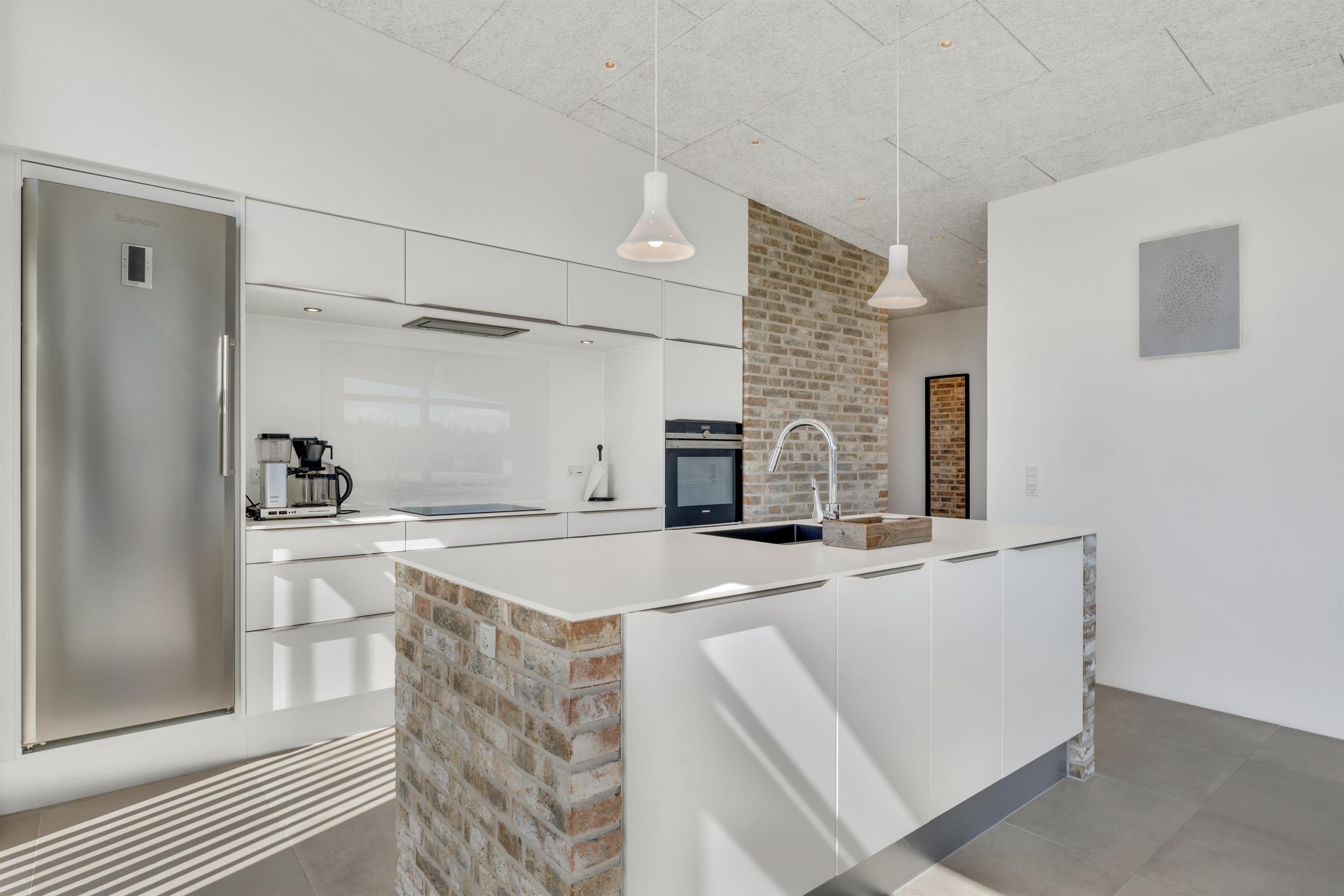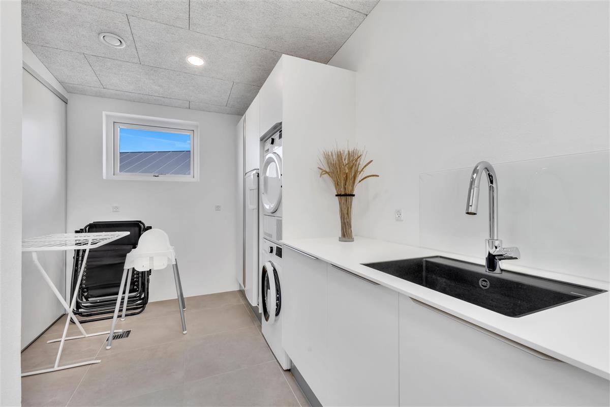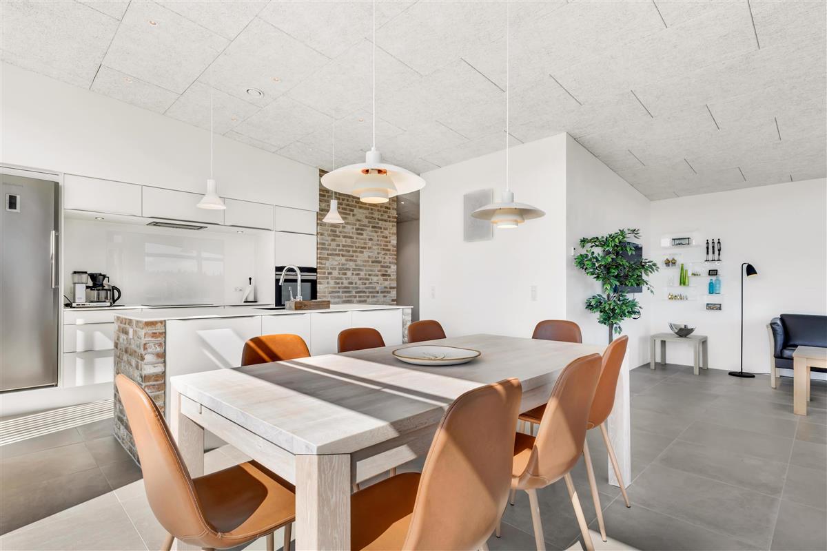 In this gem of a newly built holiday home, you can stay 8 people, 1 child up to 3 years old, and a dog. Here are large, bright rooms and a particularly cool style with raw brick walls, letting you know that you have rented a newly built holiday home where details have been considered. The bathrooms are large and beautiful, and there is also a large and practical utility room. The kitchen-dining area and living room are super inviting for many hours of coziness. Activity room with pool and table tennis, as well as a plug for charging the electric car.