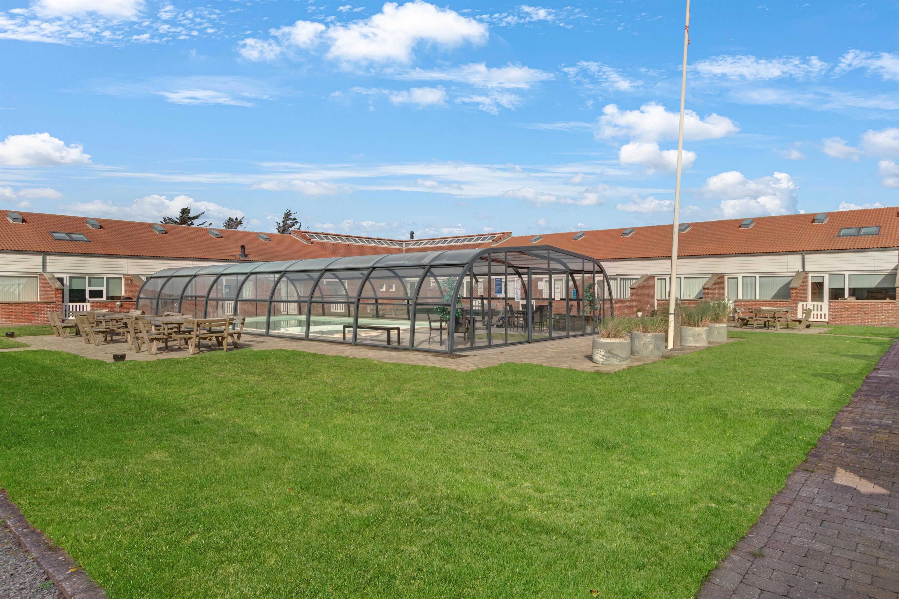 There is a lovely terrace, which you access from the ground floor of the house, and here the foundation is laid for many hours of coziness! Here, there is often shelter from the wind, and on the beautiful communal area, children can move around freely and play. The terrace is secluded, so it is a good idea to bring your dog on holiday. There is free access to the two pools, one of which is child-friendly.