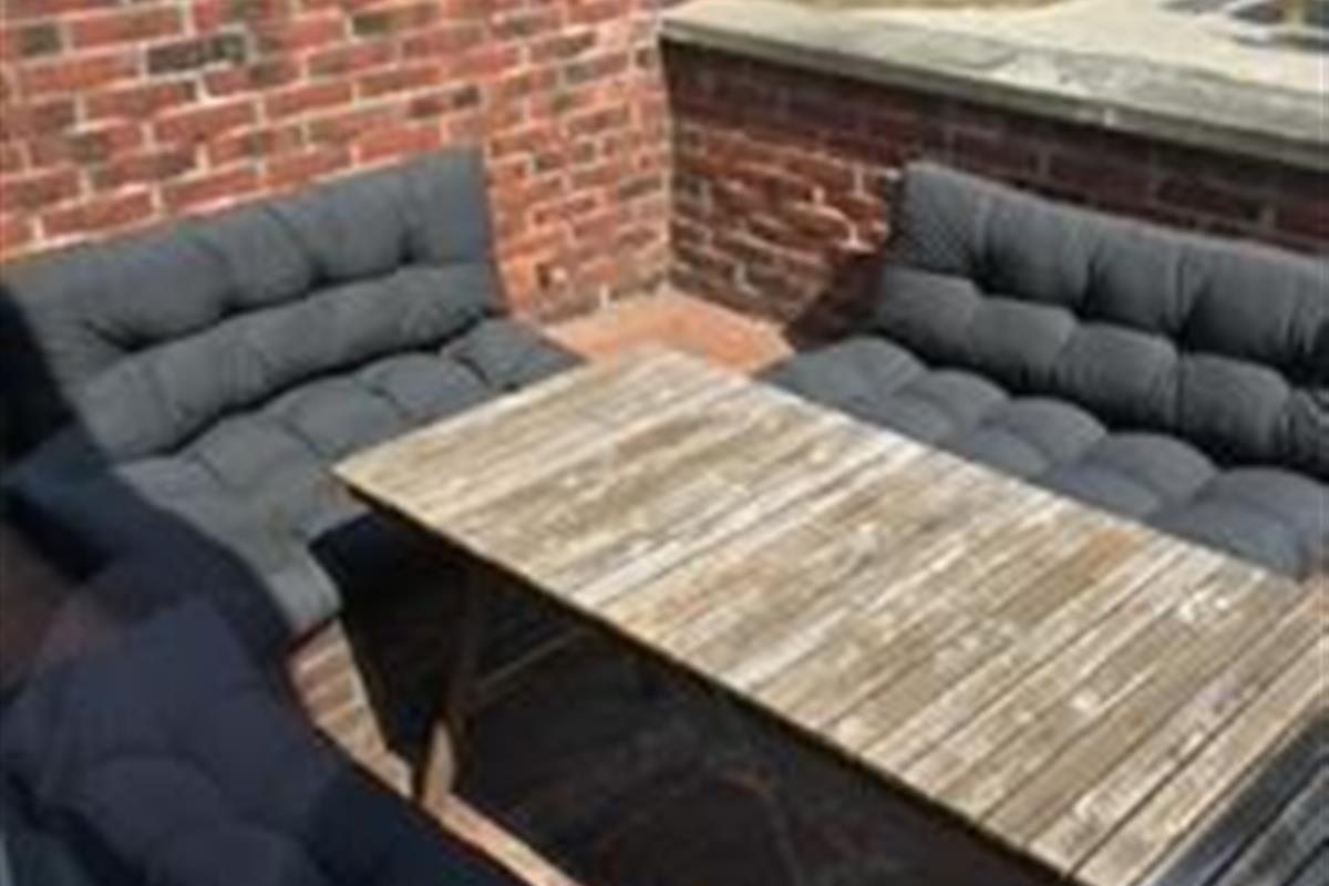 In this lovely apartment, there is room for six people spread over 70 square meters, and it is centrally located in Løkken. There are three bedrooms, two of which are on the first floor along with a smaller TV room. On the ground floor, you will find the third bedroom, bathroom, toilet, and a lovely kitchen and living area with another TV room, from where there is access to the apartment's lovely, secluded terrace. On the terrace, there is often shelter from the wind, and you can enjoy the sun to the fullest when the weather shows its most beautiful side. There is a 90 square meter covered outdoor pool and a 16 square meter children's pool for free use.