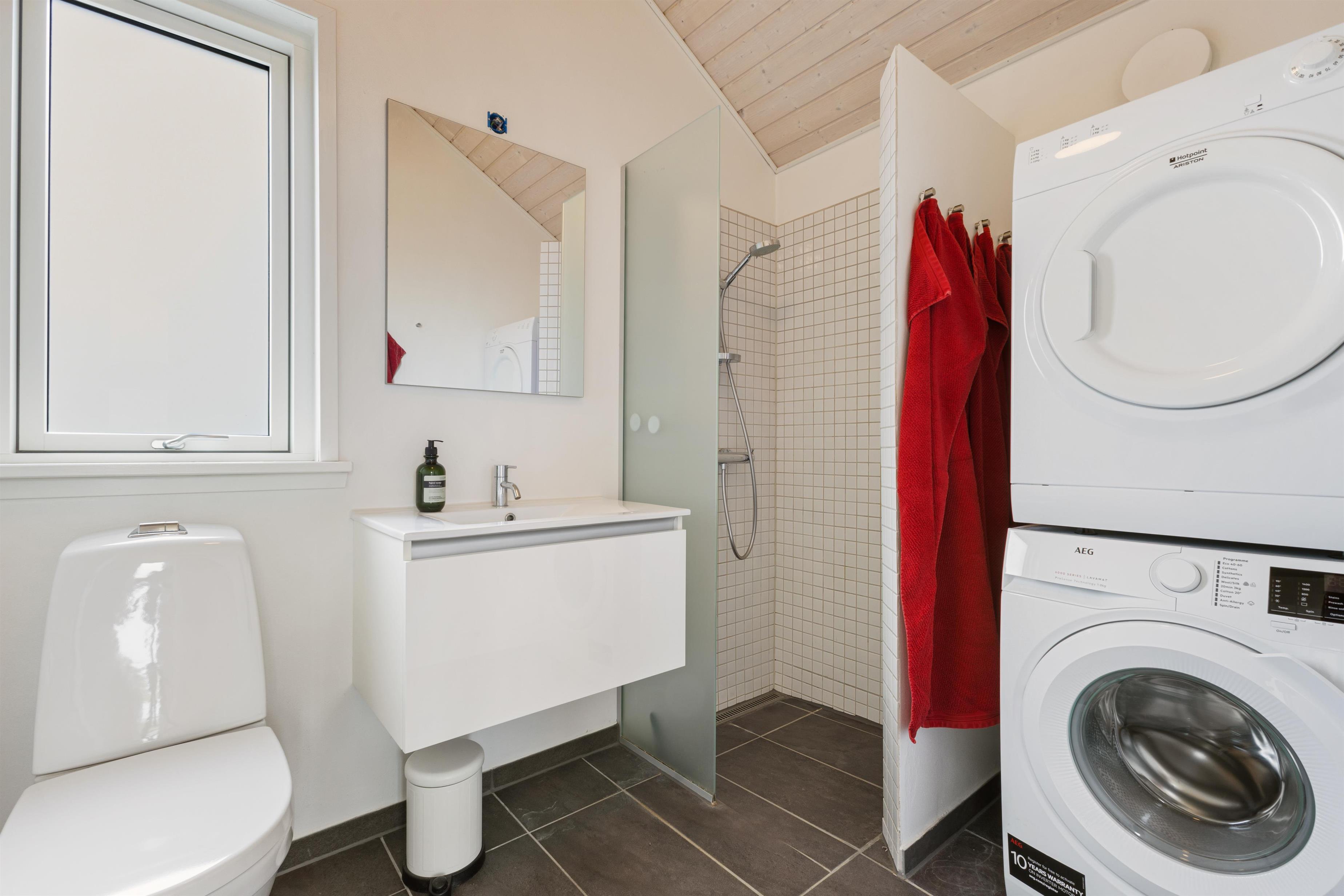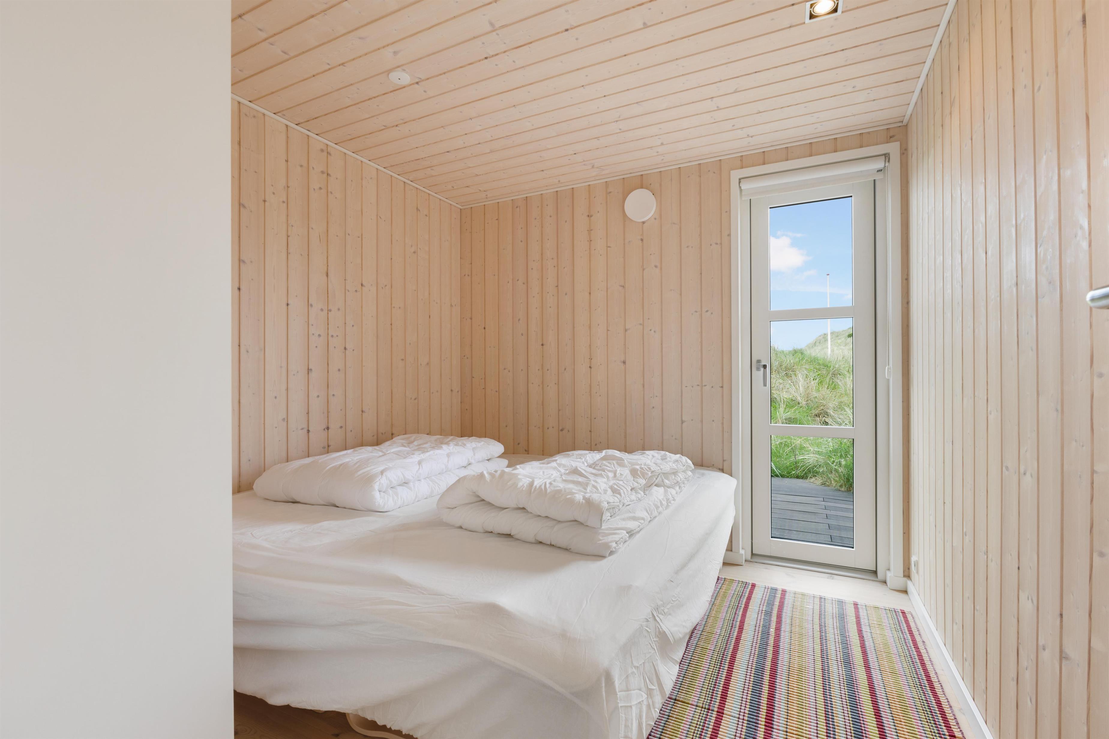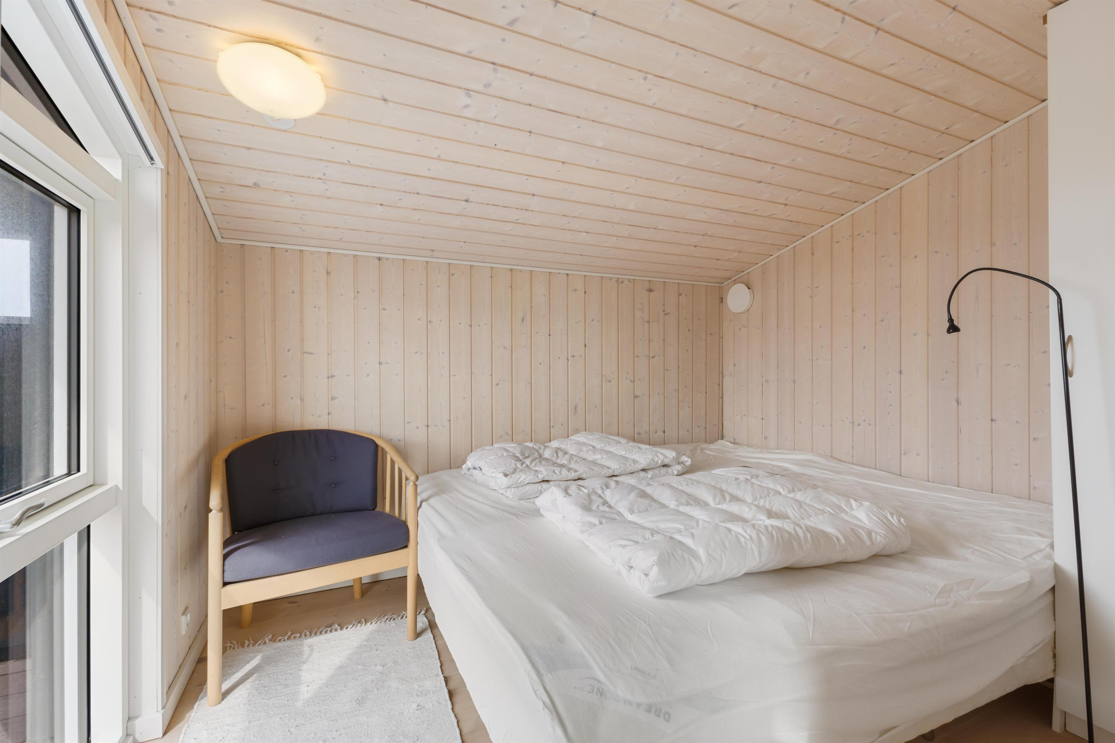 In this delightful holiday home, you will find a spacious living room and a well-equipped kitchen with high ceilings and a loft. Here, you can spend quality time with family or friends, cozy up in front of the fireplace, and enjoy the magnificent nature. The three bedrooms all have comfortable double beds and are designed with a focus on peace and relaxation, ensuring everyone gets a good night's sleep. You are just 100 meters from the beach and about 2 km from the bustling life of Løkken. The view from the living room is phenomenal, and with the large windows, nature is invited inside and can be enjoyed in all kinds of weather.