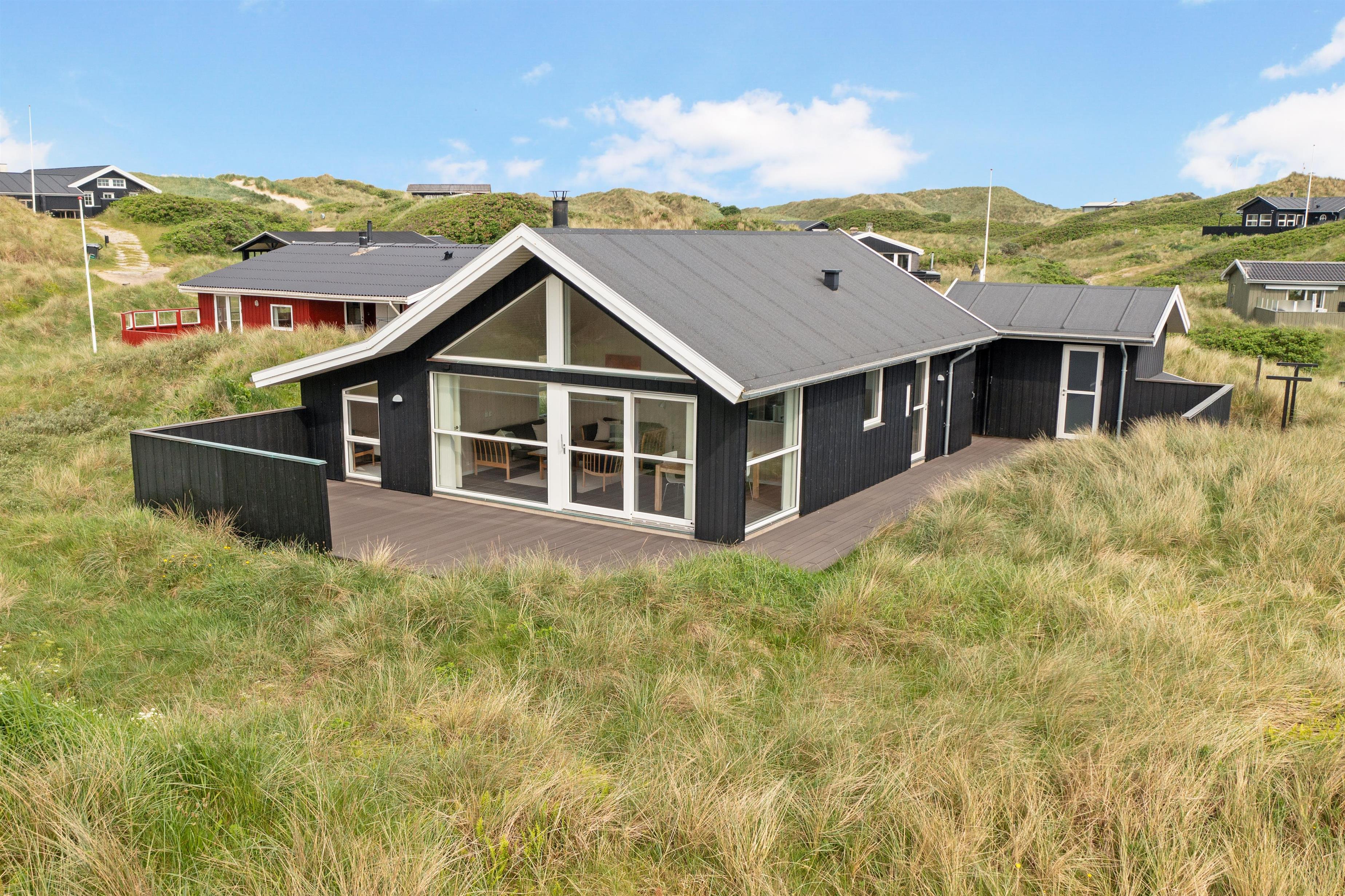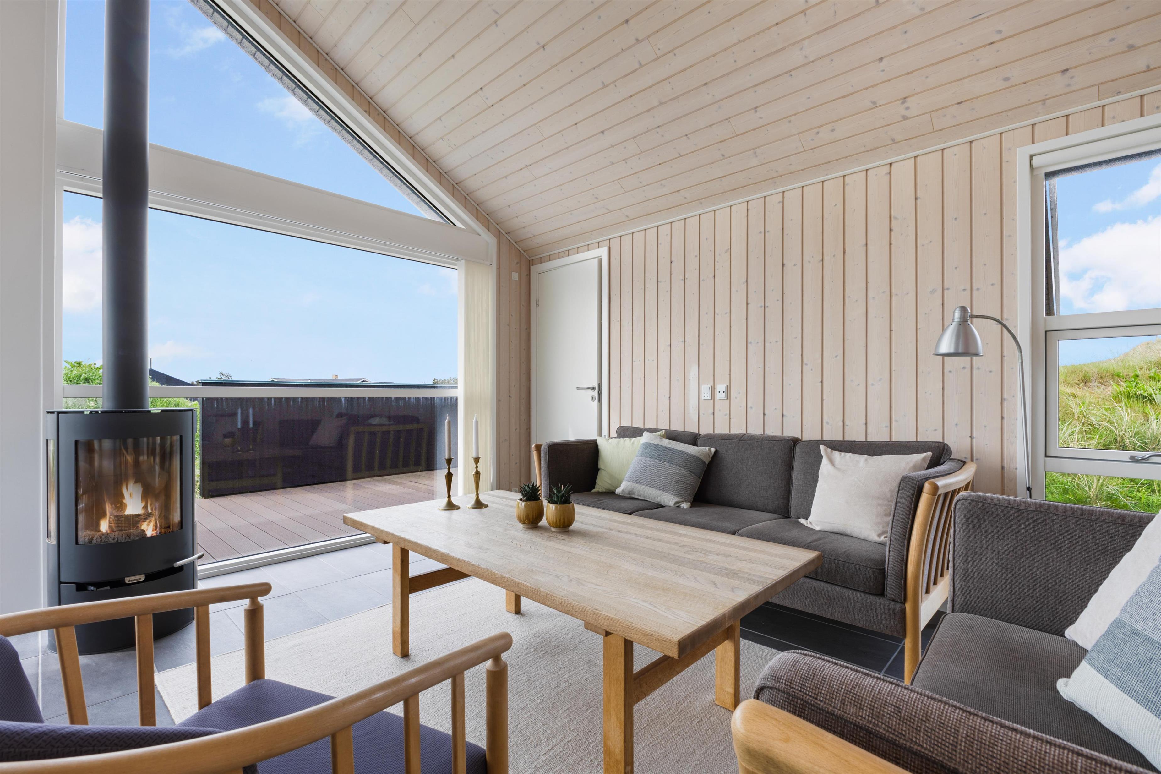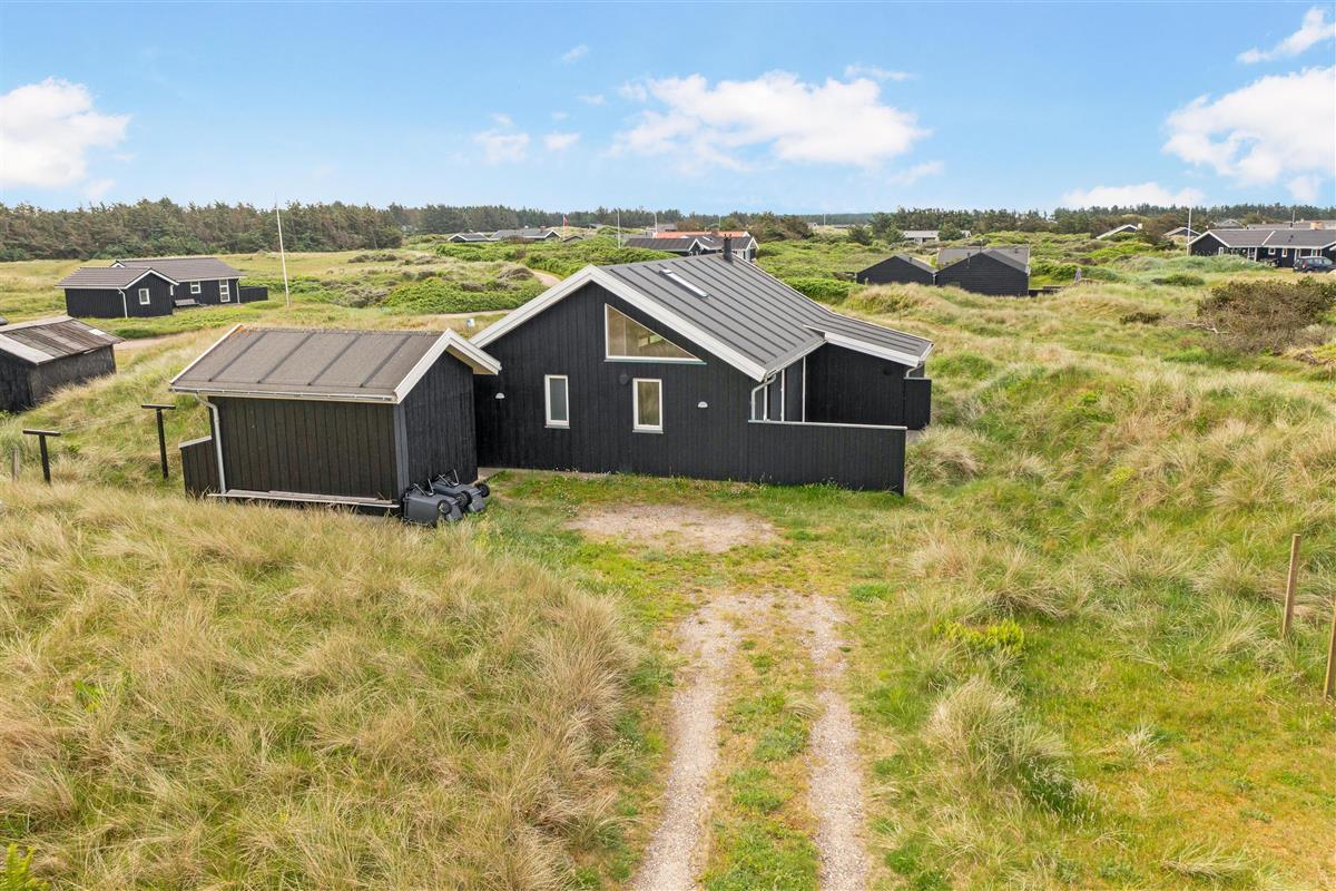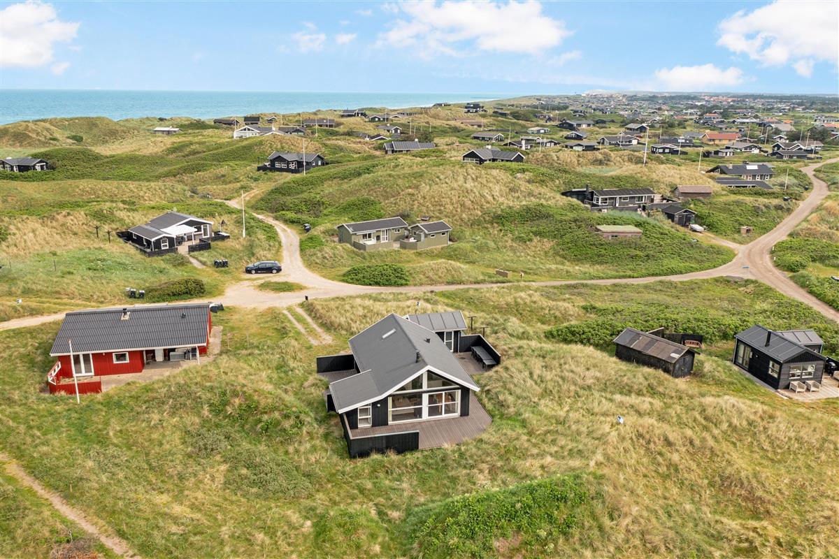 The outdoor area offers large terrace spaces where you can enjoy your morning coffee, barbecue in the evening, or just relax with a good book. It is also a perfect place for children to play and enjoy the fresh sea air. If you want to experience the buzz of happy guests in the town, you only need to travel about 2 km, and it is even allowed to drive on the beach, which is one of Denmark's most sought-after bathing beaches.