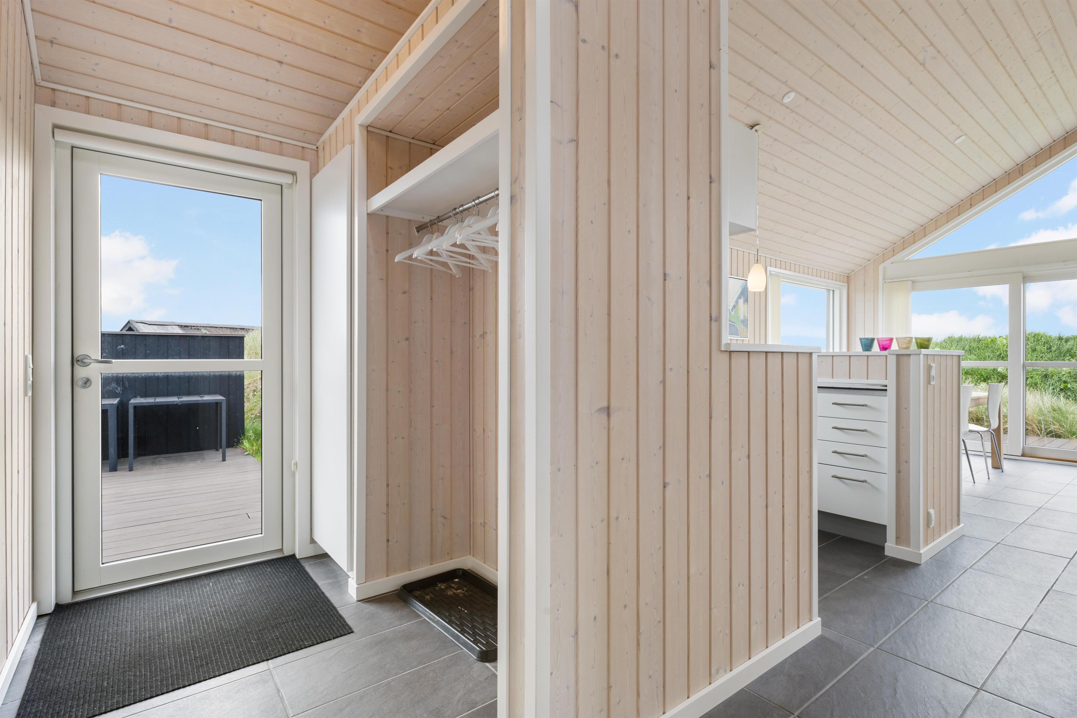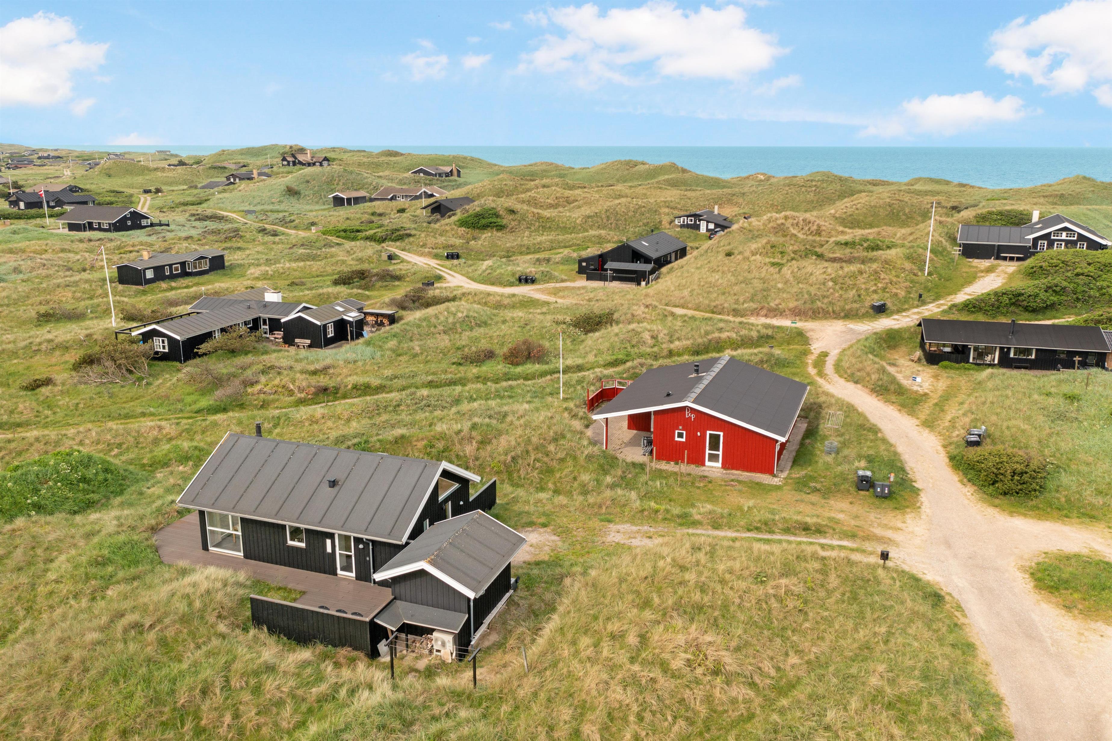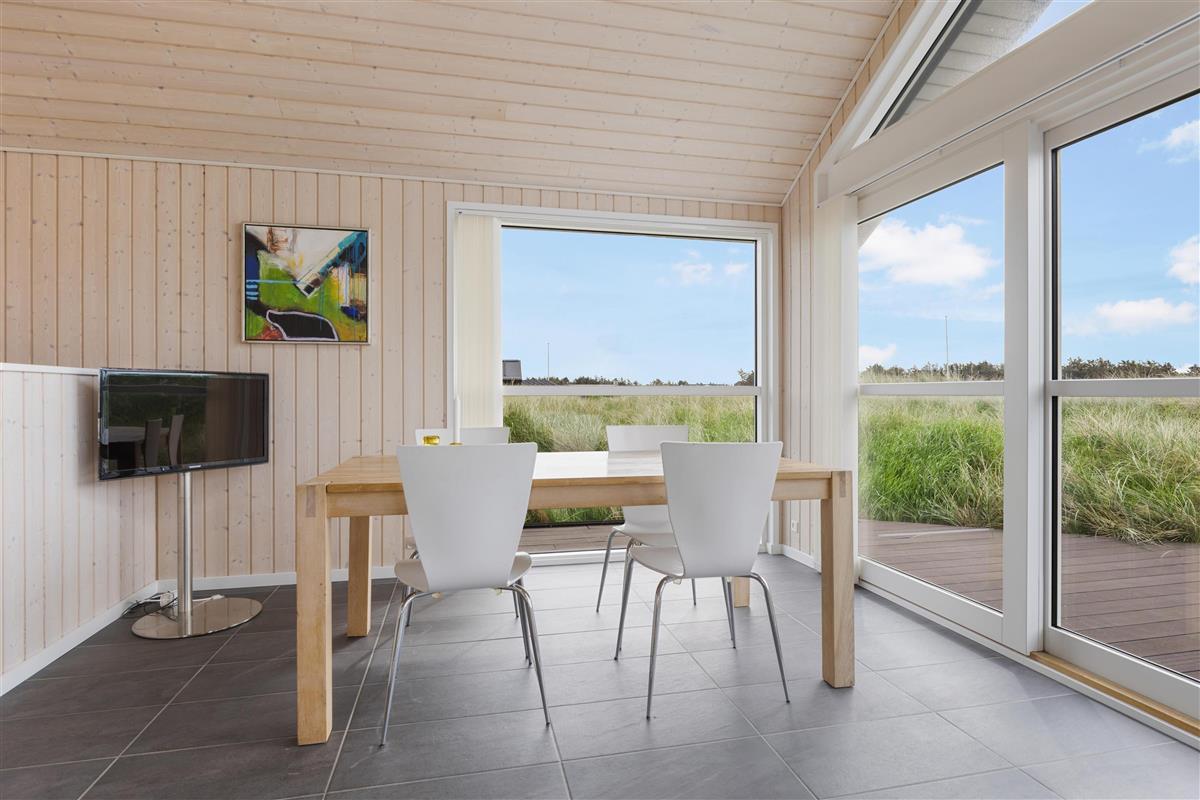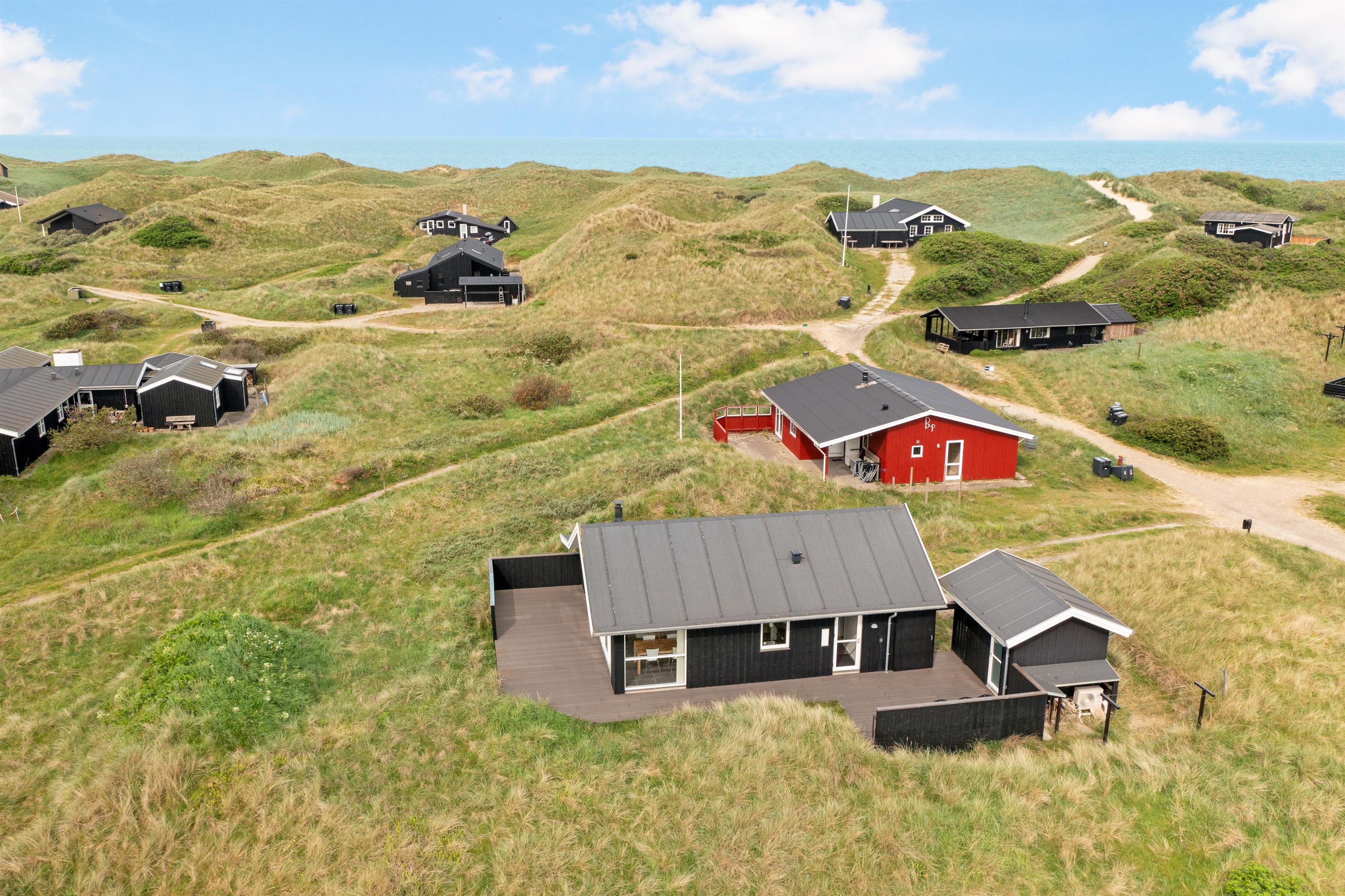 The outdoor area offers large terrace spaces where you can enjoy your morning coffee, barbecue in the evening, or just relax with a good book. It is also a perfect place for children to play and enjoy the fresh sea air. If you want to experience the buzz of happy guests in the town, you only need to travel about 2 km, and it is even allowed to drive on the beach, which is one of Denmark's most sought-after bathing beaches.