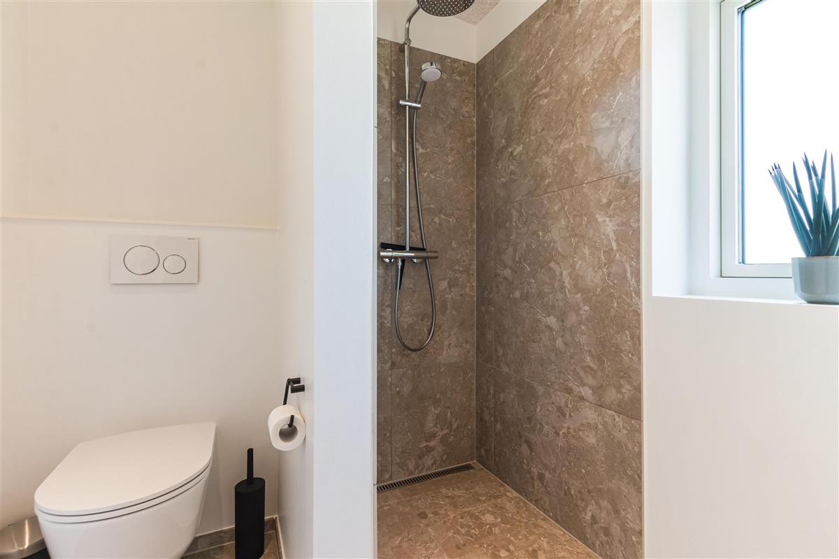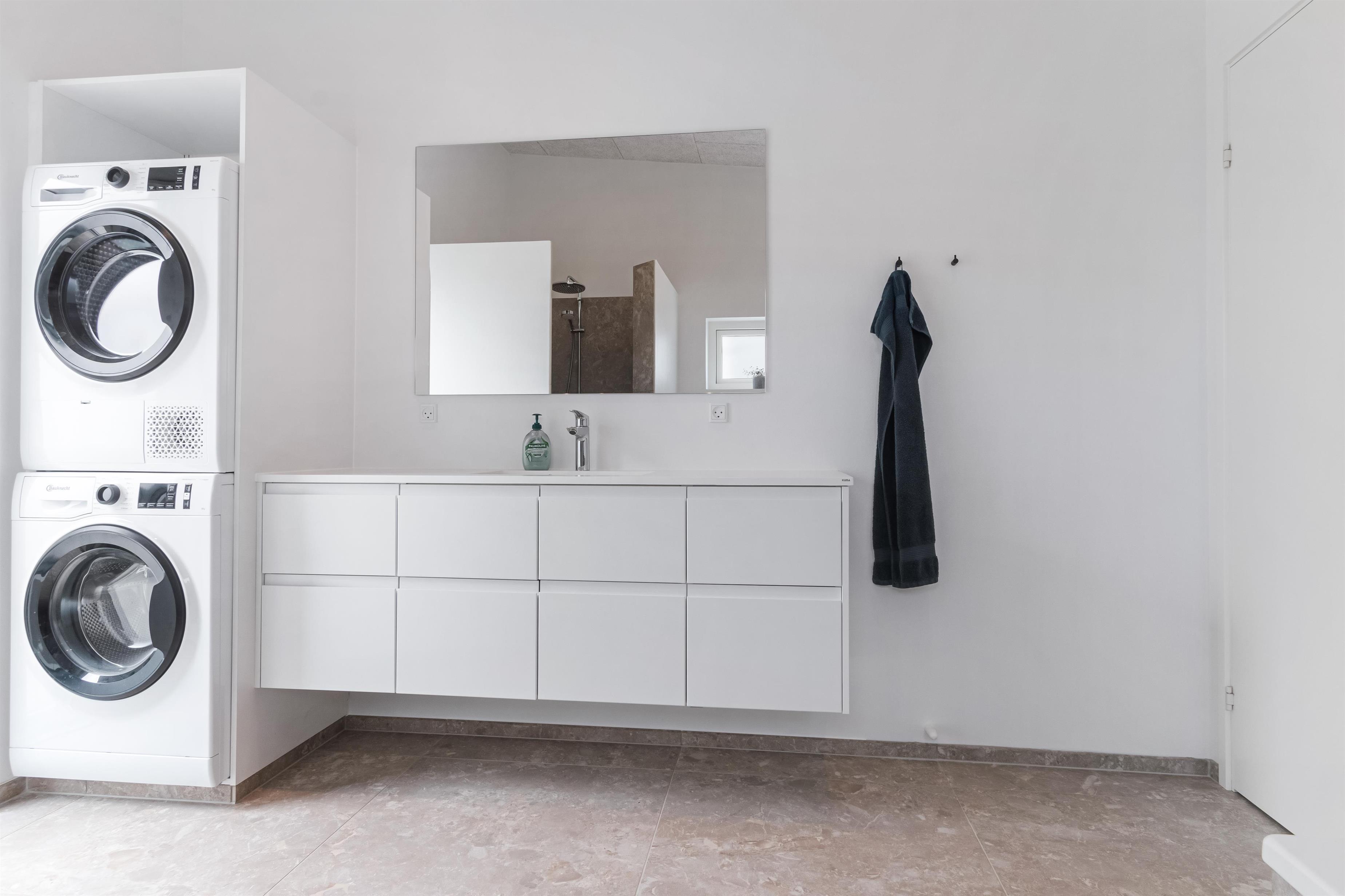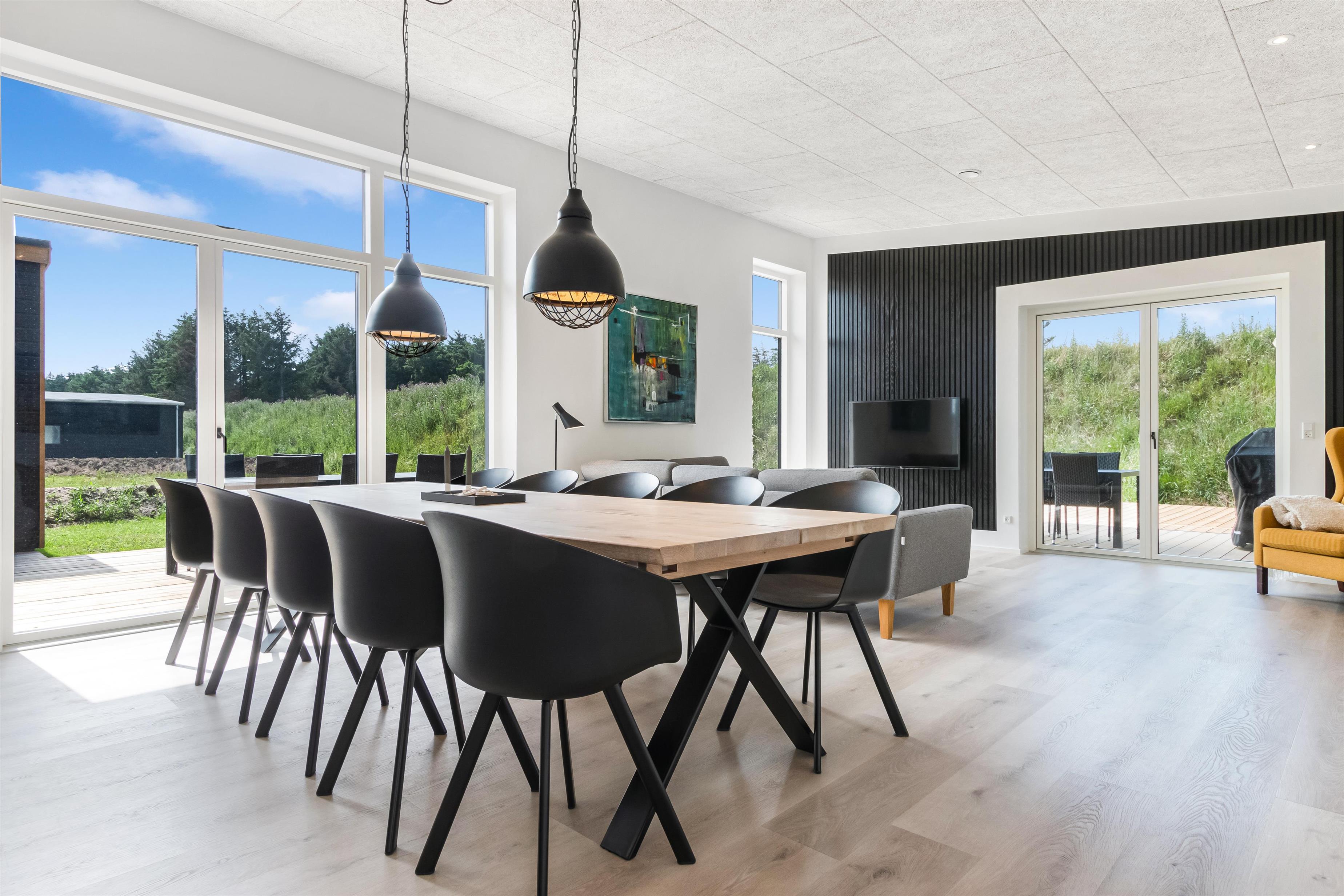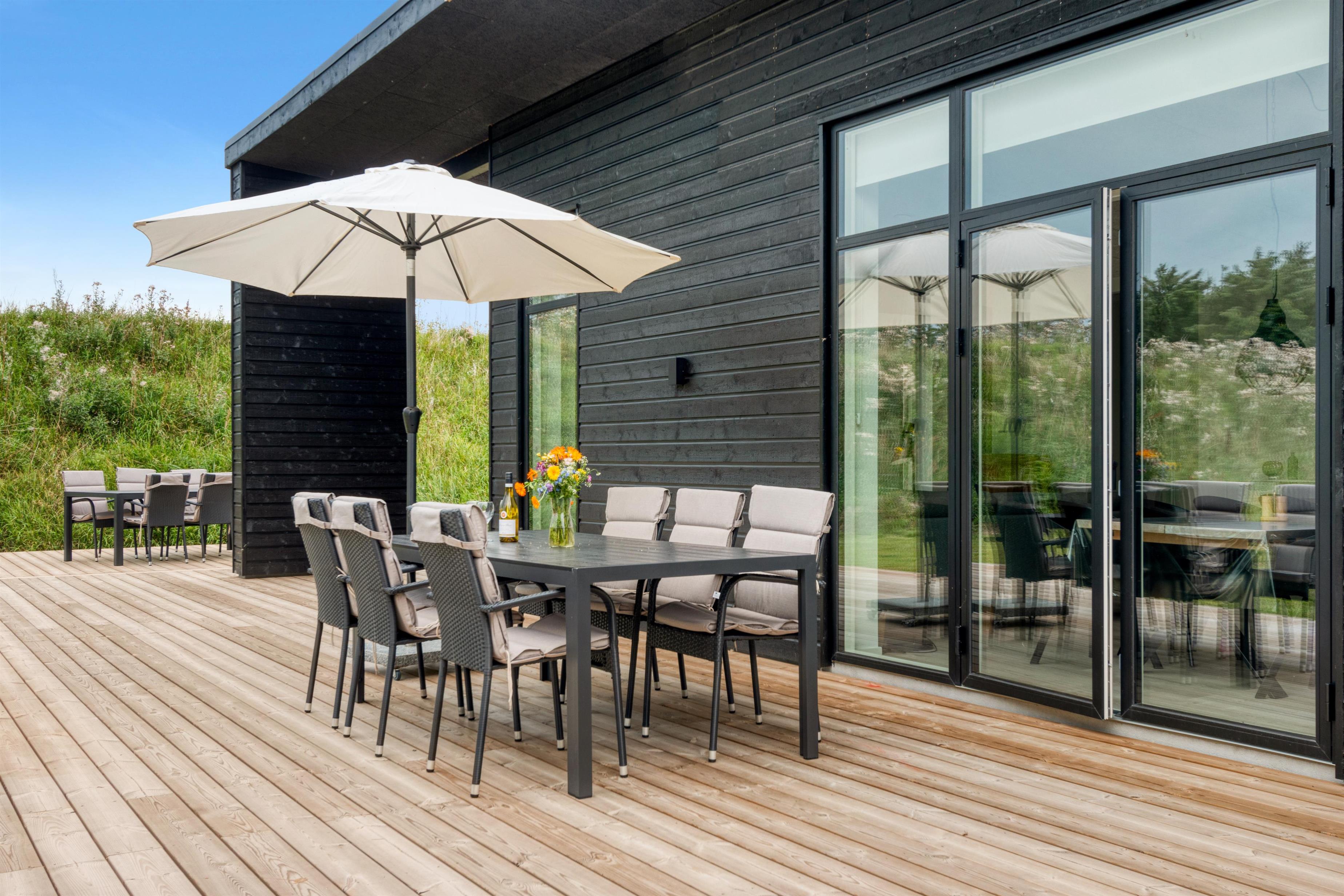 The house is designed for practicality with a focus on comfort and modern amenities, and it is heated with district heating. The kitchen is large, bright, and luxurious. There is a lockable shed, carport, garden furniture, and everything our hearts desire when renting a modern and newly built summer house in Løkken.
