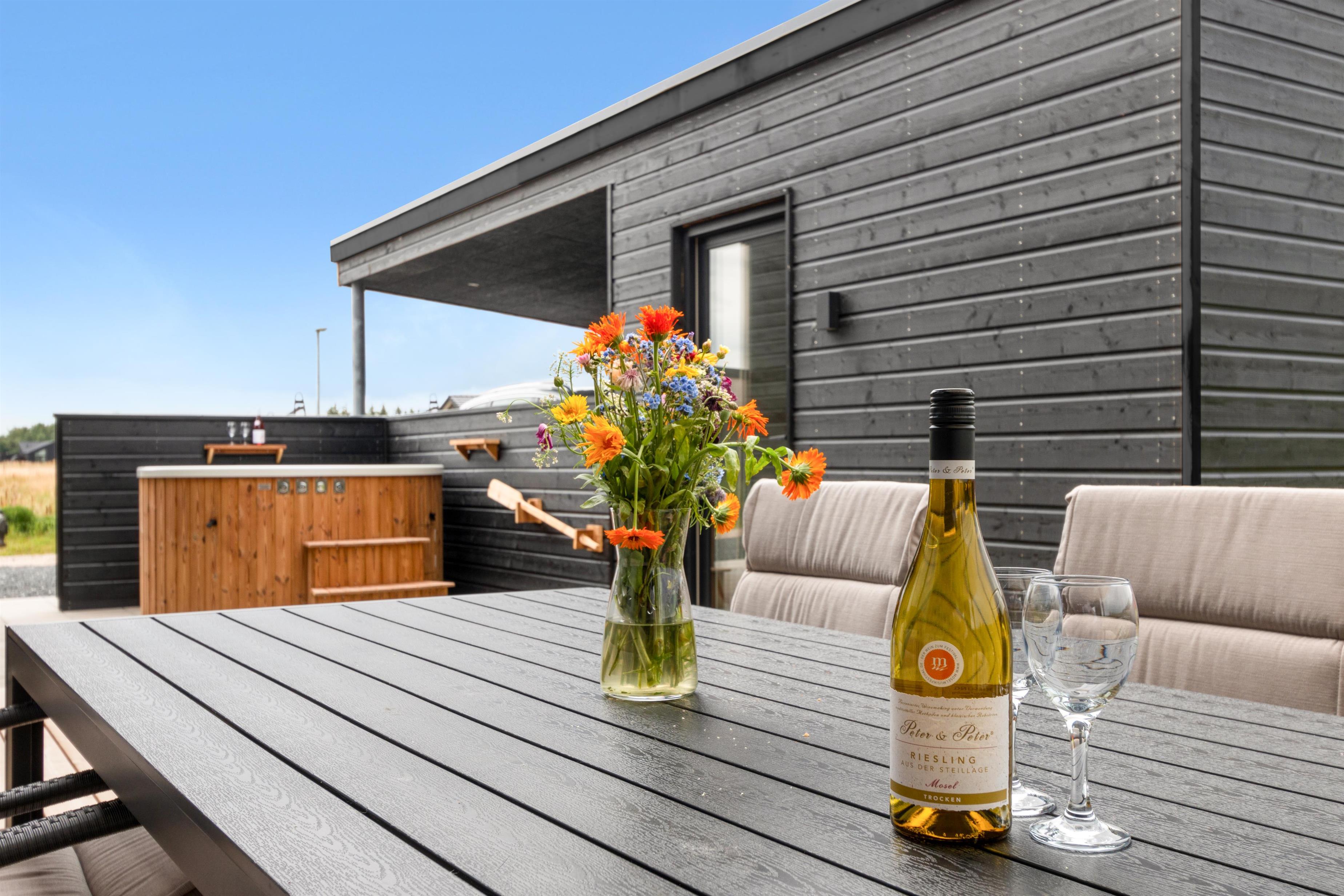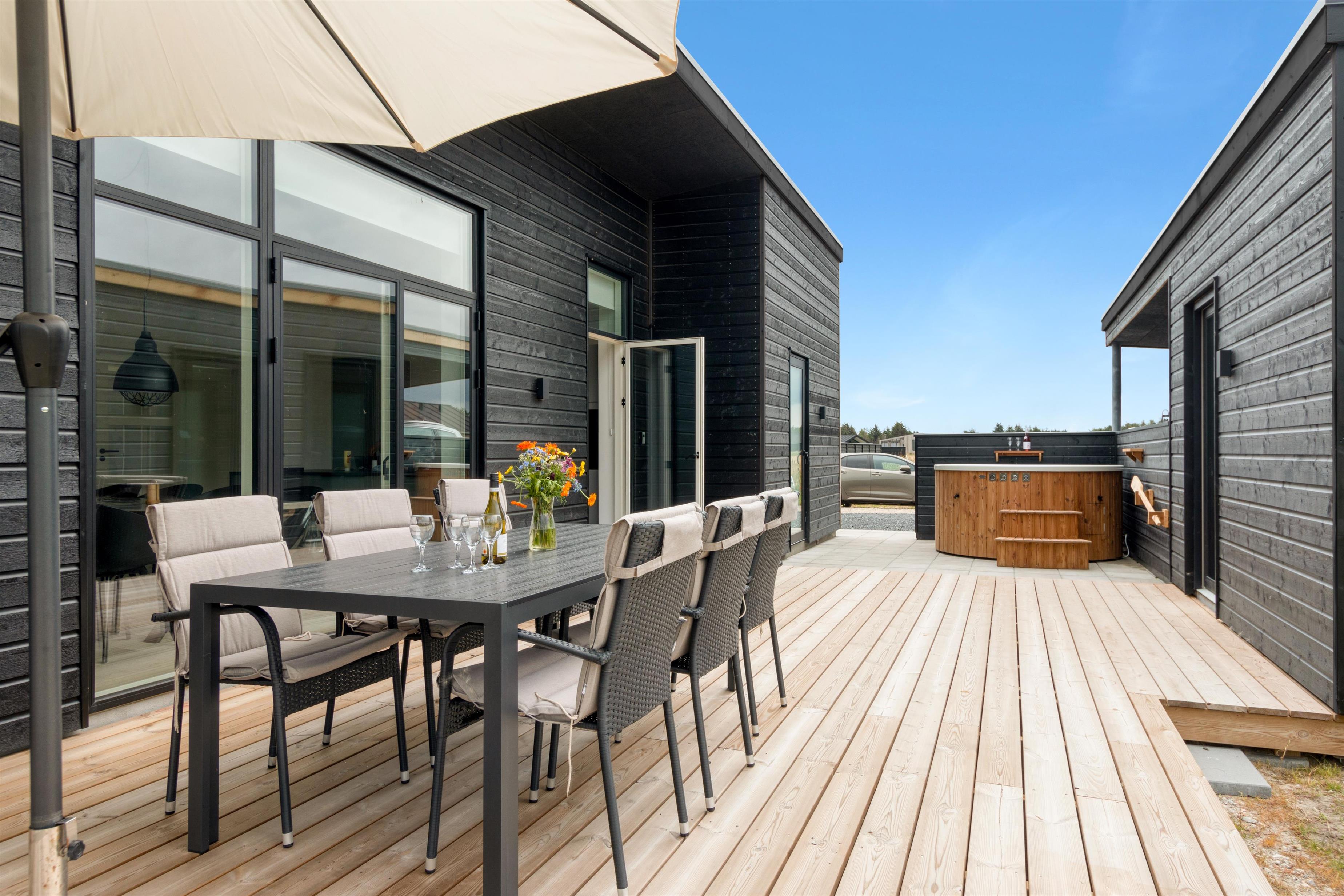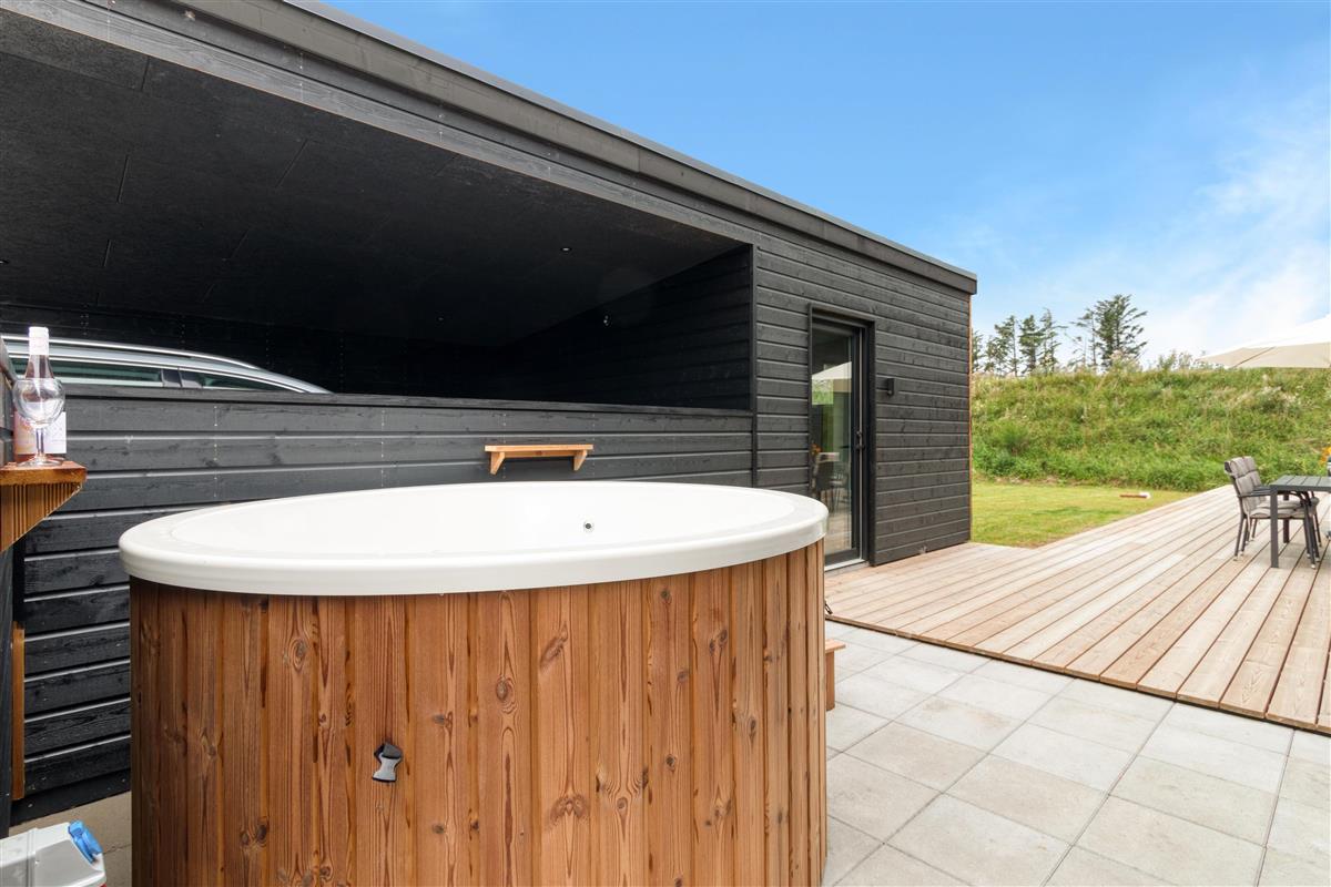 From the kitchen and living room, there is access to the house's lovely, large terrace, where one can fully enjoy the Danish summer weather. The house's location close to Løkken town center and the North Sea means that one is close to everything, yet in a good distance from traffic and noise from the city's life. There are, of course, garden furniture and a grill - and even an electric hot tub available. And Løkken town itself is the place where there is plenty of space, whether you want outdoor activities, wellness and pampering, or peace and contemplation.