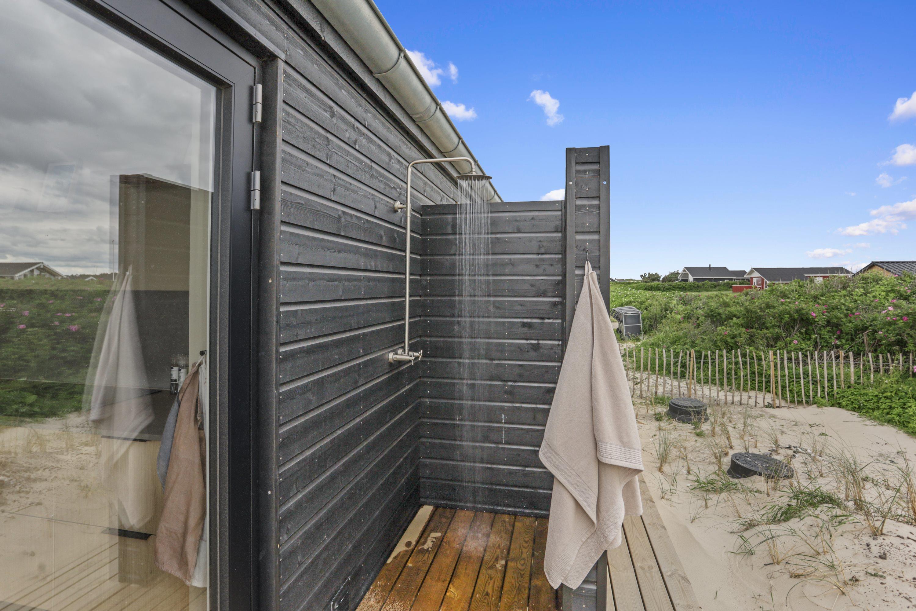 As mentioned, the summer house’s outdoor areas exude the essence of Danish summer nature at its best, while also offering a wellness feeling due to the outdoor sauna, wilderness spa, beachgrass, and terrace areas. The summer house is located in Nr. Lyngby, where there are plenty of opportunities for numerous experiences in the Danish summer landscape with just 300 meters to the beach and a wealth of nature experiences. If you wish to visit larger holiday towns during your stay, Løkken is just 5 km away, and Lønstrup is only 9 km away, offering something for everyone within a short distance.