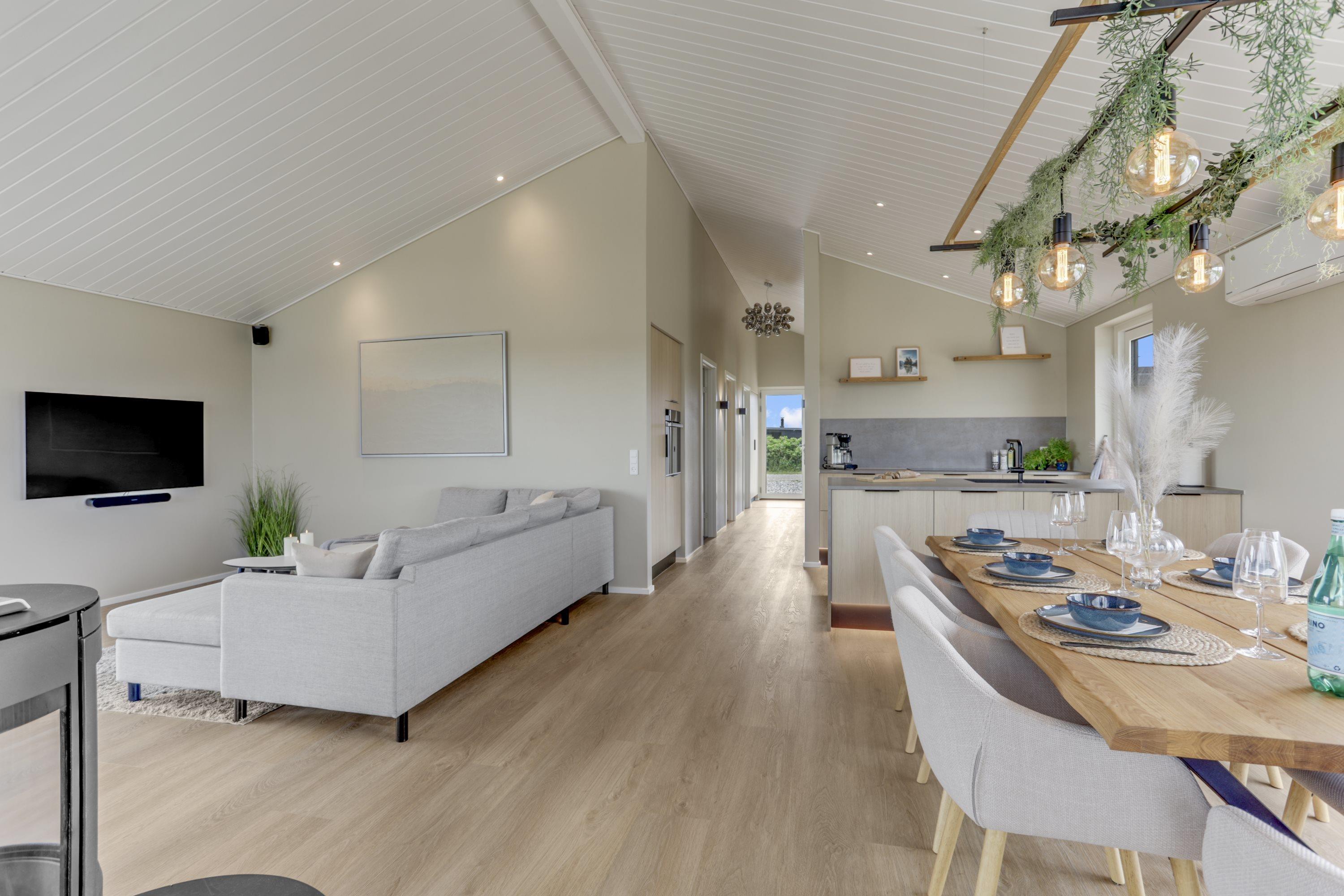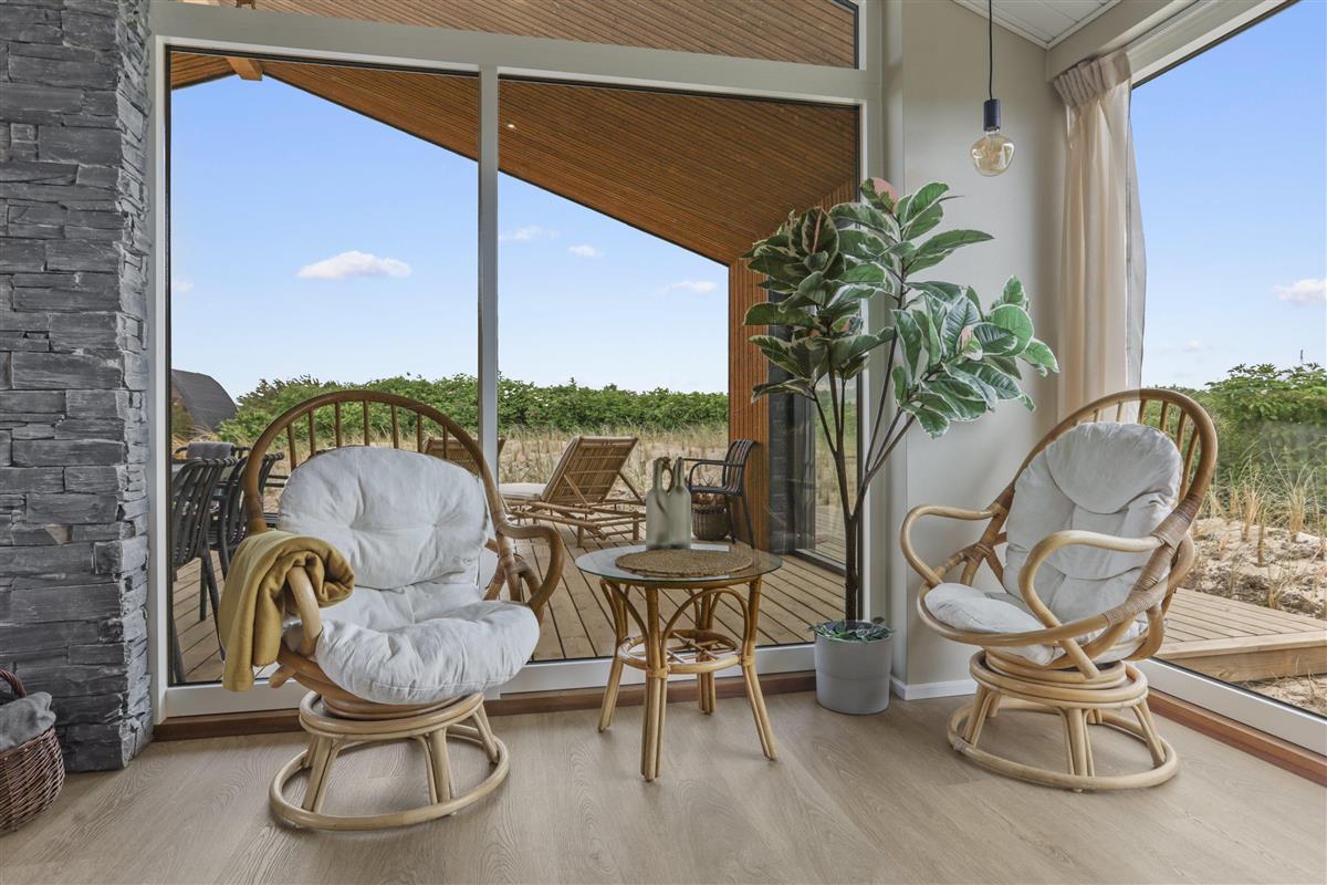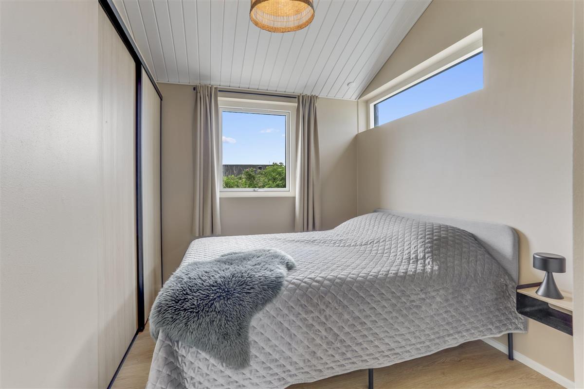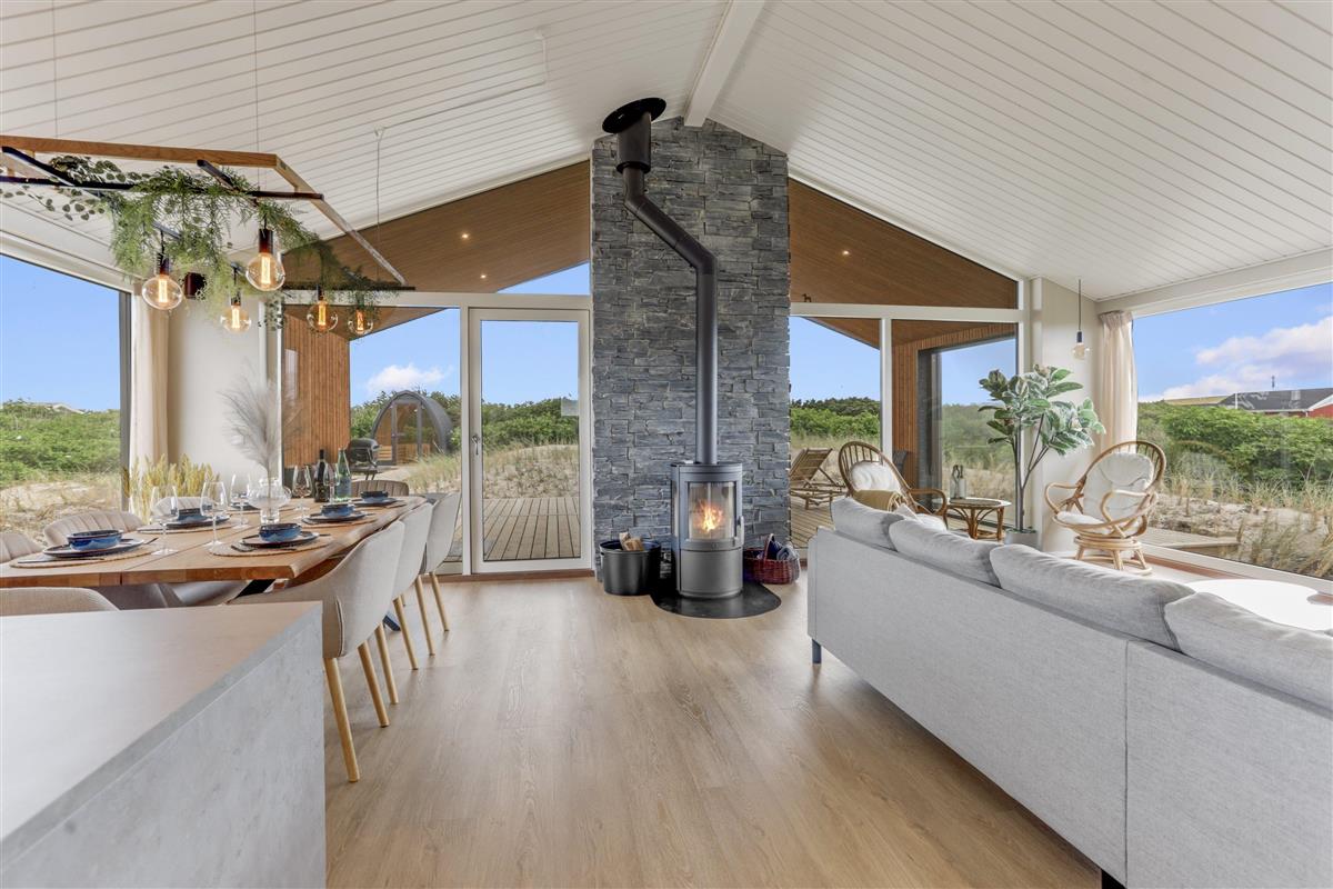 This summer house at Tjørnevej is simply impressive! With space for 6 people, you can spread out over 106 wonderful square meters, where nothing is left to chance – there is even a charging station for an electric car. The 3 lovely bedrooms with heavy curtains and calming colors are located at one end of the house along with the 2 large bathrooms, while the other end features a spacious and bright kitchen/living area with high ceilings and plenty of windows overlooking the stunning outdoor areas. If the weather is nice, it is ideal to use the lovely terraces - of which 28 square meters are covered - the delightful sun courtyard, or have a wellness experience in the house’s outdoor sauna, shower, and wilderness spa. If you prefer indoor coziness, you can relax in front of the fireplace and enjoy the beautiful view.