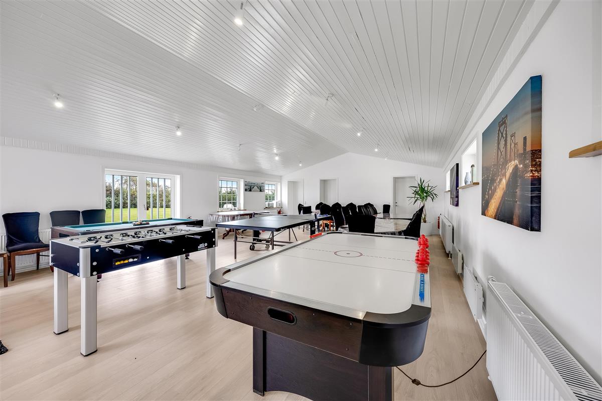 The activity room is a natural gathering point with TV, pool table, foosball, air hockey, and table tennis – so there’s no chance of boredom. The large, enclosed garden is perfect for play and relaxation for children, adults, and even dogs. The property is beautifully located in open countryside with views of Rubjerg Knude Lighthouse to the northwest and Børglum Monastery to the southeast. At the same time, it’s only a short drive or bike ride to both Løkken, Lønstrup, shopping opportunities, and the North Sea.