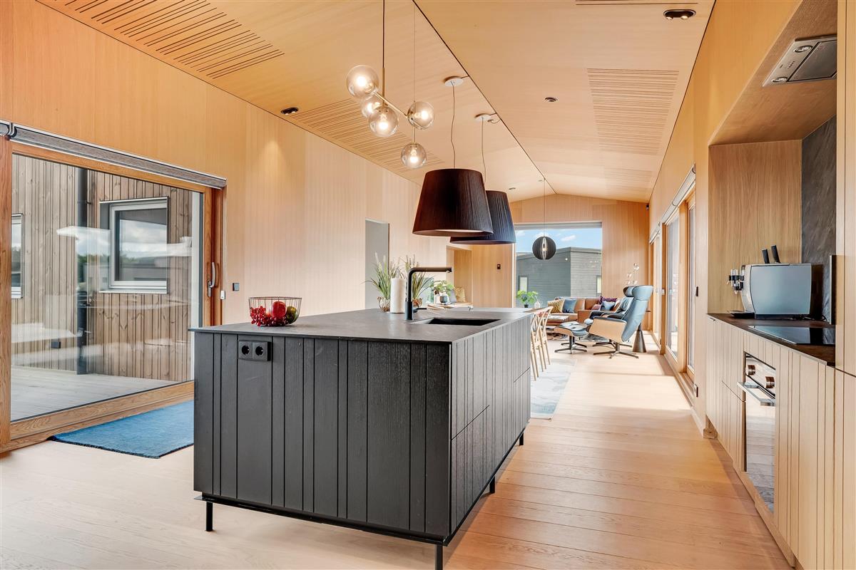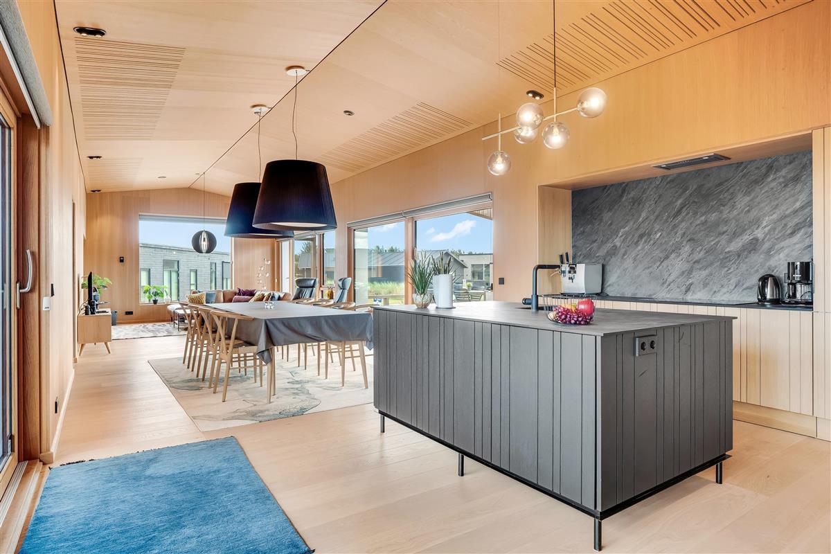 Several terraces and spacious outdoor areas make it easy to find both sun and shelter. There’s plenty of room for relaxation and play, and the beach, town, and shops are all within about a kilometre. Just 500 metres away you’ll find playgrounds and a golf course, and as the road is a cul-de-sac, it’s very quiet. You can walk, cycle, or drive to the beach – one of Denmark’s absolute best.