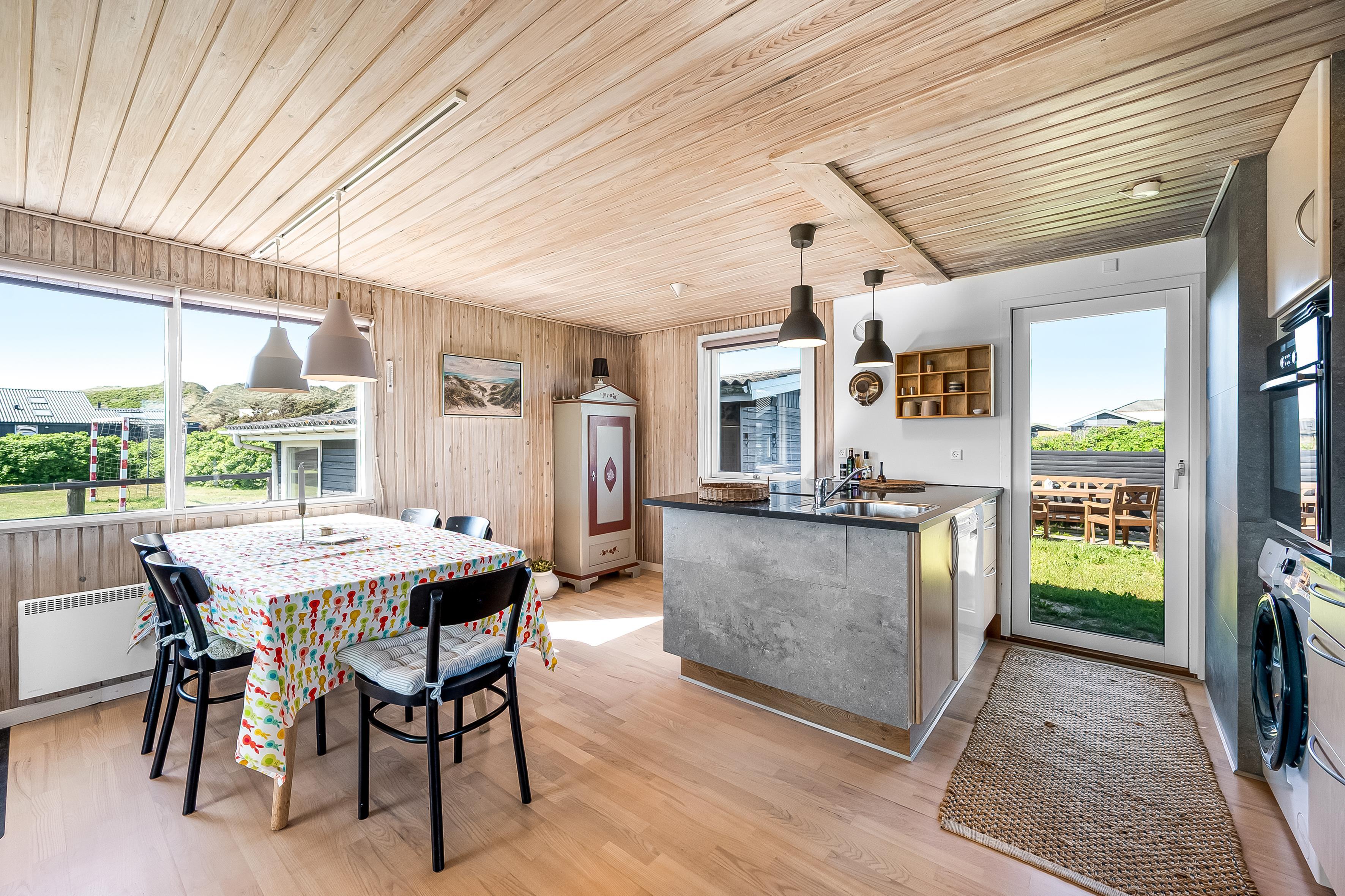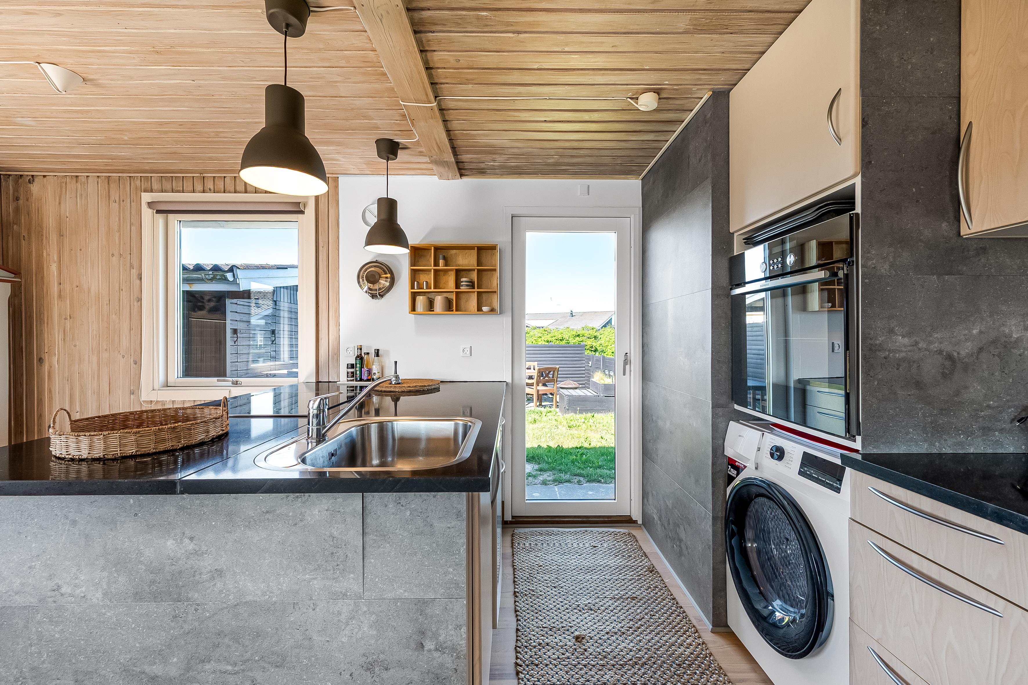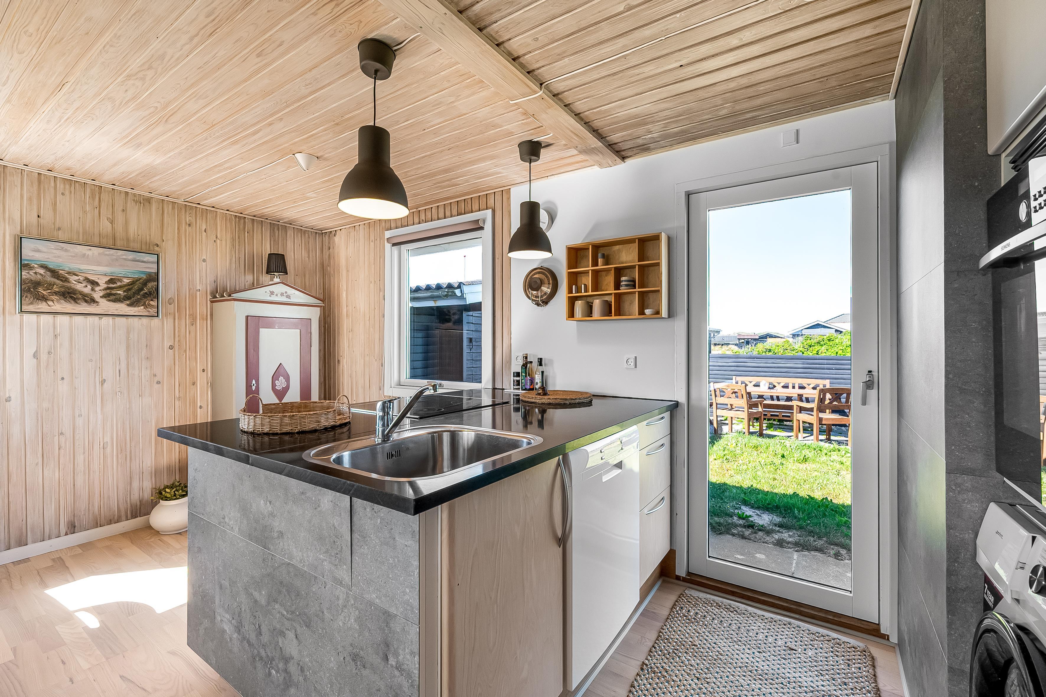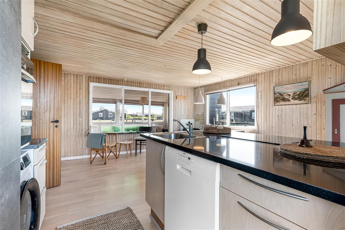 The house is situated on an 815 sqm natural plot in the heart of charming Furreby, a quiet and attractive holiday town surrounded by beautiful nature and just a short distance from Løkken town center, shopping, public transport, and grocery stores. There are numerous paths to the North Sea, and just 200 meters from the house, you'll find the wide, white sandy beach. There are terraces on both sides of the house, allowing you to find sun and shelter and enjoy the lovely holiday surroundings.