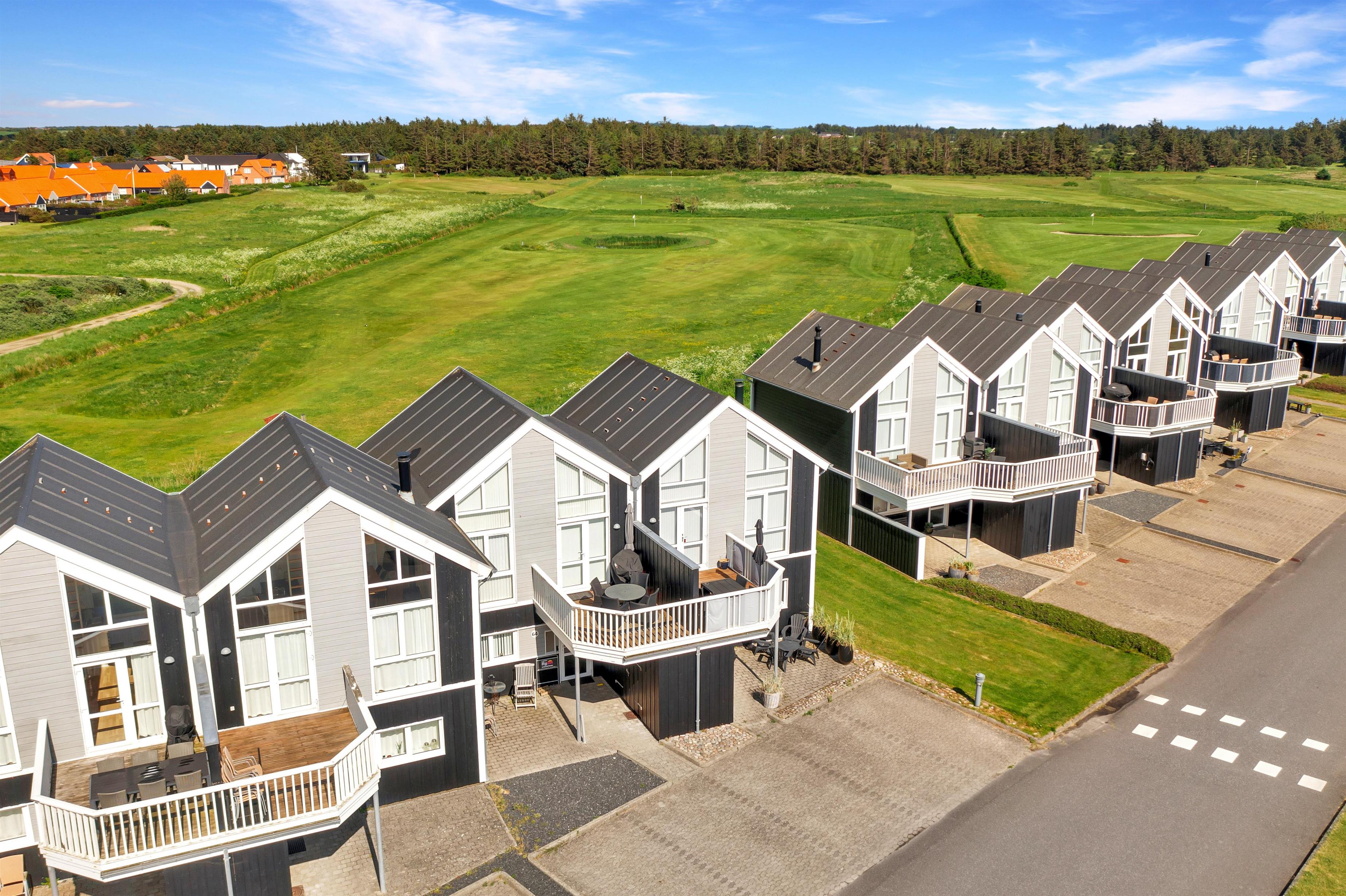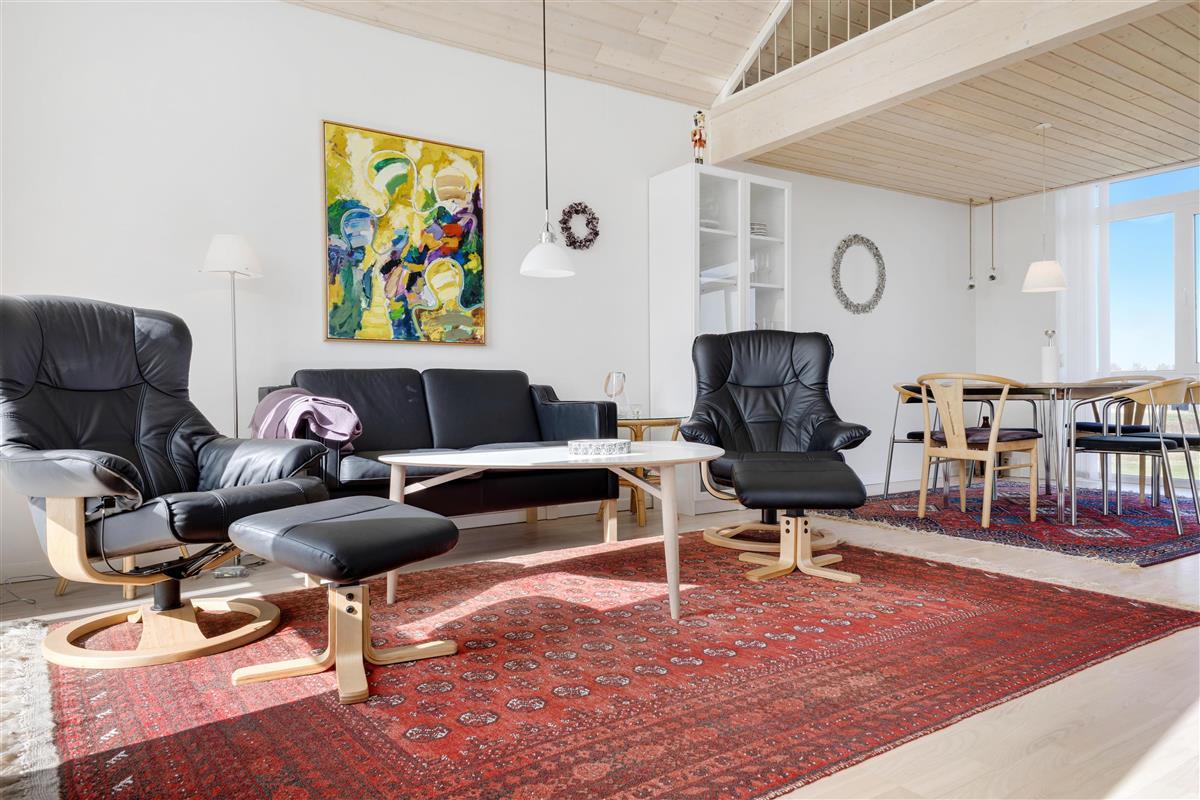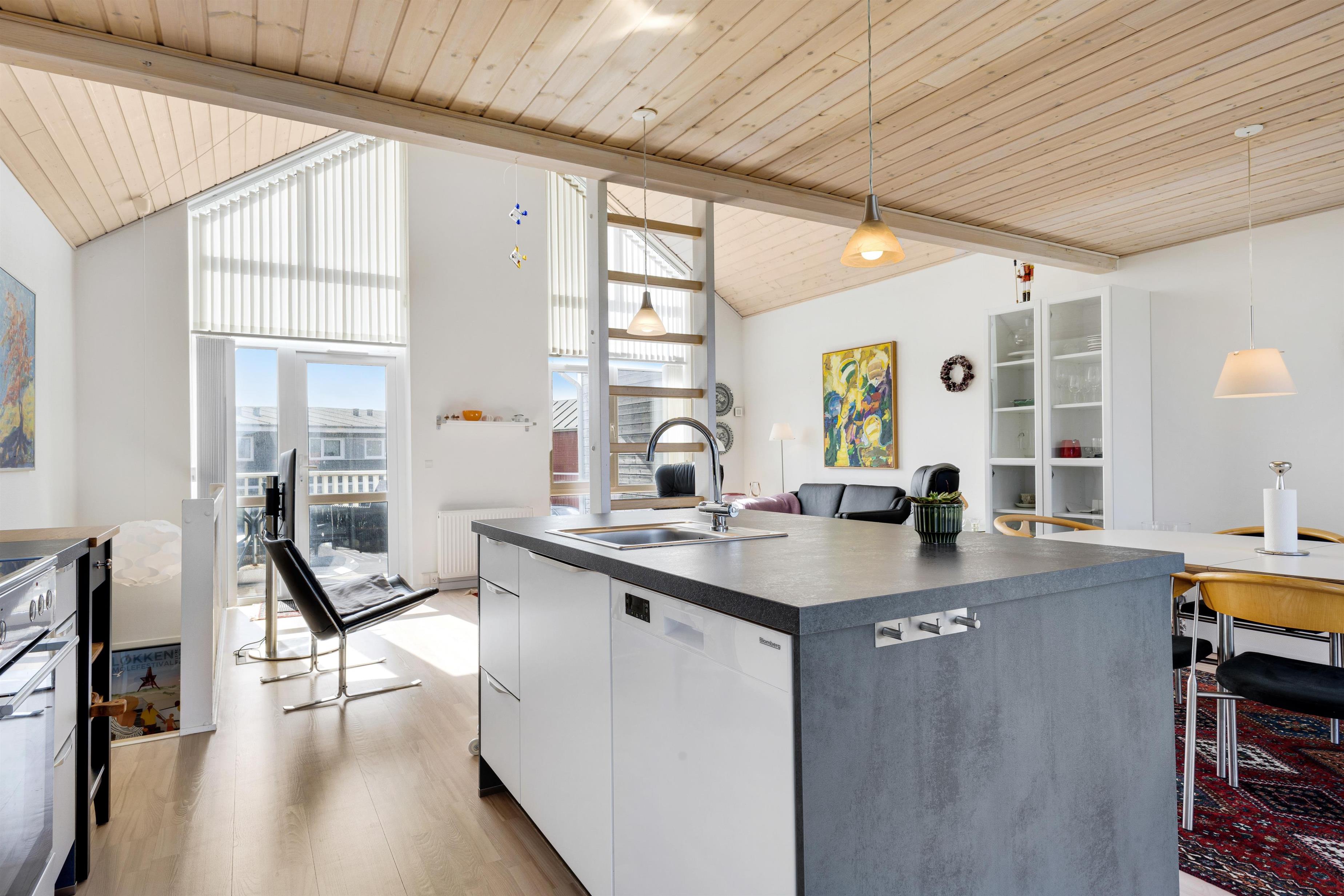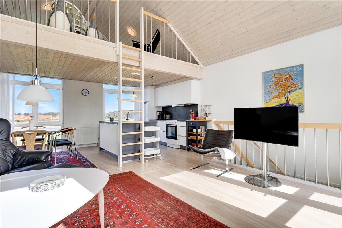 The holiday home is perfectly located in Løkken, offering the opportunity to retreat and relax with, for example, many hours of golf or enjoy on one of the two terraces. One terrace is on the ground floor at the main door, and the other is on the first floor with access from the cozy living room.