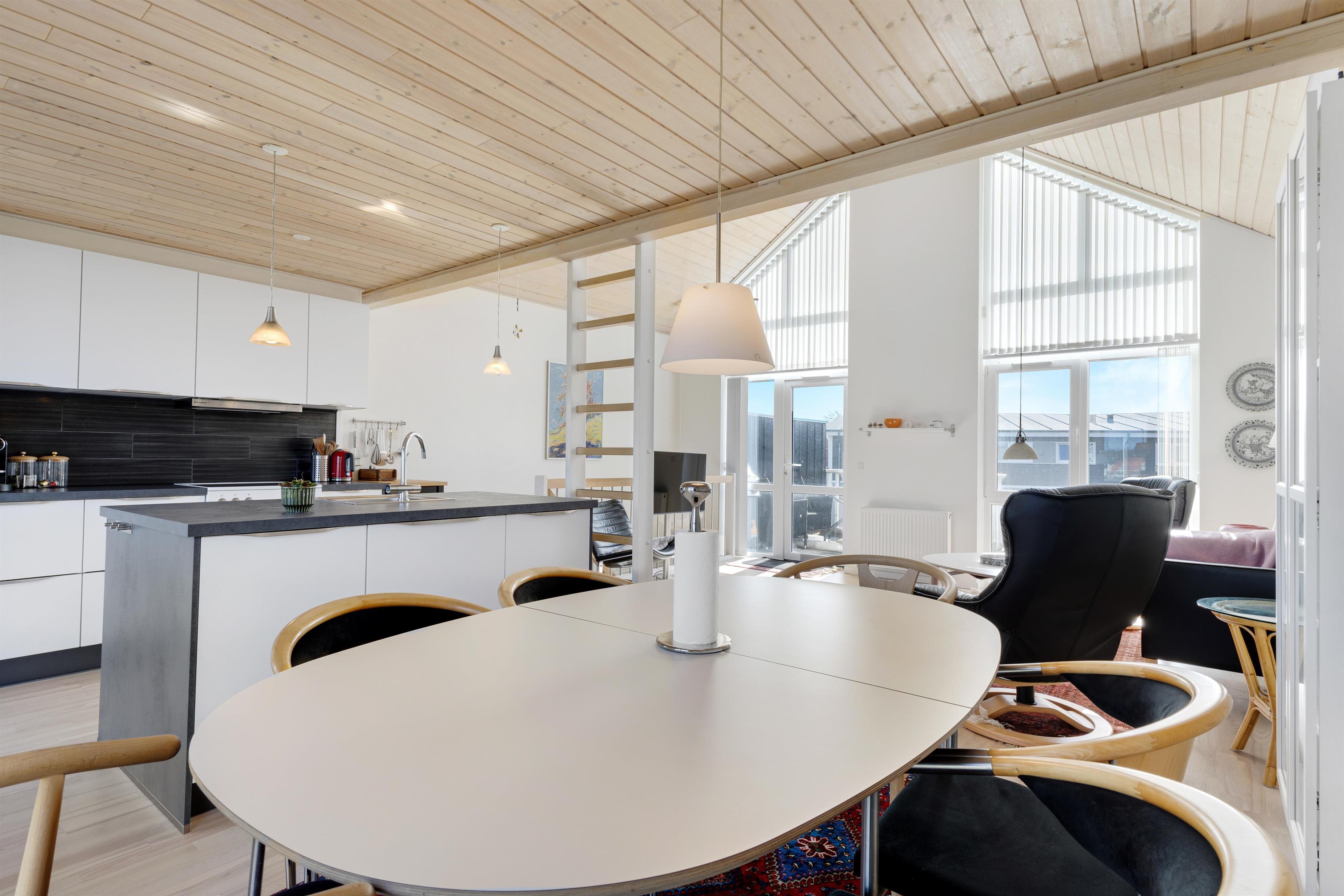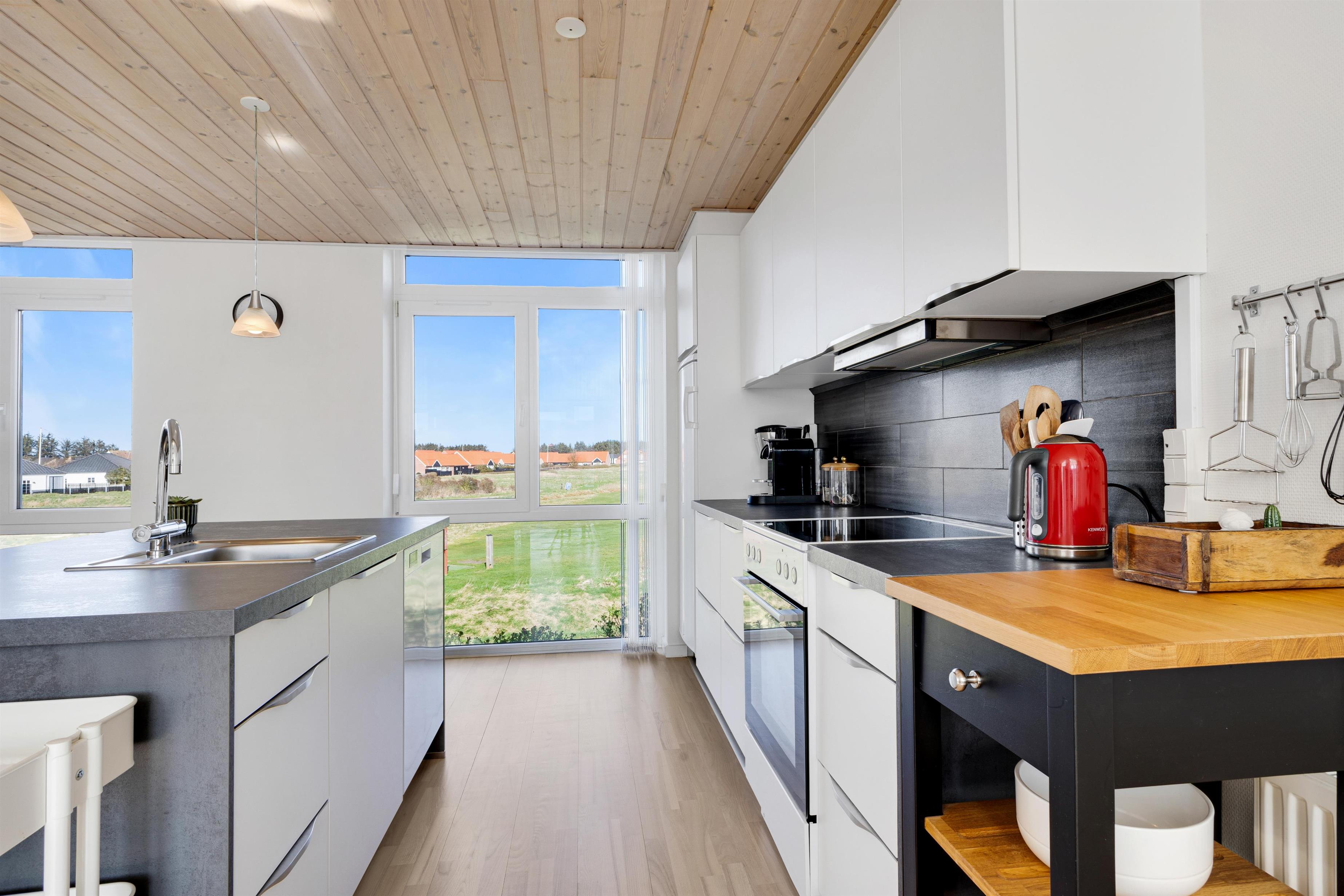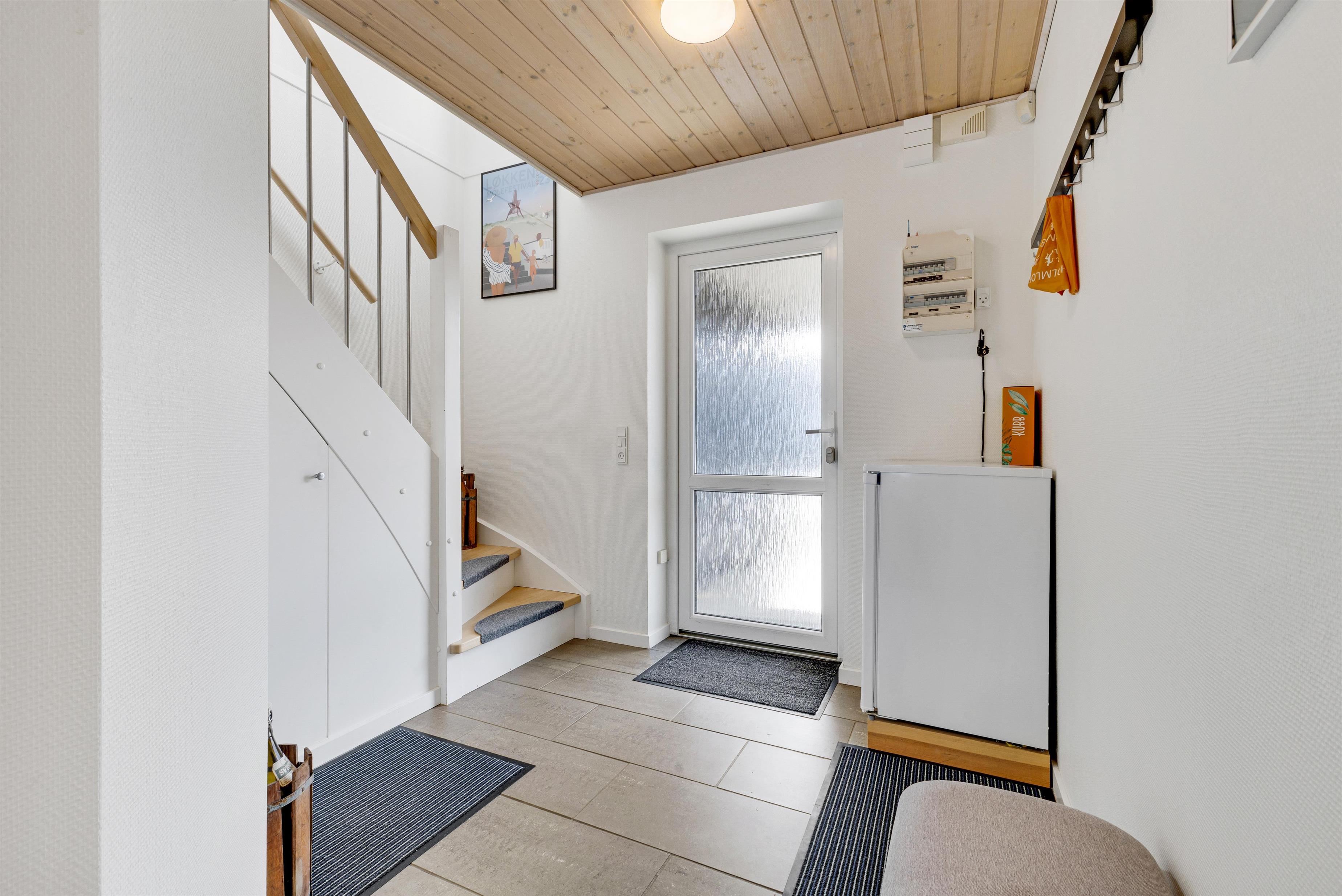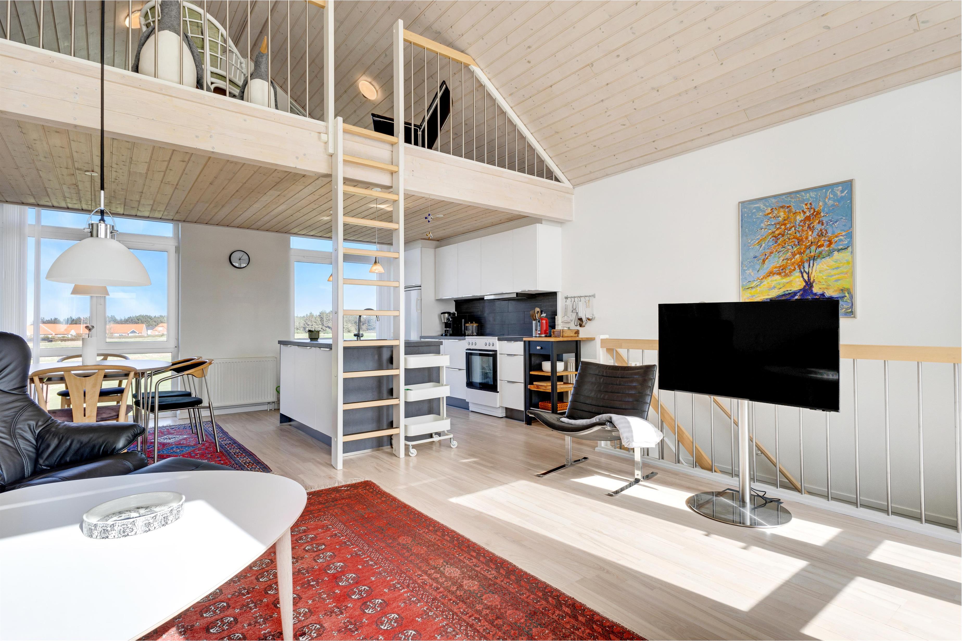 The holiday home is perfectly located in Løkken, offering the opportunity to retreat and relax with, for example, many hours of golf or enjoy on one of the two terraces. One terrace is on the ground floor at the main door, and the other is on the first floor with access from the cozy living room.