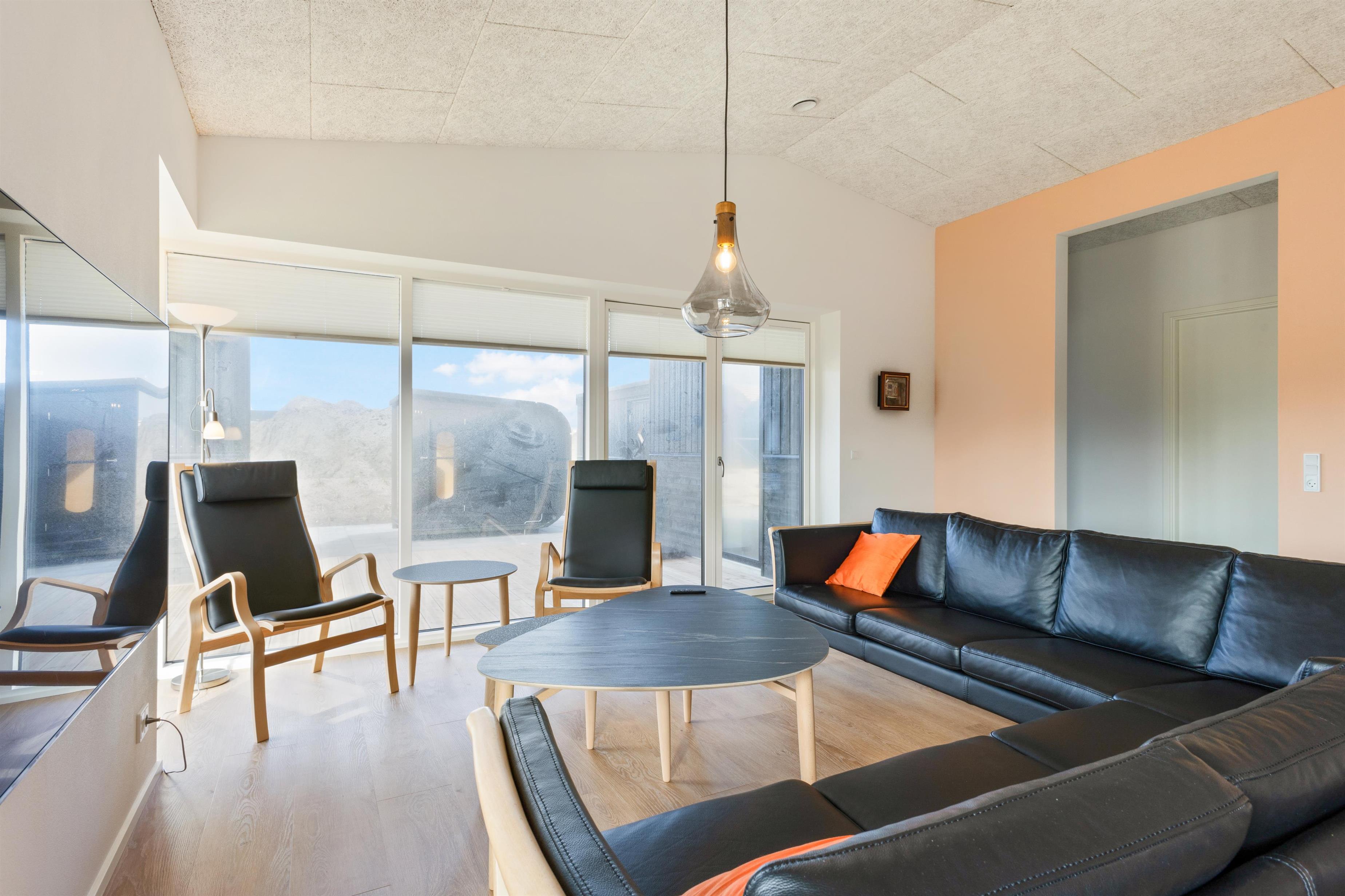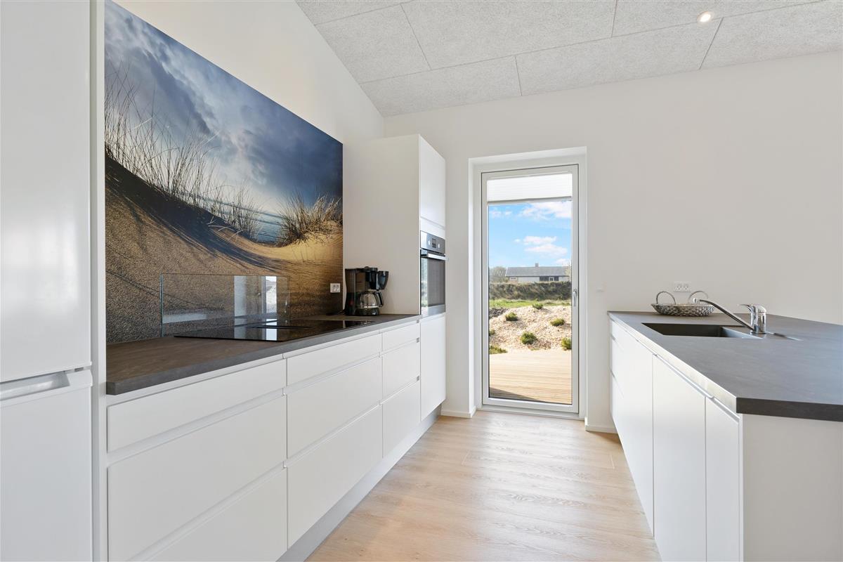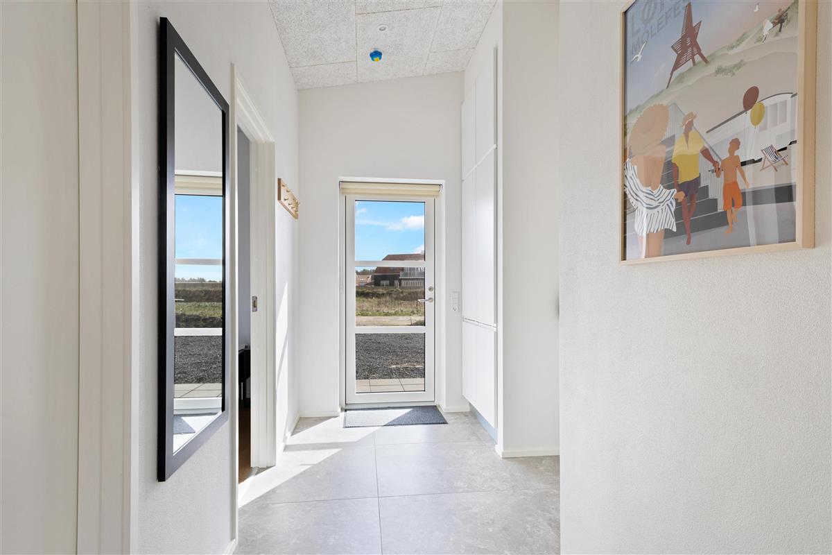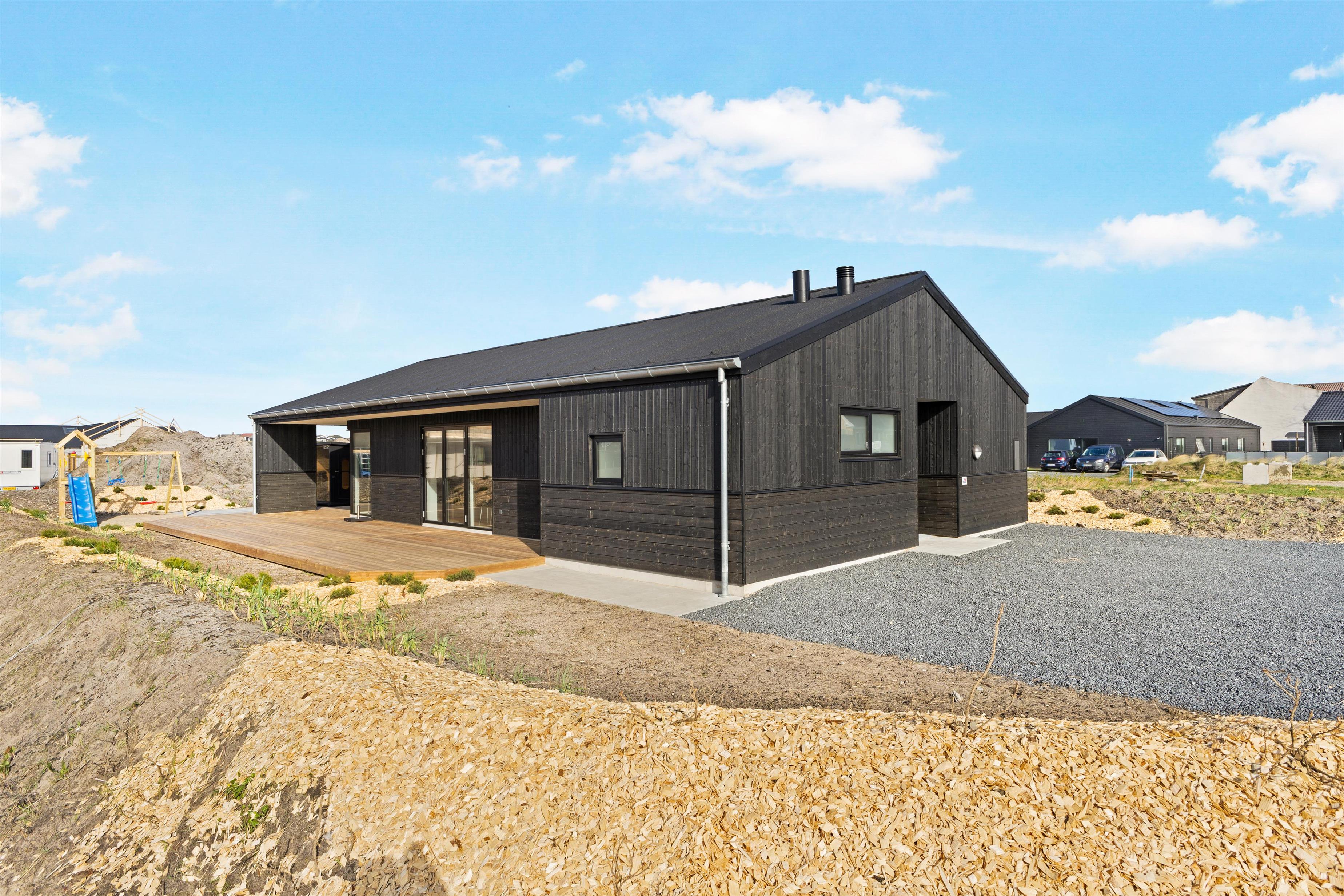 Here, you'll find plenty of terrace space for sunbathing and more. There's also a lovely outdoor shower that makes all the difference in the summer. There's room for the same number of dining guests as there is inside, and plenty of opportunity to find a sunny spot when summer is at its most beautiful. There is walking distance to the water and the town, and within a kilometer, you'll find a fitness center, padel tennis, a swimming pool, beautiful nature, and more!