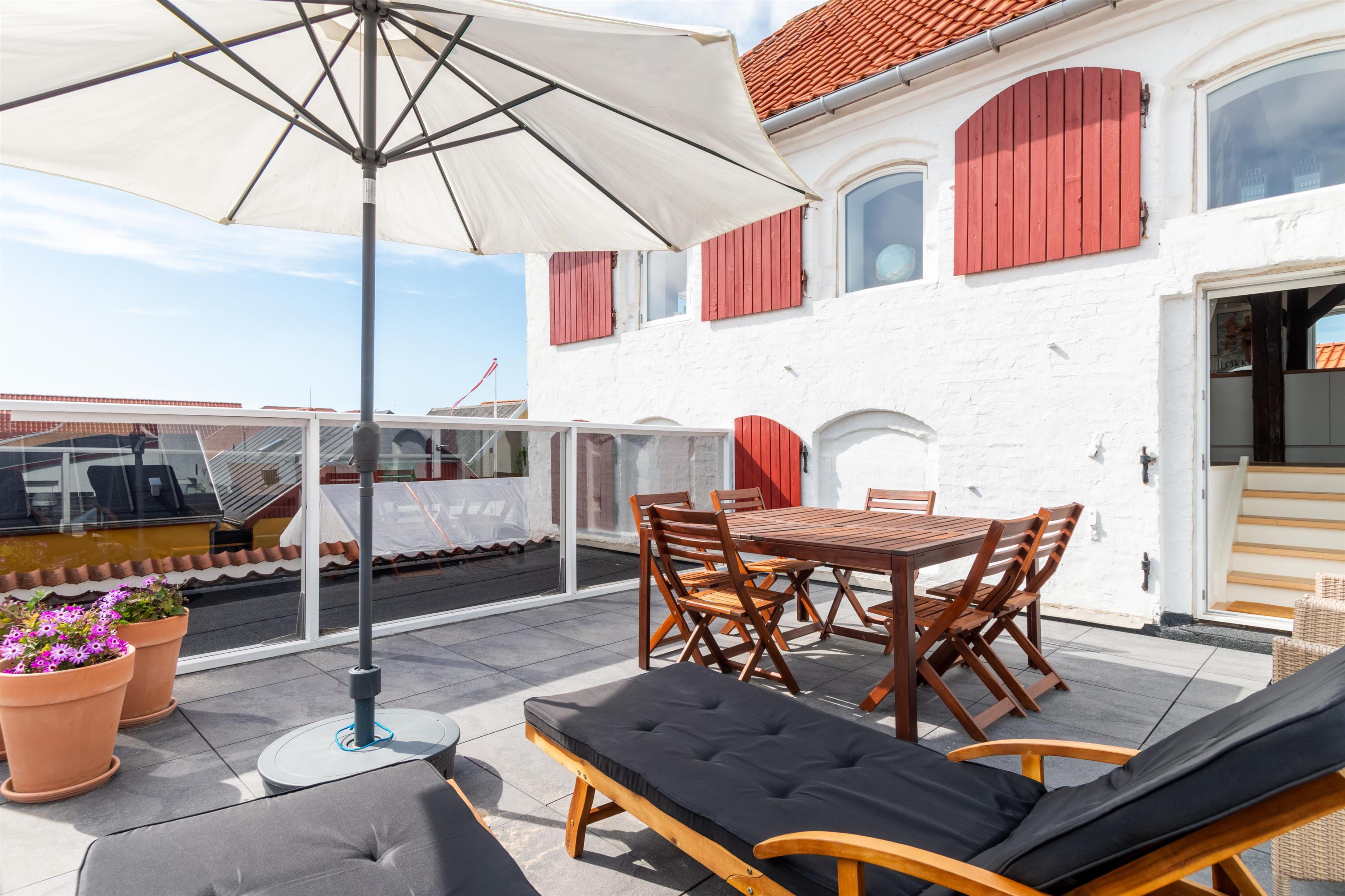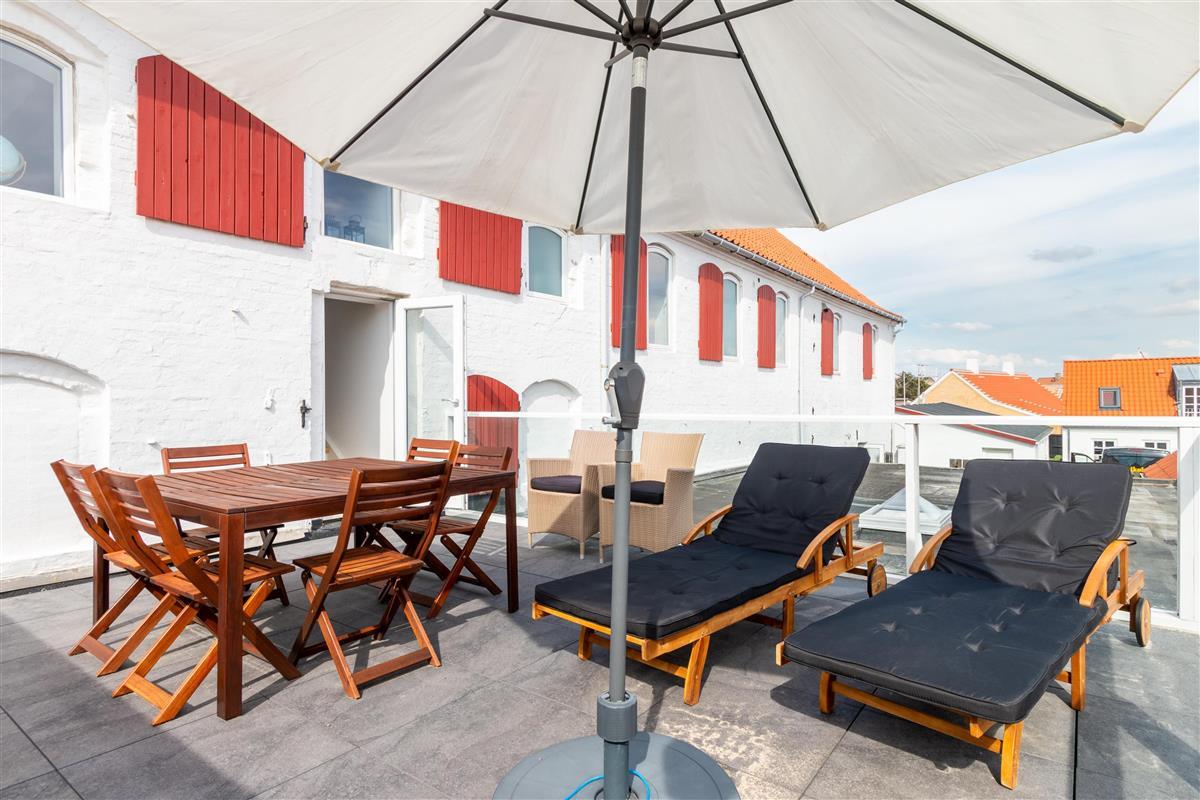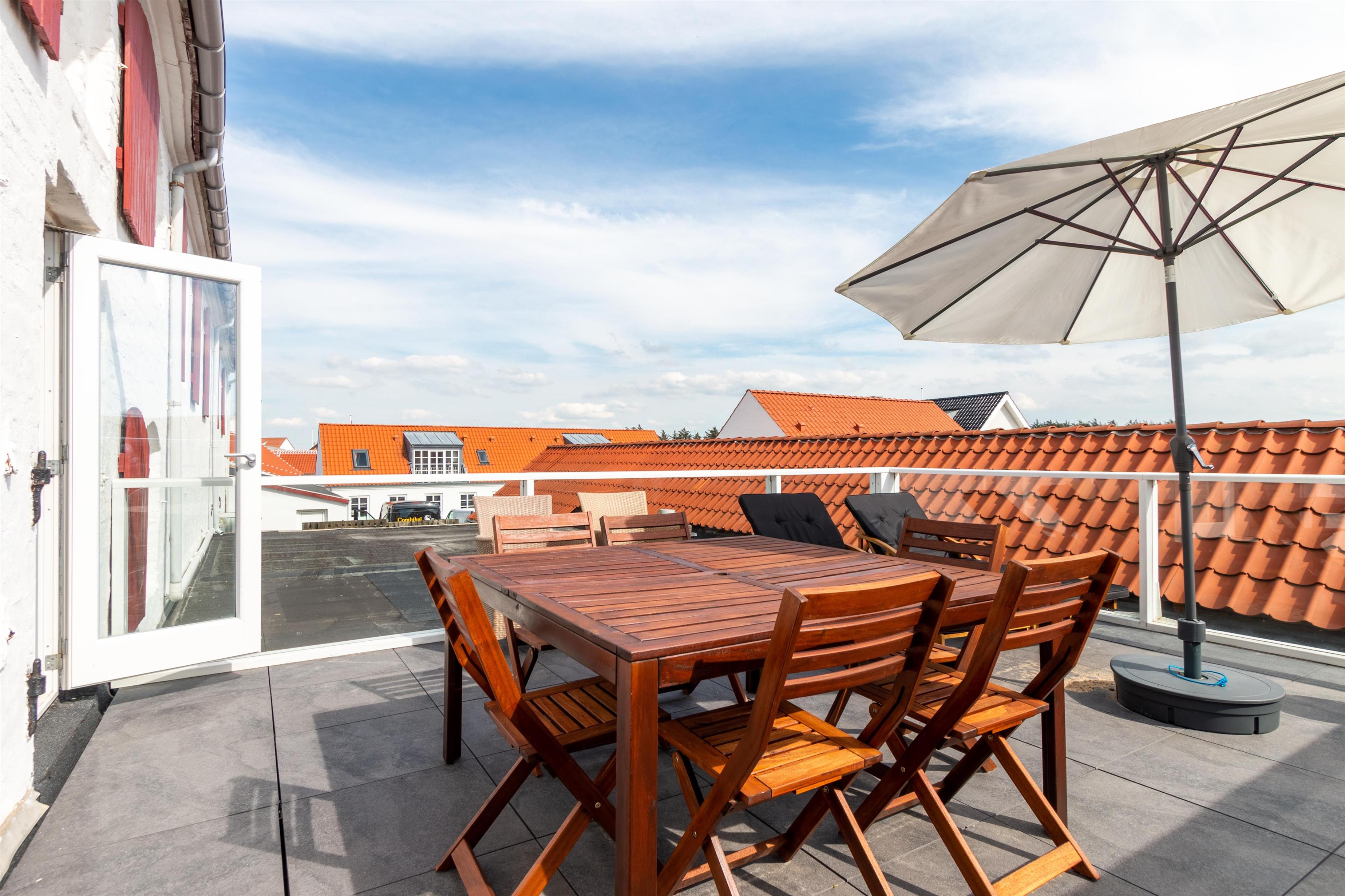 When you rent this holiday apartment in Løkken, you will not lack space - it is in fact a full 167 m² spread over two floors. The lower floor (on the 1st floor) contains a large kitchen / living room, a bright bathroom and the possibility of two extra beds. The living room is integrated into the large room, where walls do not minimize light or airiness. It is also on this floor that you can access the large terrace where you can sunbathe when the weather allows it. On the top floor there are two large, bright bedrooms and another gorgeous bathroom. From all the windows, Løkken's holiday atmosphere radiates!