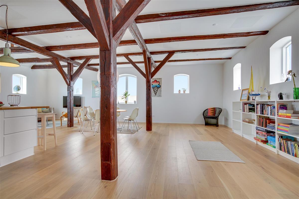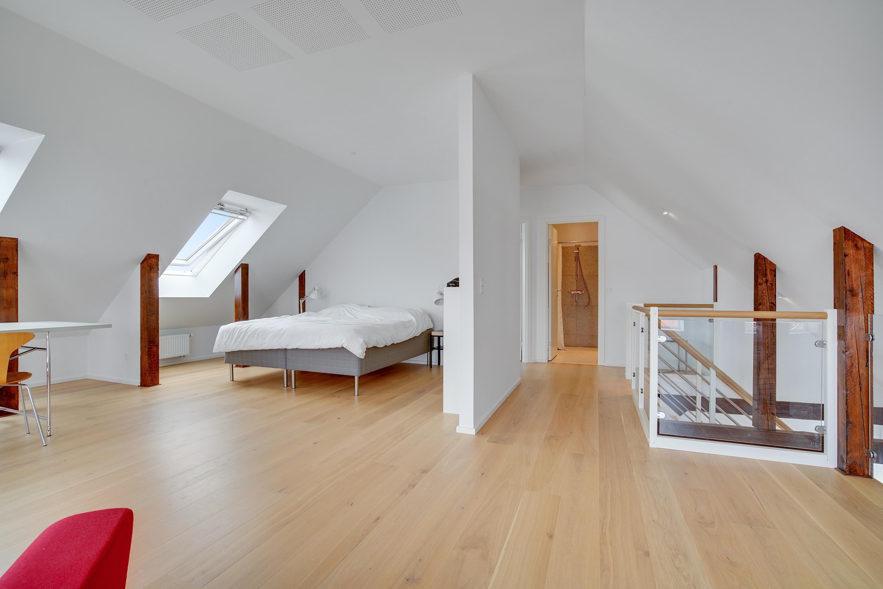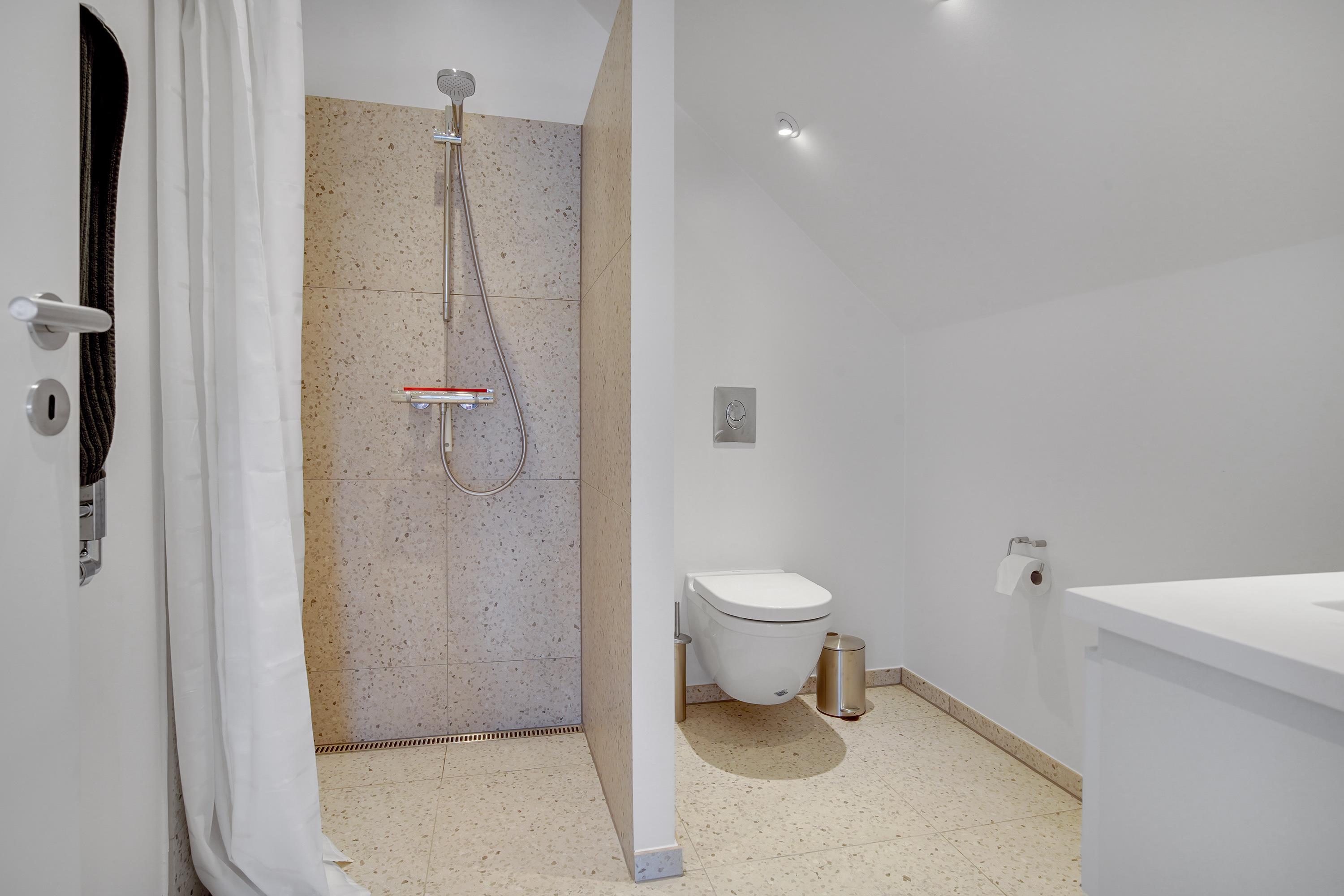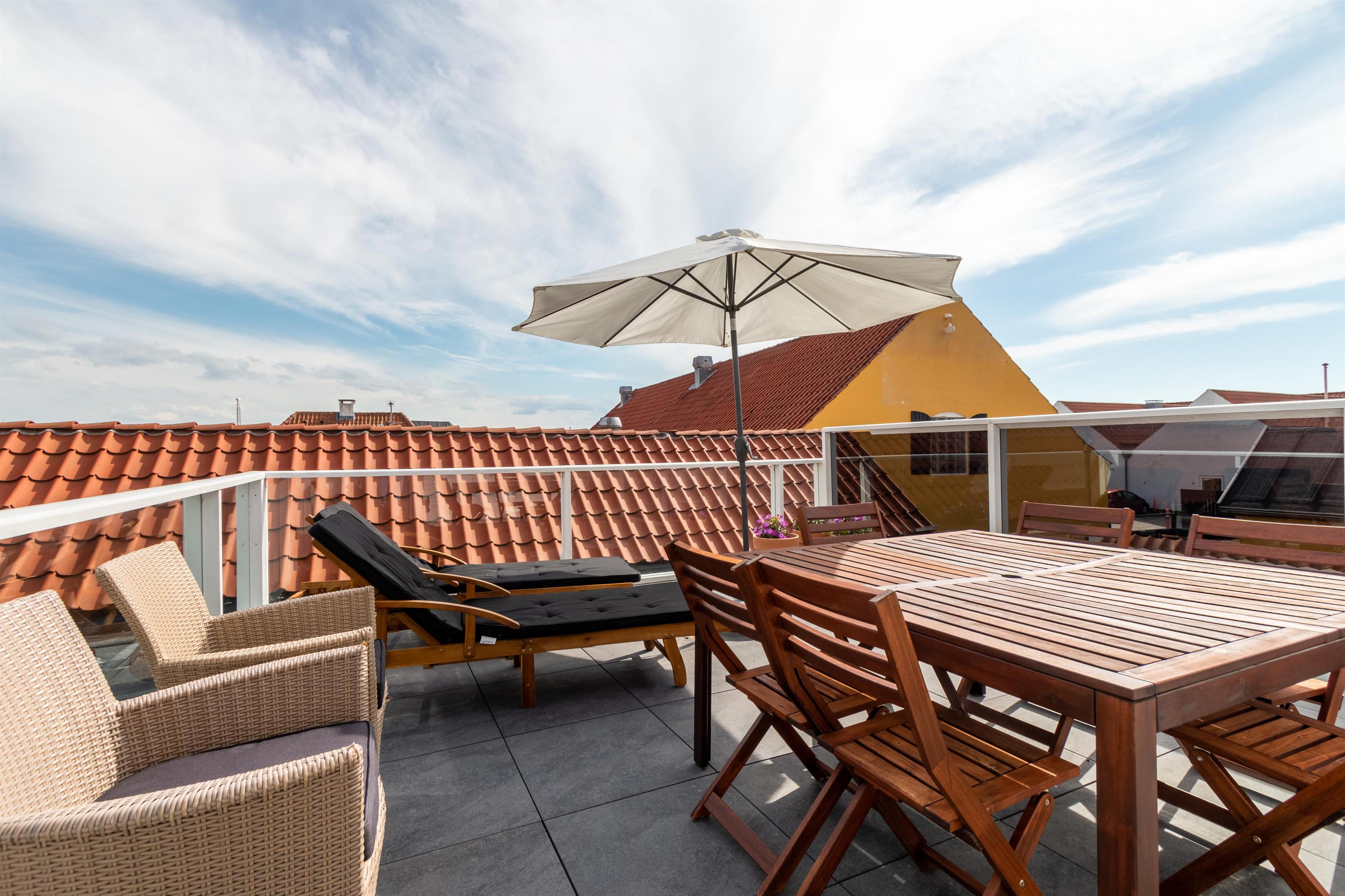 When you rent this holiday apartment in Løkken, you will not lack space - it is in fact a full 167 m² spread over two floors. The lower floor (on the 1st floor) contains a large kitchen / living room, a bright bathroom and the possibility of two extra beds. The living room is integrated into the large room, where walls do not minimize light or airiness. It is also on this floor that you can access the large terrace where you can sunbathe when the weather allows it. On the top floor there are two large, bright bedrooms and another gorgeous bathroom. From all the windows, Løkken's holiday atmosphere radiates!