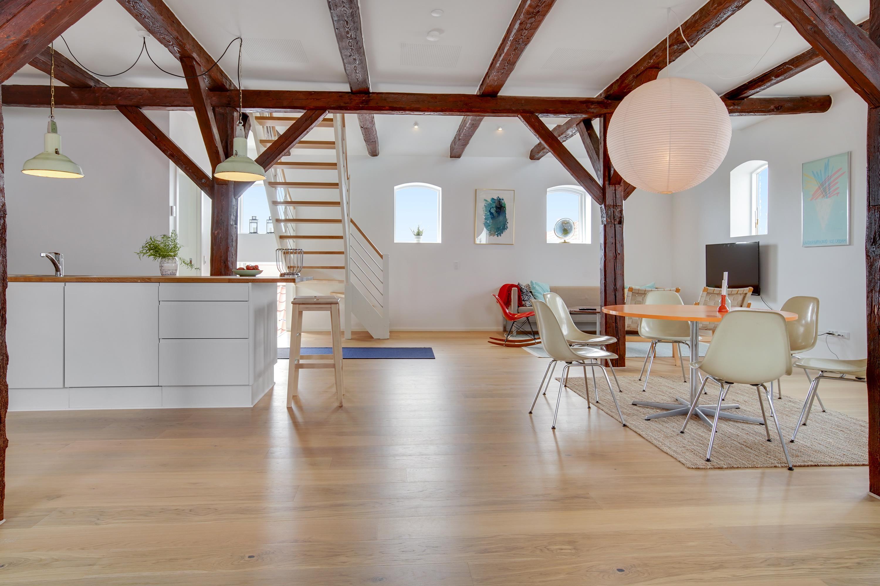Light and airy apartment on two floors.
