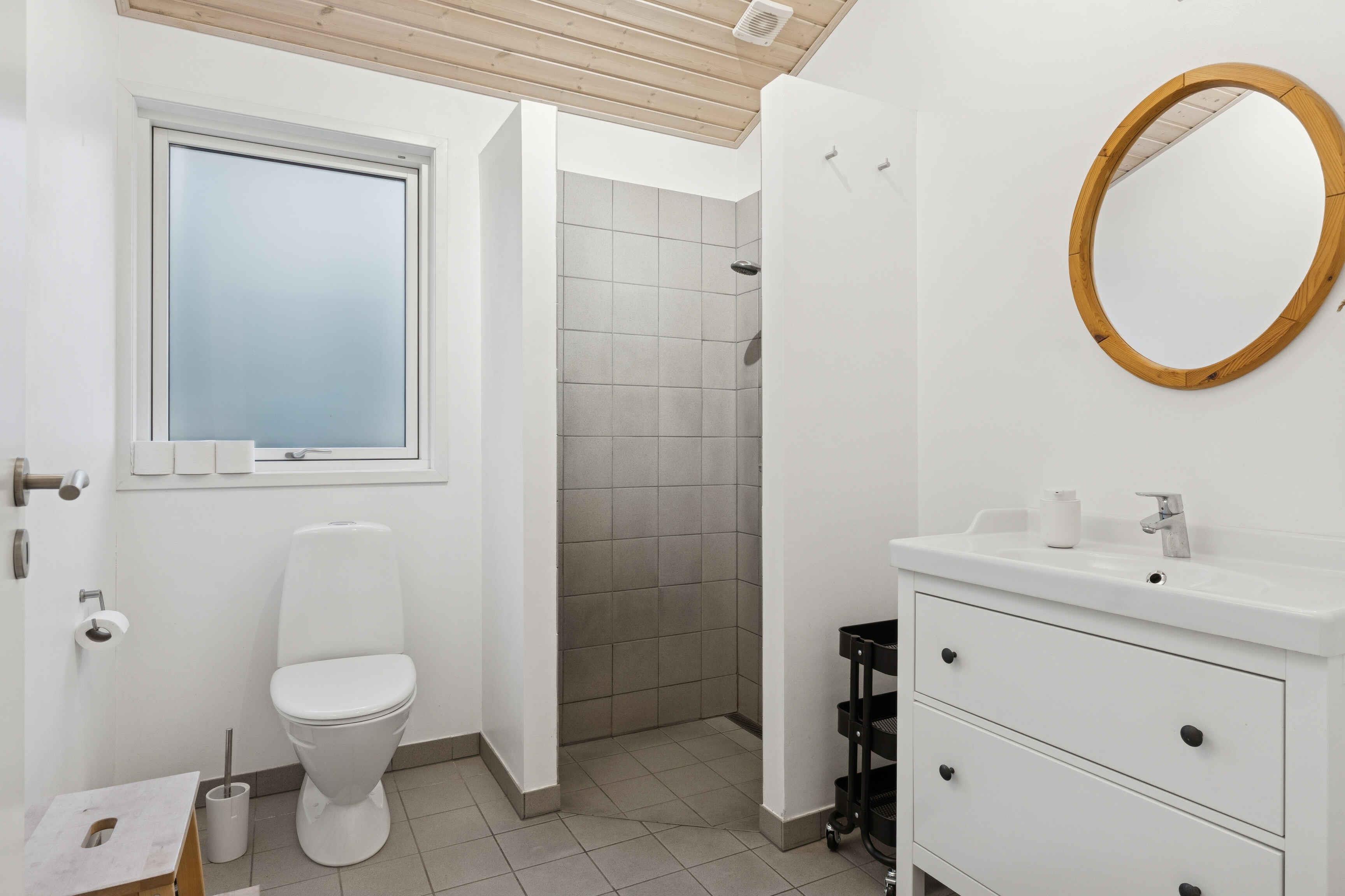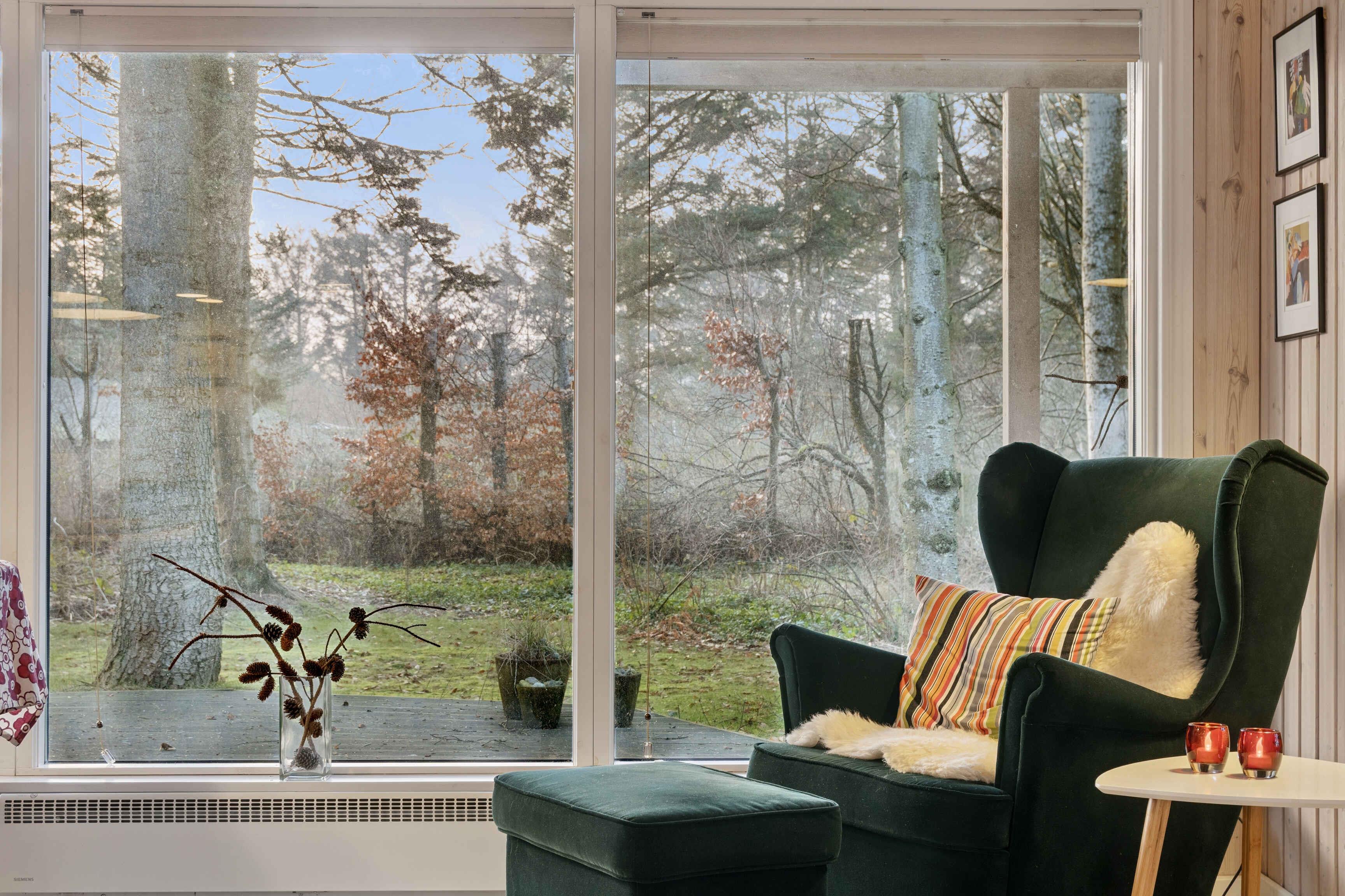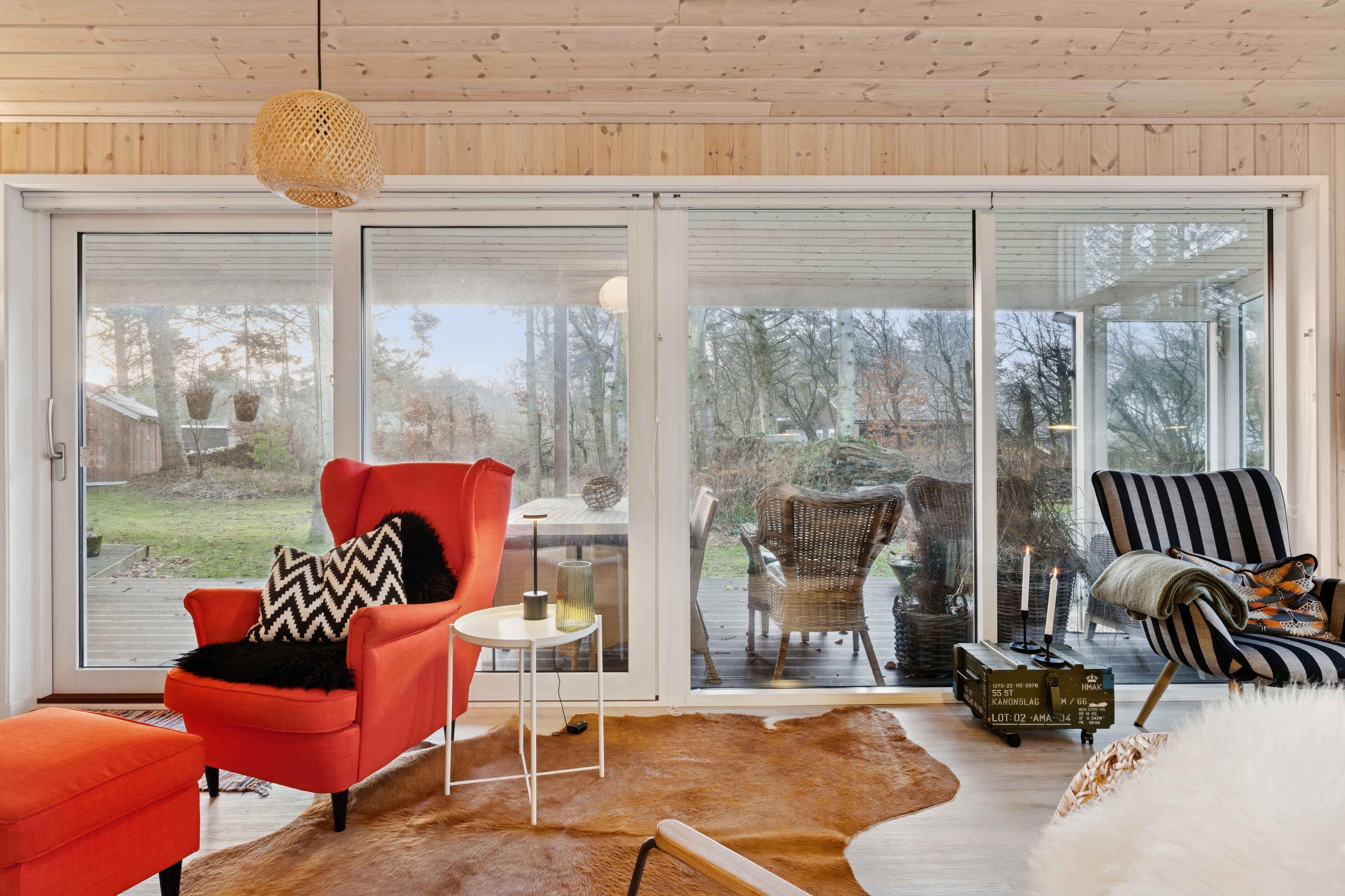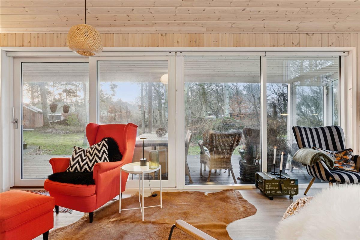 Gezellig vakantiehuis nabij Løkken op een perceel met gras en bos. Het heeft 3 slaapkamers en een gezellig keuken/woonruimte in open verbinding met een sfeervolle woonkamer met houtkachel en veel licht. Daarnaast bijkeuken en 2 badkamers.