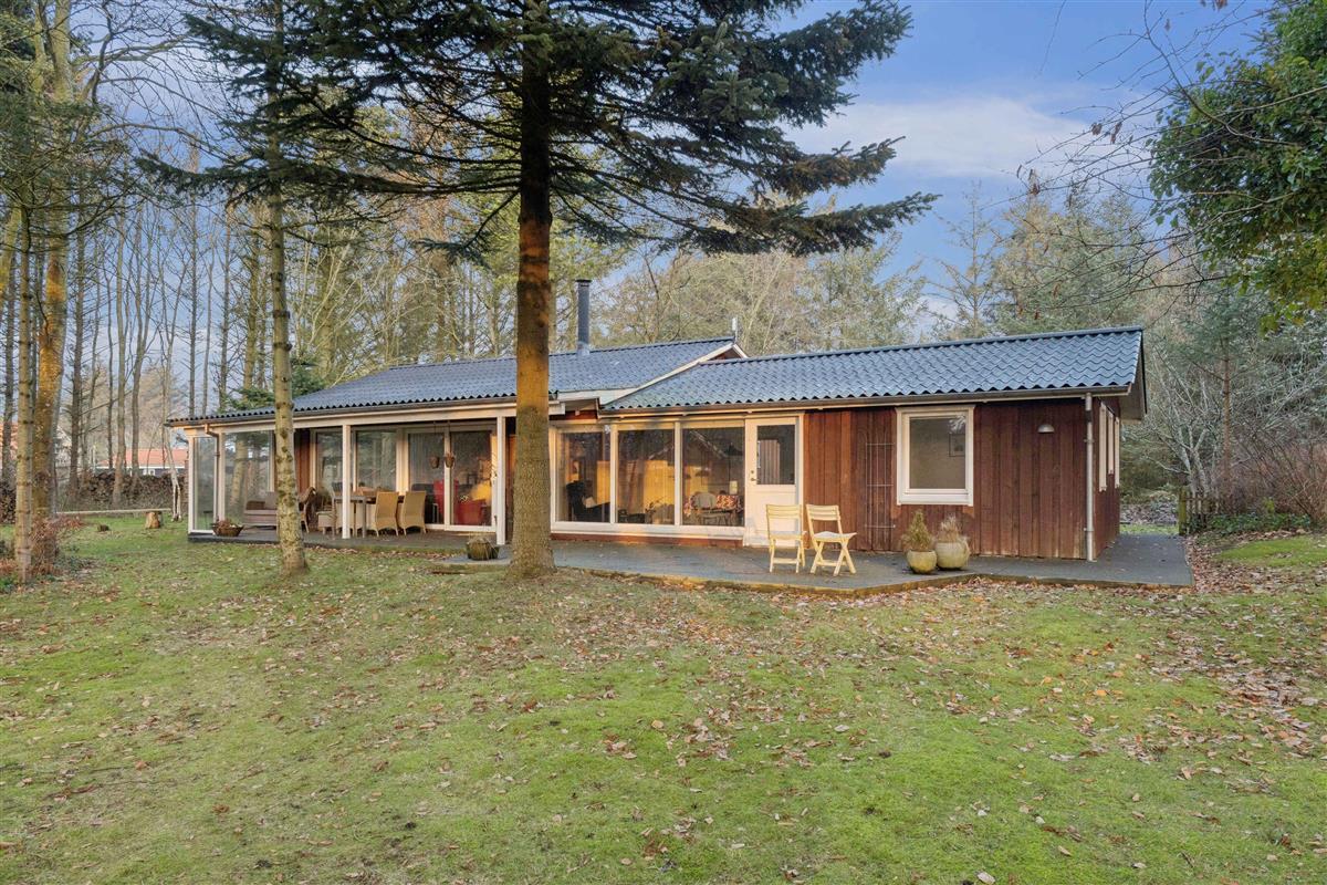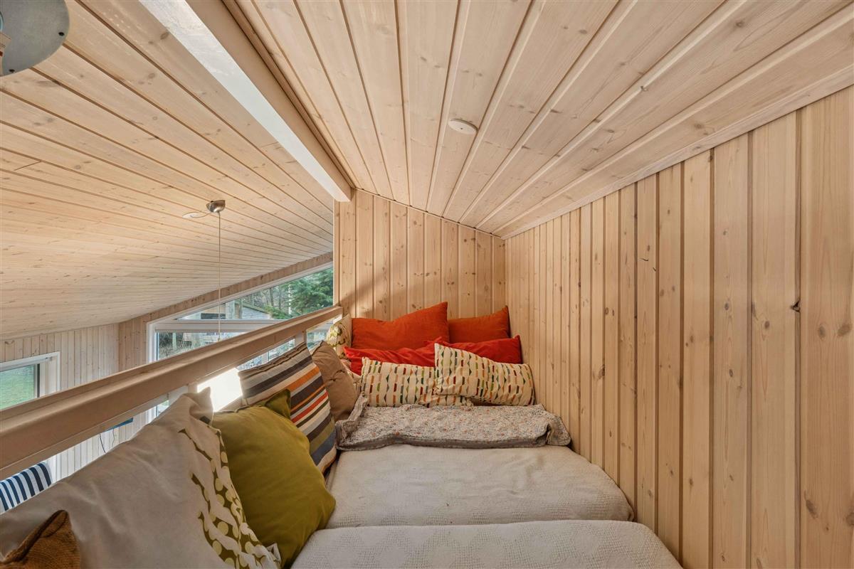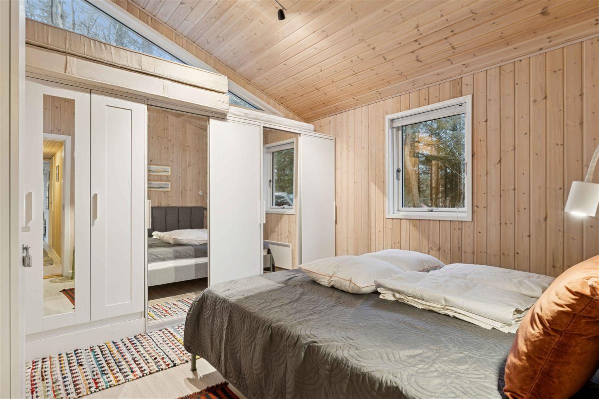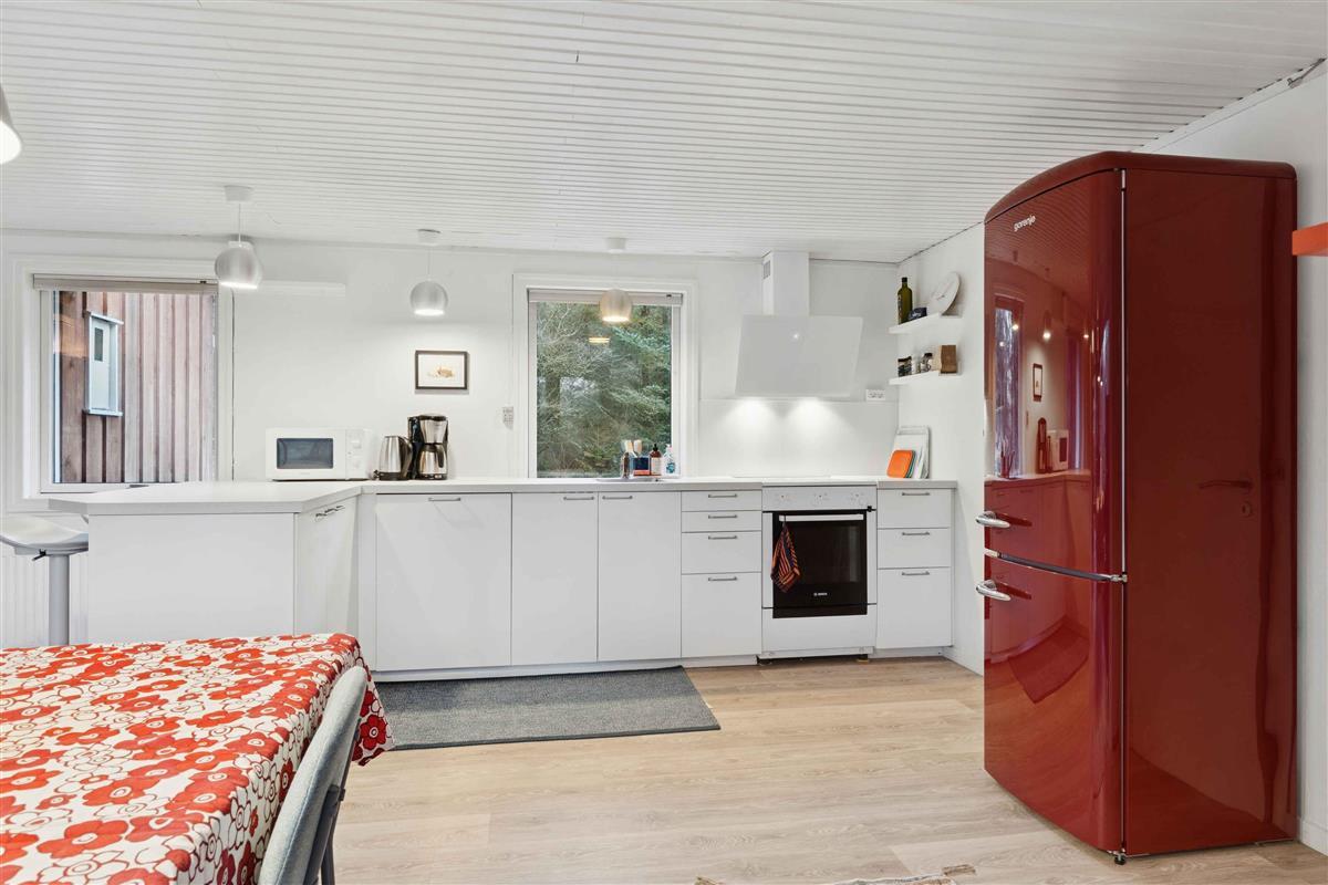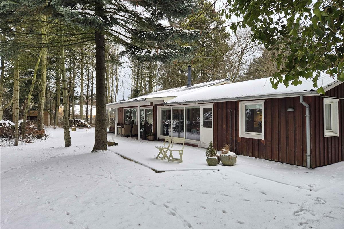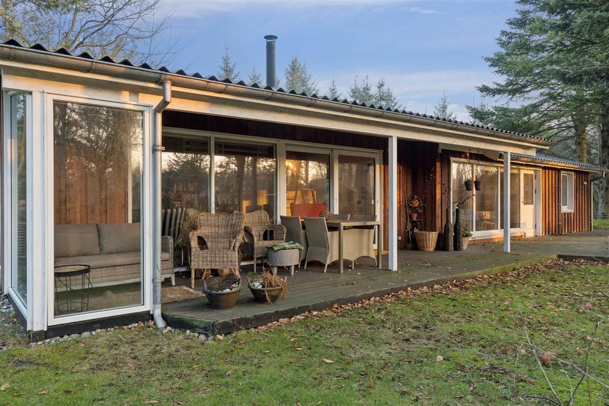 Het vakantiehuis ligt in Nørre Lyngby, 4 km ten noorden van Løkken, 10 km ten zuiden van Lønstrup en 25 km van Blokhus. Zo is er eenvoudig toegang tot verschillende gezellige plaatsen met tal van activiteiten, eetgelegenheden en sfeer. In Nørre Lyngby is het rustig en charmant, en minder dan 800 meter van de Noordzee. Het strand heeft fijn wit zand en prachtige steile duinen en voert de witte vlag, wat onder meer staat voor hoge waterkwaliteit. Het huis staat op een perceel van 2.250 m² met zowel grasvelden als bos. Op het terrein is tevens een shelter die vrij gebruikt mag worden. Het perceel ligt rustig en beschut aan een onverharde weg. Het huis van 116 m² bestaat uit een oorspronkelijke, gerenoveerde deel uit 1969 en een nieuw gebouwd deel uit 2014. Je komt binnen via de bijkeuken, waar zich aan één zijde een grote slaapkamer met tweepersoonsbed (180x200) en een badkamer bevinden, en aan de andere zijde de keuken/woonruimte. De keuken is uit 2023 en biedt plaats aan 6 personen. Vanuit de woonruimte is er toegang tot de ruime, gezellige woonkamer met houtkachel en zithoek. Er zijn boeken en spellen beschikbaar en toegang tot een knusse slaapvide. Vanuit zowel woonkamer als woonruimte kom je op een deels overdekt terras. Via de keuken is er toegang tot de tweede badkamer en de twee overige kleinere slaapkamers. Eén heeft twee bedden van 70x190 en de andere twee boxmatrassen van 80x200.
