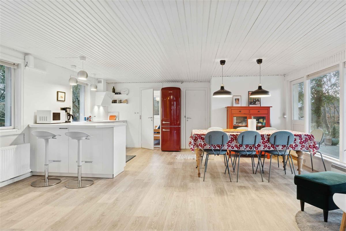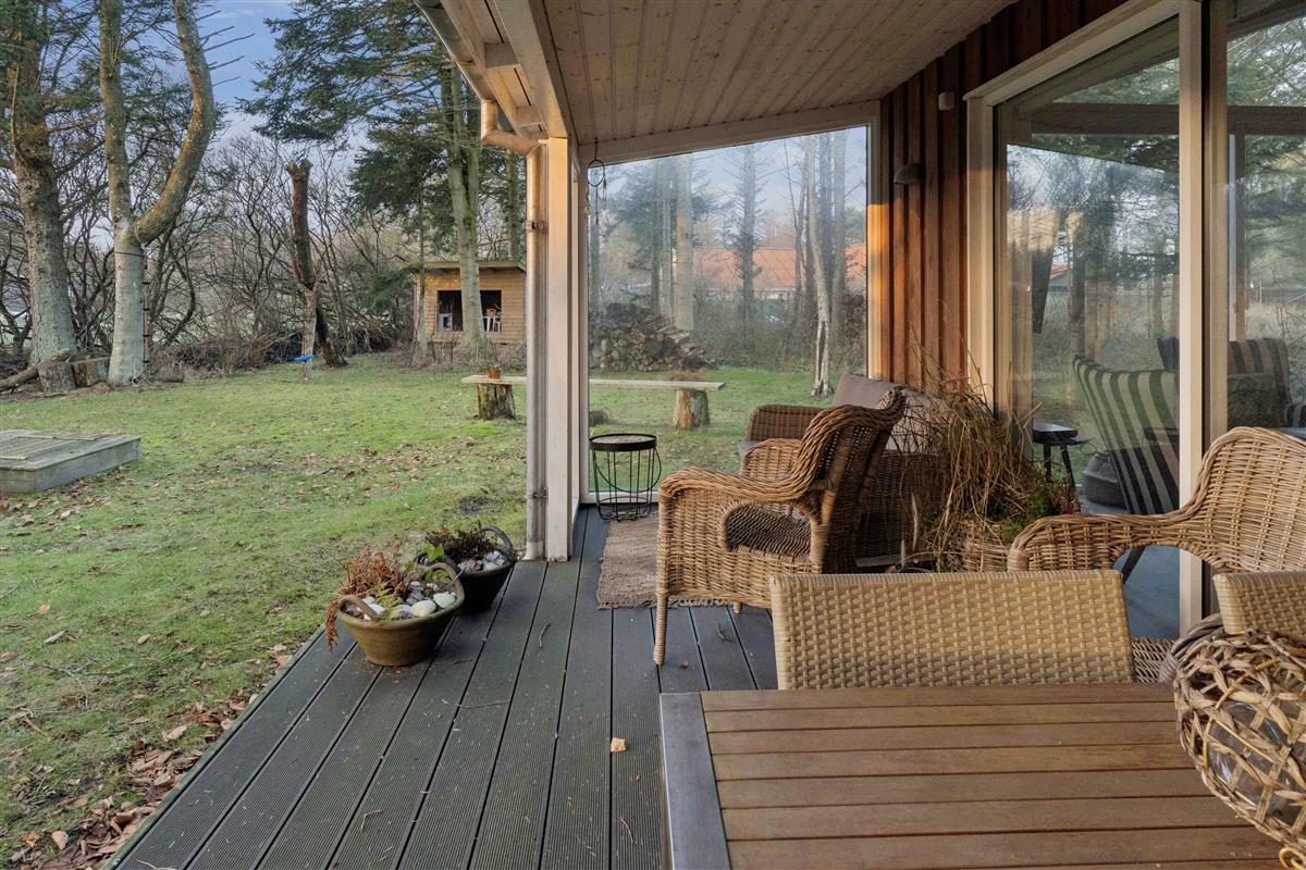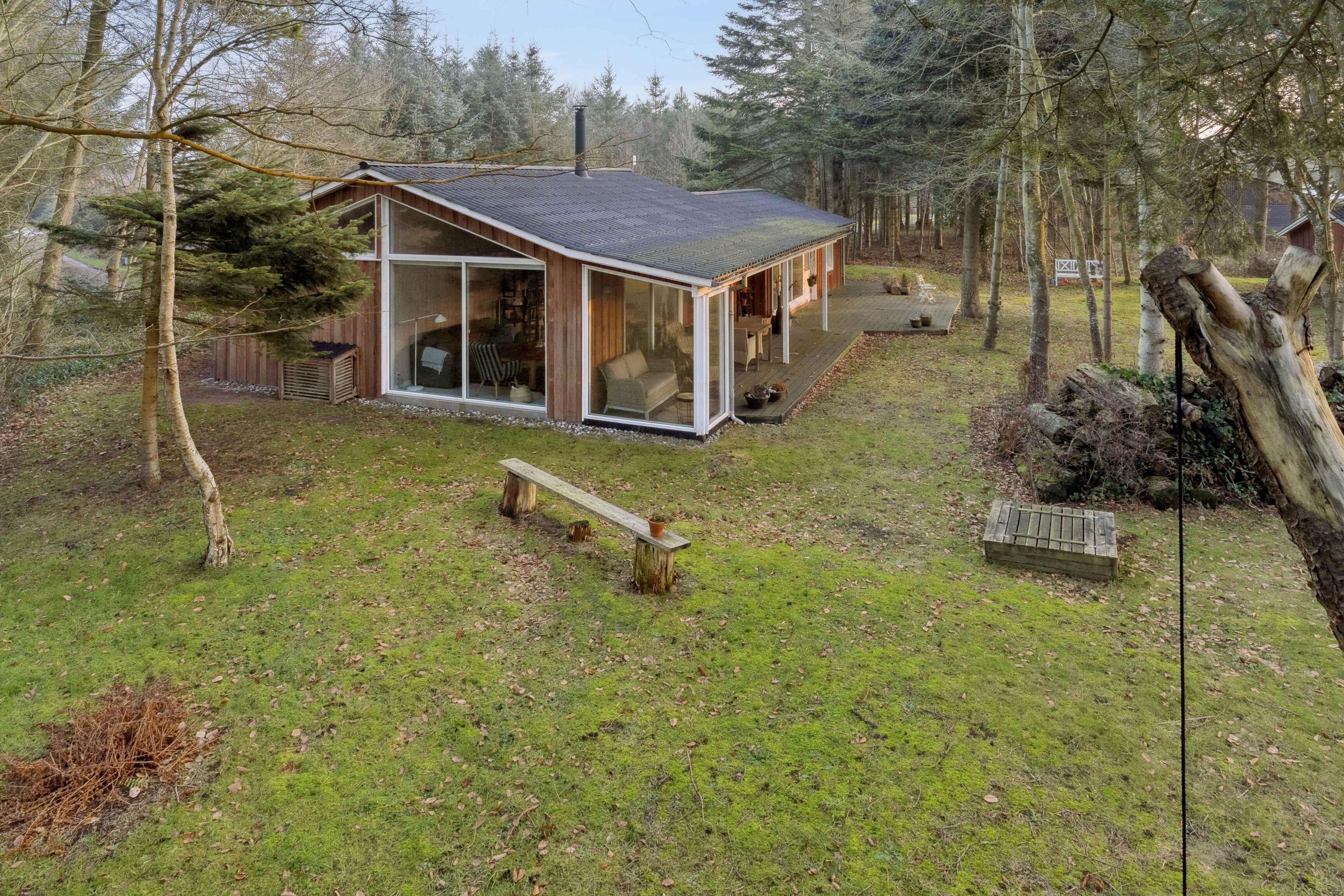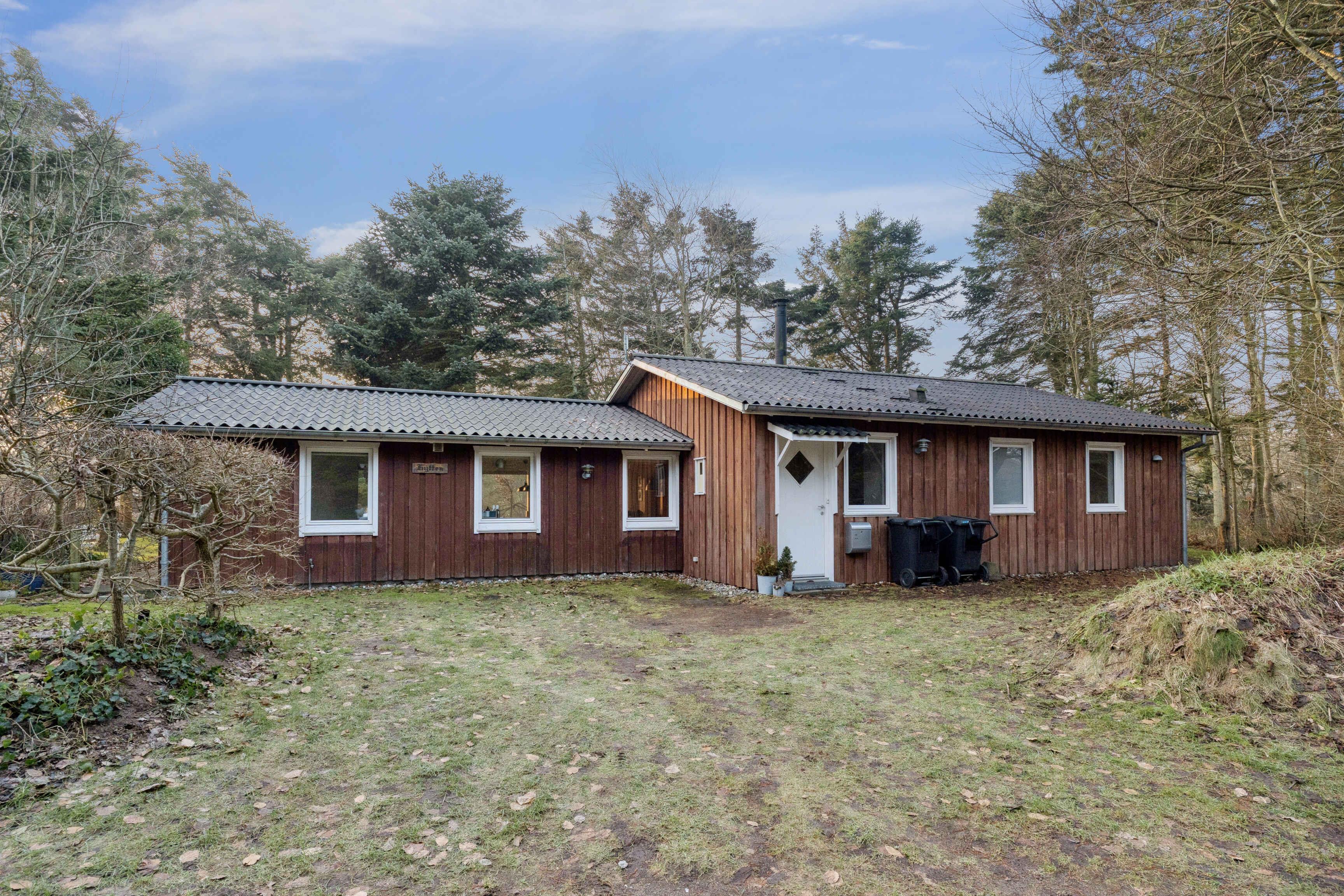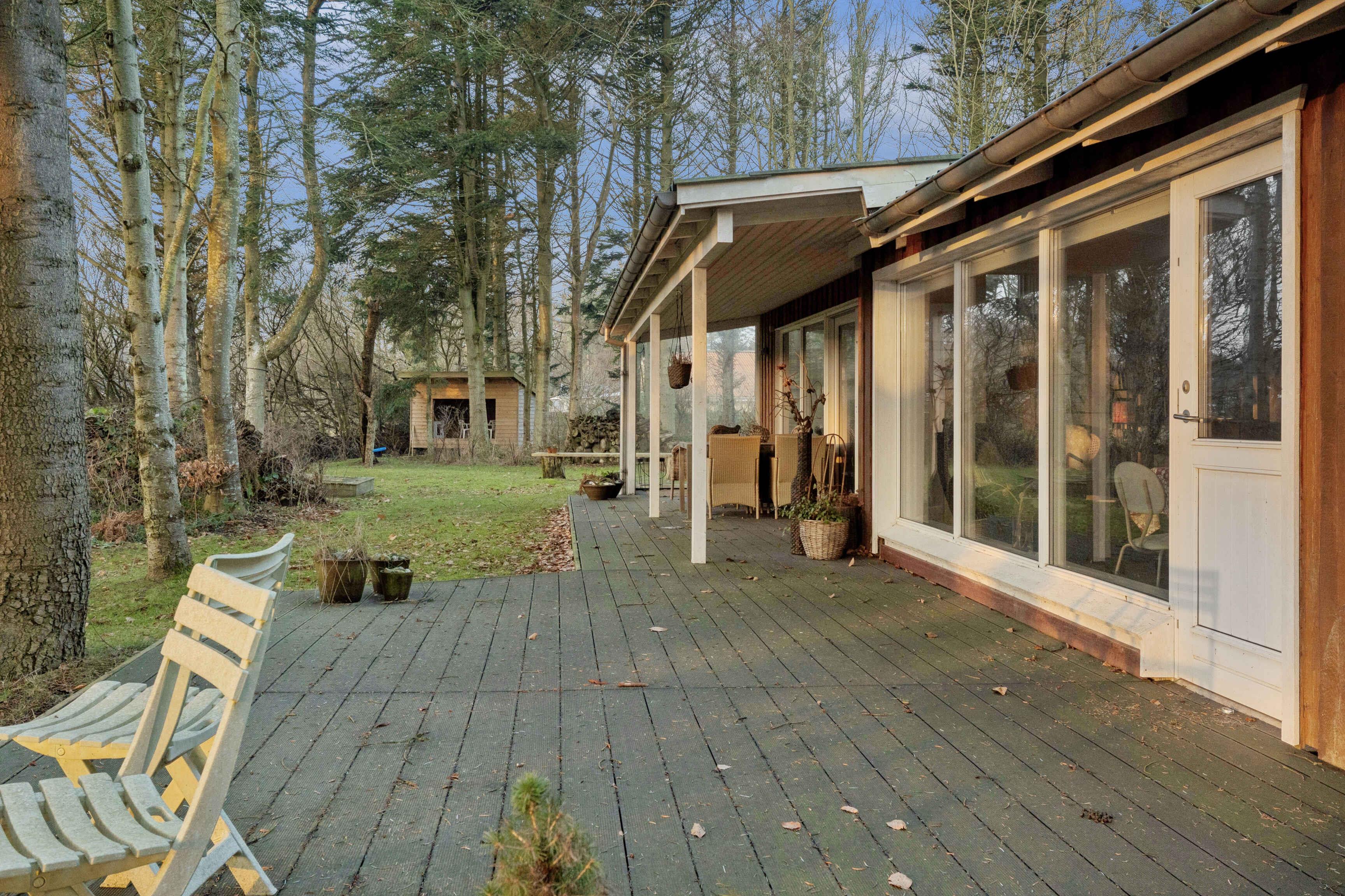Het vakantiehuis ligt in Nørre Lyngby, 4 km ten noorden van Løkken, 10 km ten zuiden van Lønstrup en 25 km van Blokhus. Zo is er eenvoudig toegang tot verschillende gezellige plaatsen met tal van activiteiten, eetgelegenheden en sfeer. In Nørre Lyngby is het rustig en charmant, en minder dan 800 meter van de Noordzee. Het strand heeft fijn wit zand en prachtige steile duinen en voert de witte vlag, wat onder meer staat voor hoge waterkwaliteit. Het huis staat op een perceel van 2.250 m² met zowel grasvelden als bos. Op het terrein is tevens een shelter die vrij gebruikt mag worden. Het perceel ligt rustig en beschut aan een onverharde weg. Het huis van 116 m² bestaat uit een oorspronkelijke, gerenoveerde deel uit 1969 en een nieuw gebouwd deel uit 2014. Je komt binnen via de bijkeuken, waar zich aan één zijde een grote slaapkamer met tweepersoonsbed (180x200) en een badkamer bevinden, en aan de andere zijde de keuken/woonruimte. De keuken is uit 2023 en biedt plaats aan 6 personen. Vanuit de woonruimte is er toegang tot de ruime, gezellige woonkamer met houtkachel en zithoek. Er zijn boeken en spellen beschikbaar en toegang tot een knusse slaapvide. Vanuit zowel woonkamer als woonruimte kom je op een deels overdekt terras. Via de keuken is er toegang tot de tweede badkamer en de twee overige kleinere slaapkamers. Eén heeft twee bedden van 70x190 en de andere twee boxmatrassen van 80x200.