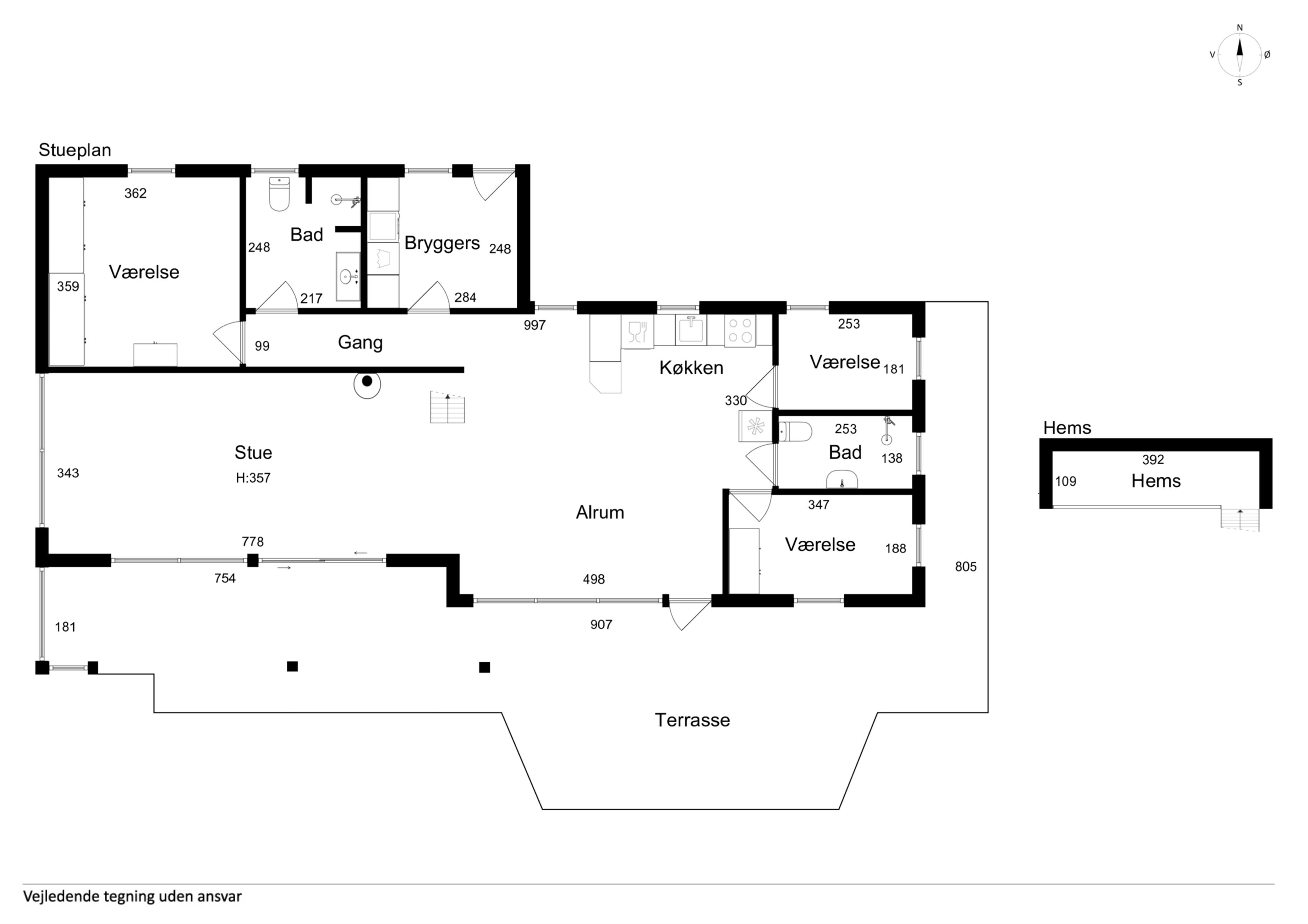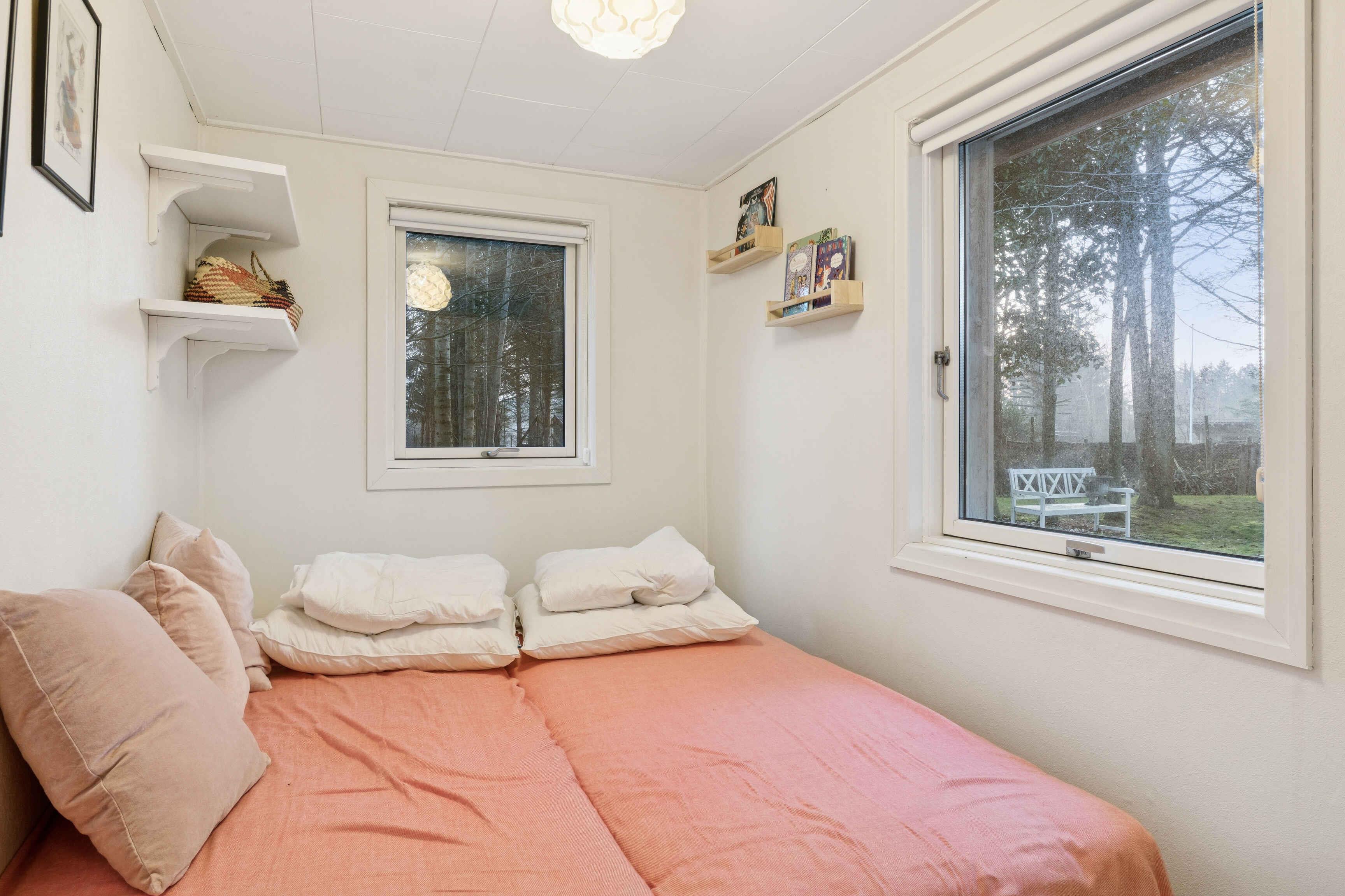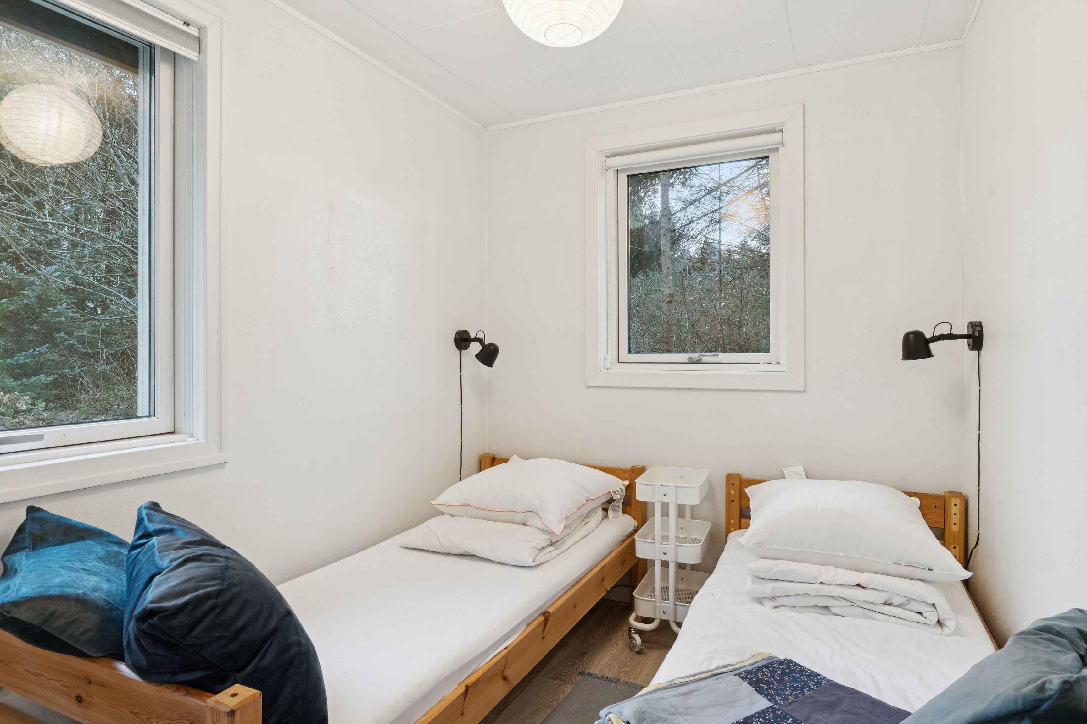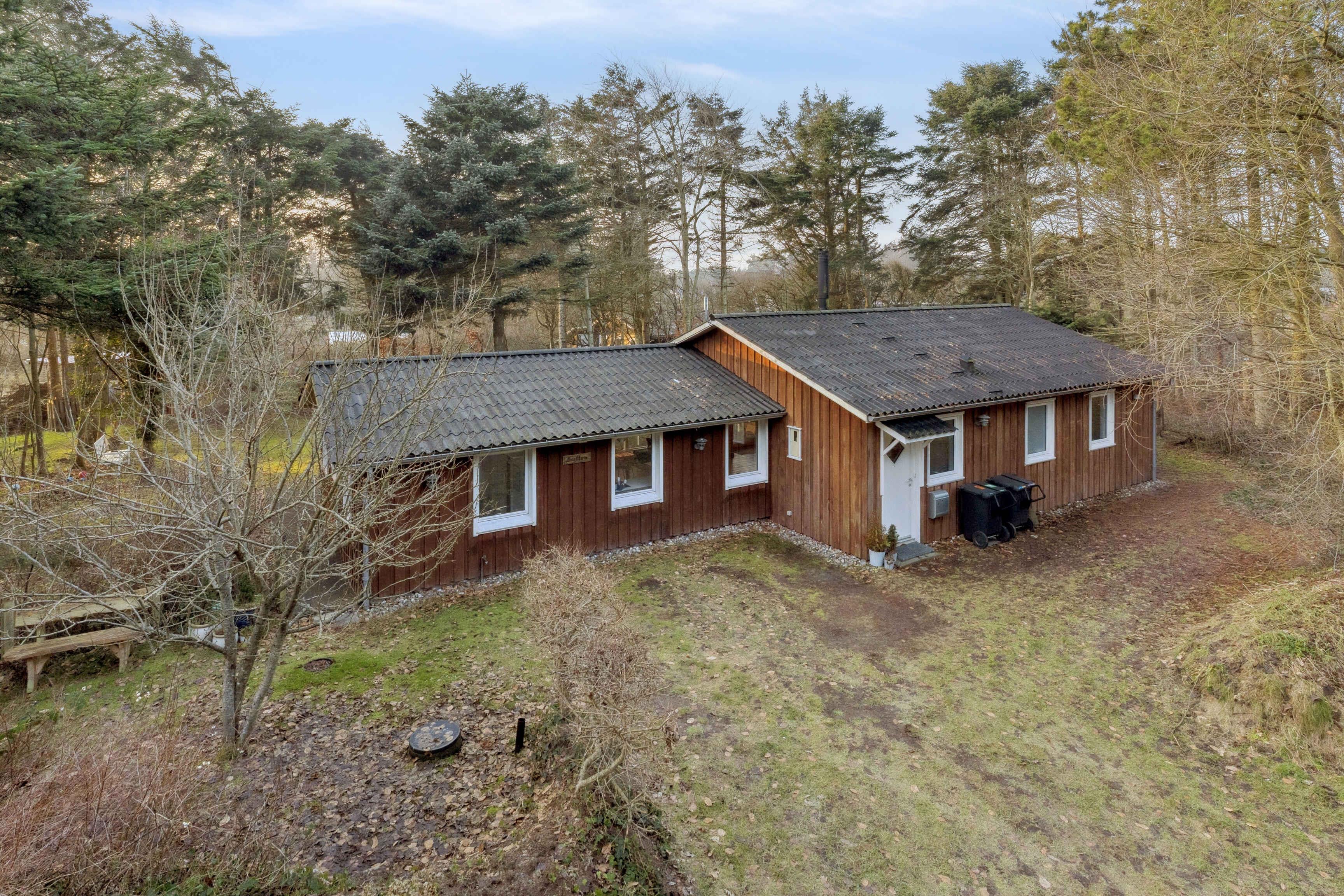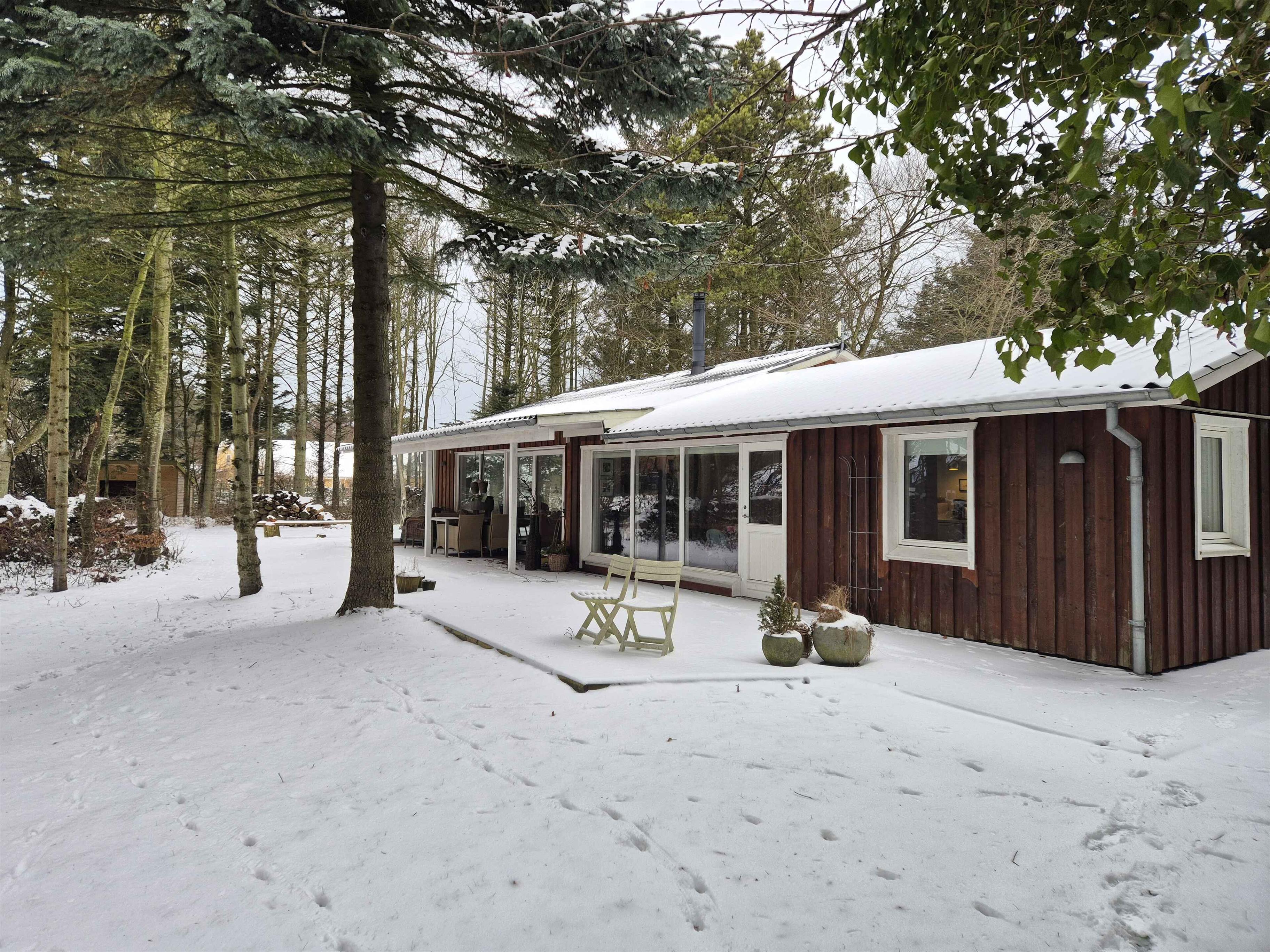 Het vakantiehuis ligt in Nørre Lyngby, 4 km ten noorden van Løkken, 10 km ten zuiden van Lønstrup en 25 km van Blokhus. Zo is er eenvoudig toegang tot verschillende gezellige plaatsen met tal van activiteiten, eetgelegenheden en sfeer. In Nørre Lyngby is het rustig en charmant, en minder dan 800 meter van de Noordzee. Het strand heeft fijn wit zand en prachtige steile duinen en voert de witte vlag, wat onder meer staat voor hoge waterkwaliteit. Het huis staat op een perceel van 2.250 m² met zowel grasvelden als bos. Op het terrein is tevens een shelter die vrij gebruikt mag worden. Het perceel ligt rustig en beschut aan een onverharde weg. Het huis van 116 m² bestaat uit een oorspronkelijke, gerenoveerde deel uit 1969 en een nieuw gebouwd deel uit 2014. Je komt binnen via de bijkeuken, waar zich aan één zijde een grote slaapkamer met tweepersoonsbed (180x200) en een badkamer bevinden, en aan de andere zijde de keuken/woonruimte. De keuken is uit 2023 en biedt plaats aan 6 personen. Vanuit de woonruimte is er toegang tot de ruime, gezellige woonkamer met houtkachel en zithoek. Er zijn boeken en spellen beschikbaar en toegang tot een knusse slaapvide. Vanuit zowel woonkamer als woonruimte kom je op een deels overdekt terras. Via de keuken is er toegang tot de tweede badkamer en de twee overige kleinere slaapkamers. Eén heeft twee bedden van 70x190 en de andere twee boxmatrassen van 80x200.