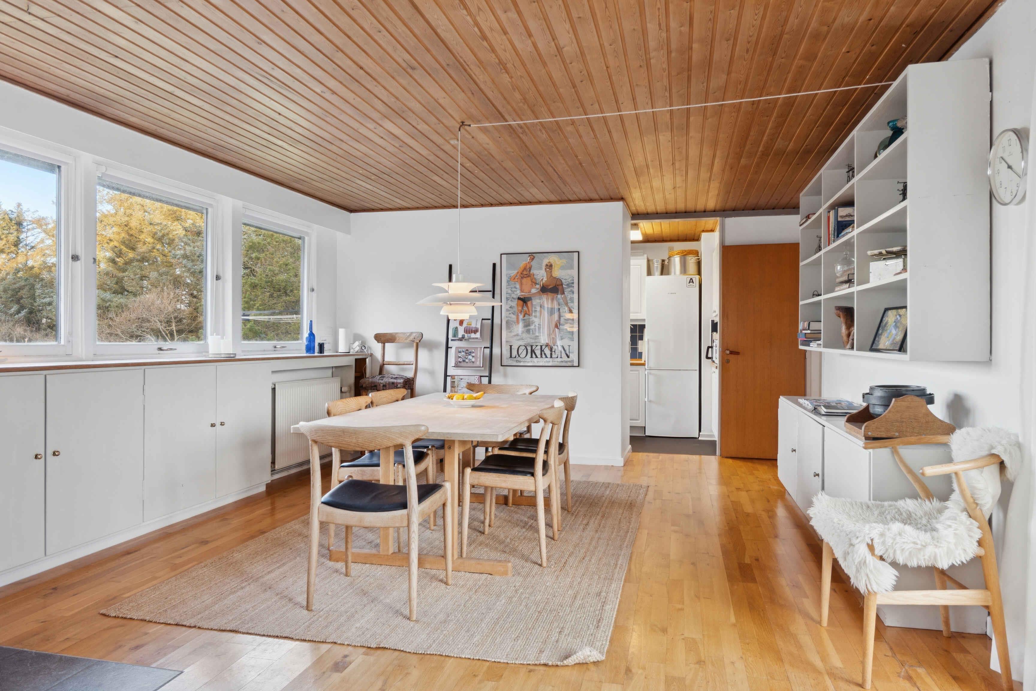 Een gezellig familiesommerhuis met persoonlijke charme, gelegen op een groot, beschut natuurperceel in een prachtig gebied dicht bij de Noordzee en een heerlijke badstrand. Hier hoor je het ruisen van de zee, de wind in de sparren en kun je niet anders dan ontspannen. Het huis heeft een open indeling met directe toegang tot de keuken en gemakkelijke toegang tot de buitenruimtes. Een ideale plek voor een grote familie of twee gezinnen die samen vakantie willen vieren in rust en gezelligheid. De keuken is uitgerust met een koelkast met 50 liter vriesvak, 4 keramische kookplaten, heteluchtoven, magnetron, airfryer en vaatwasser. Het zomerhuis heeft 4 slaapkamers met slaapplaatsen voor 8 personen en een babybed. De bedden zijn verdeeld als volgt: 2 slaapplaatsen in een tweepersoonsbed, 6 slaapplaatsen in eenpersoonsbedden. Twee van deze slaapplaatsen bevinden zich in een bijgebouw. Er is een badkamer met douche, toilet en zitbad. Het huis is 121 m² groot, gebouwd in 1969 en gerenoveerd in 1995. De woning beschikt over een energiezuinige warmtepomp. Er is een wasmachine en mogelijkheid om kleding zowel binnen als buiten te drogen. Daarnaast is er een houtkachel aanwezig. Voor de kleintjes is er een kinderstoel. Het huis ligt op een 4422 m² groot natuurperceel, slechts 375 meter van de zee. Er is een terras van 27 m² met beschutting tegen de westenwind en ruimte om ’s zomers buiten te eten. Een barbecue is beschikbaar. Bij het terras is een zandbak en volop mogelijkheden voor grote en kleine ontdekkingsreizigers om de natuur te verkennen. Er is een laadpunt voor elektrische auto's en voldoende parkeerruimte op de grond. De dichtstbijzijnde winkel ligt op 1200 meter, de ijssalon op 400 meter. De dichtstbijzijnde steden zijn Løkken en Saltum, en Aalborg ligt op slechts 40 km afstand. Eén huisdier is toegestaan.