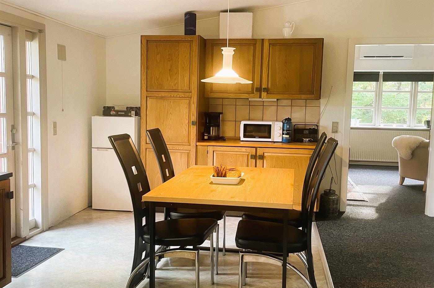 De keuken is uitgerust met koelkast Er is 4 elektrische kookplaten, heteluchtoven, magnetron en vaatwasser.