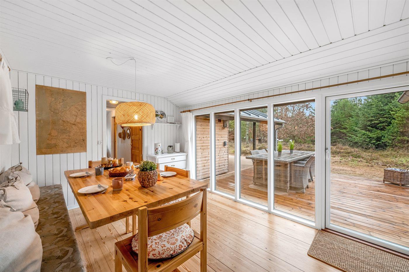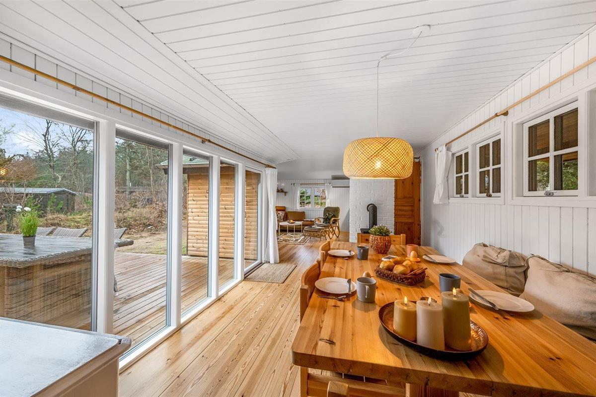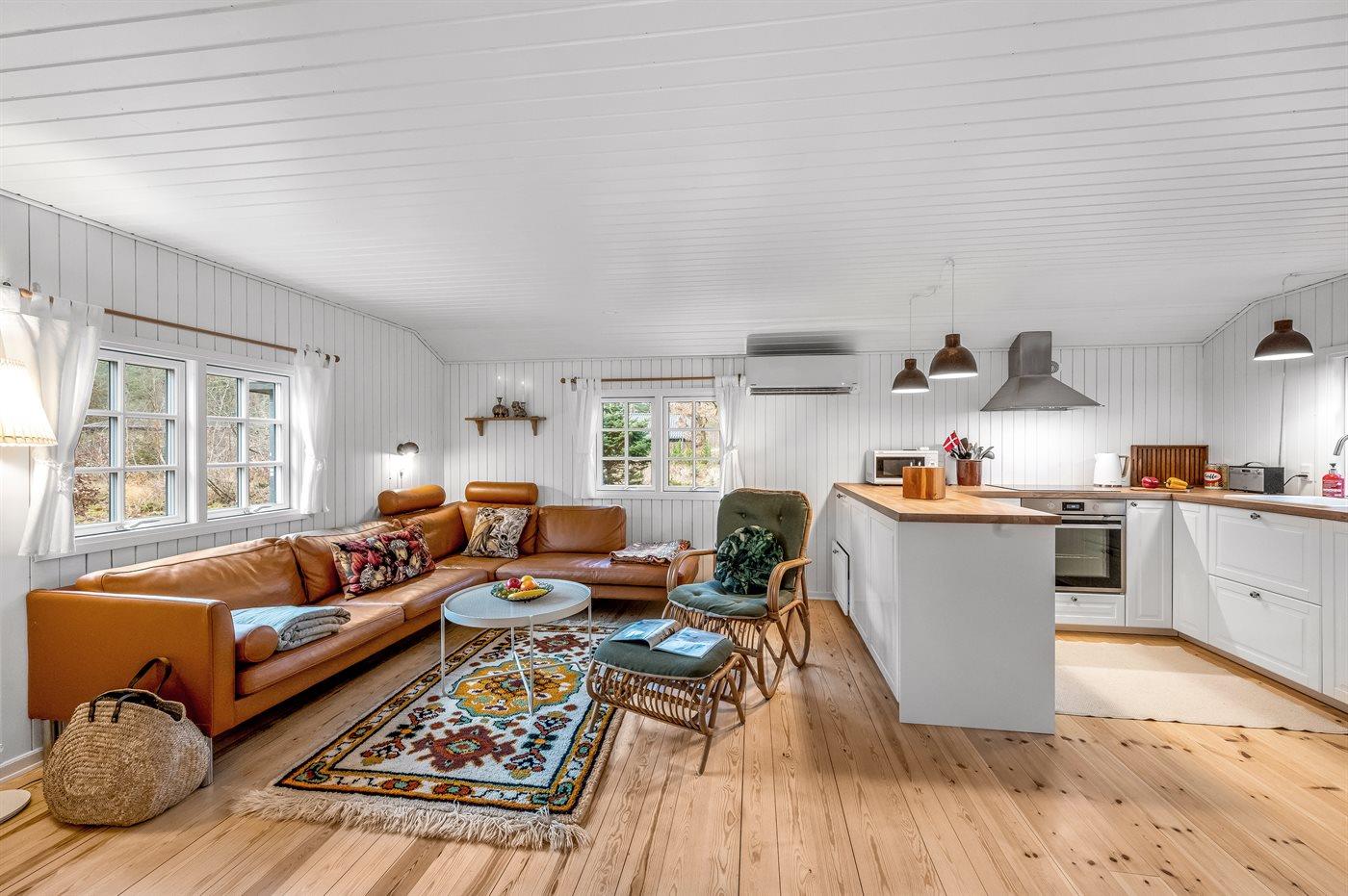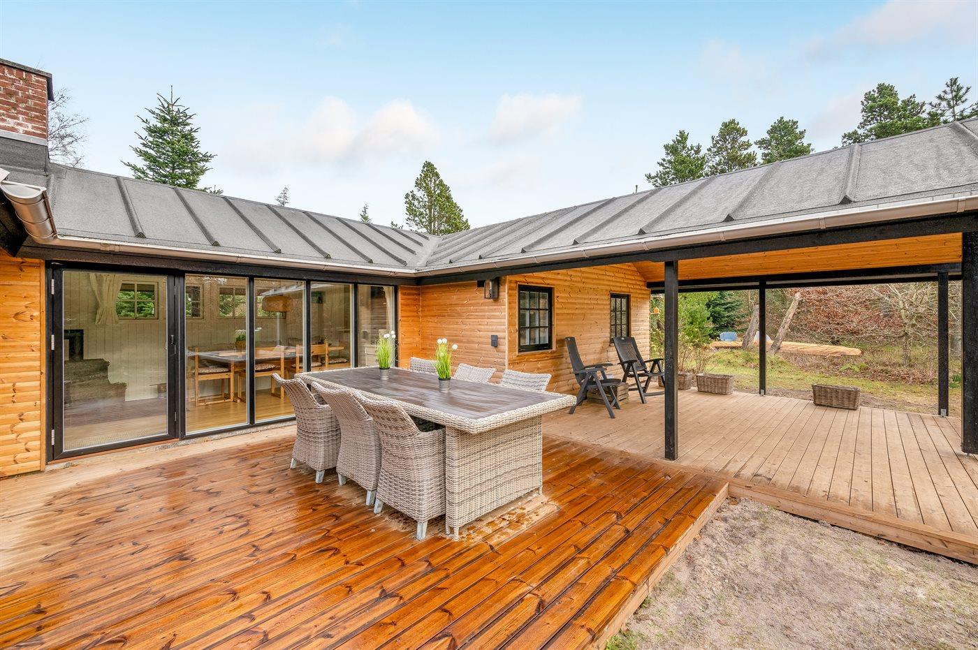 De vakantiewoning is gelegen op een 2149 m² groot natuural grond. Afstand tot de zee 3000 m. Afstand tot de fjord 2000 m. Dichtstbijzijnde winkel 4000 m. Bij de vakantiewoning hoort terras. Bij de vakantiewoning hoort terras. Daarnaast is er een overdekt terras. Gereedschapsruimte. Buitensauna. Buitendouche. Parkeerplaats bij het huis.