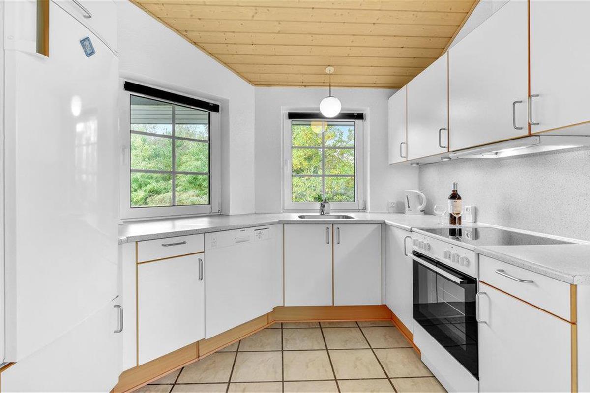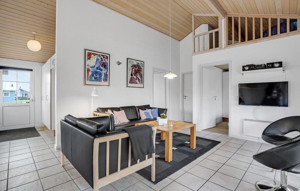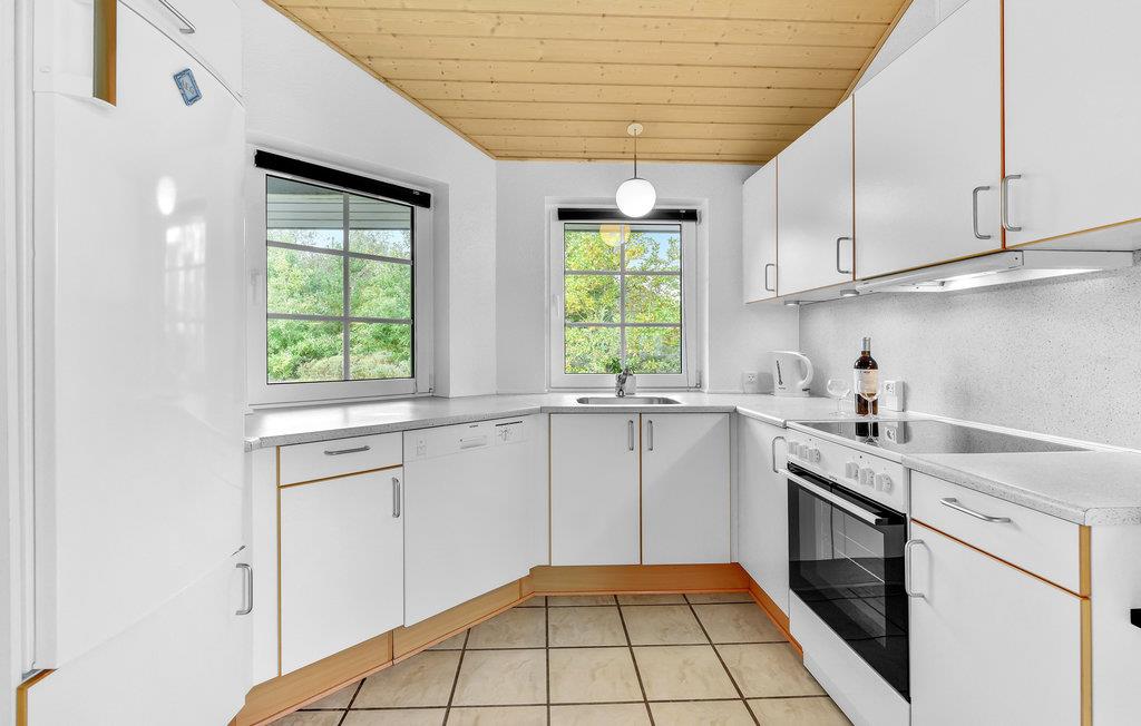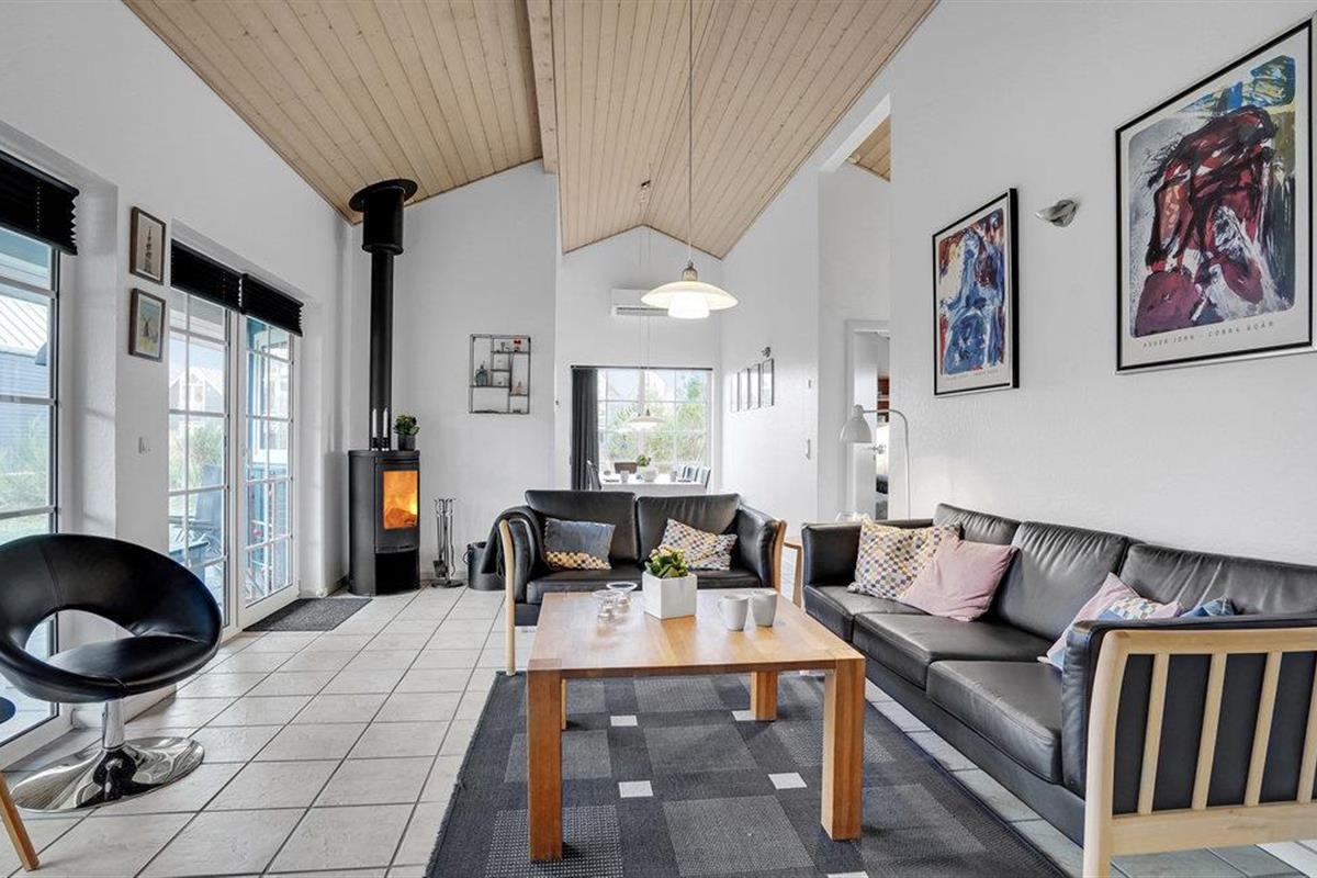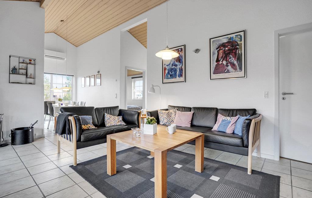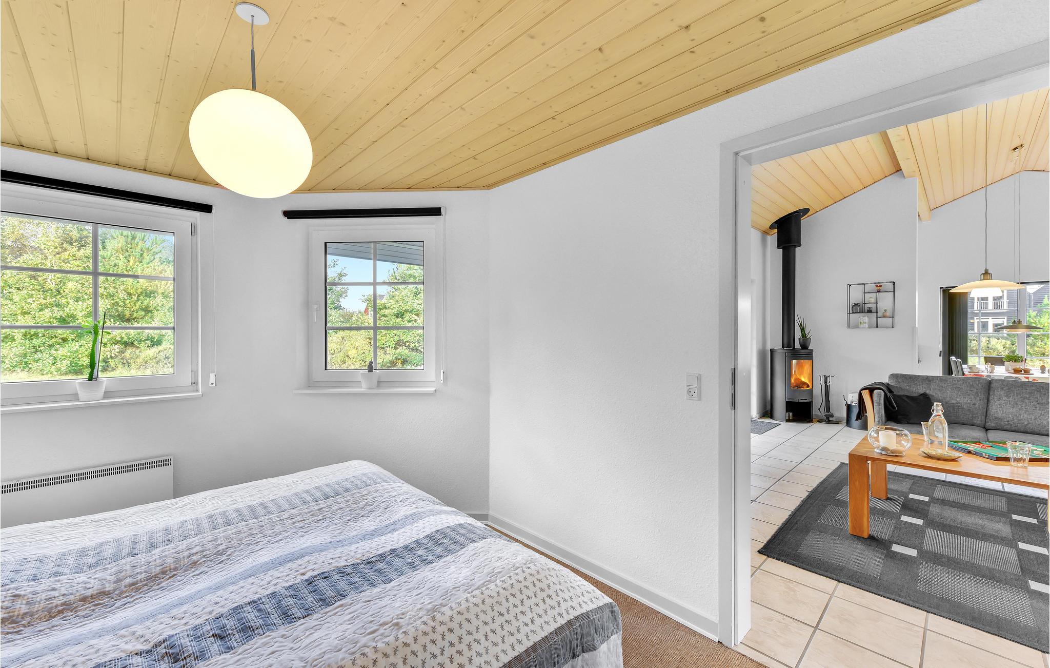 Geniet van dit ruime, lichte vakantiehuis met hoge plafonds en tuin in Lønne, Denemarken.