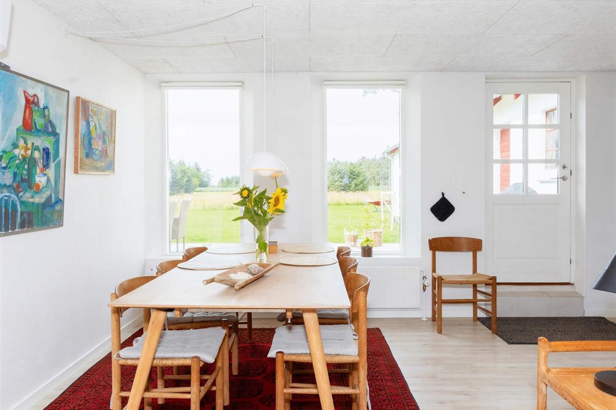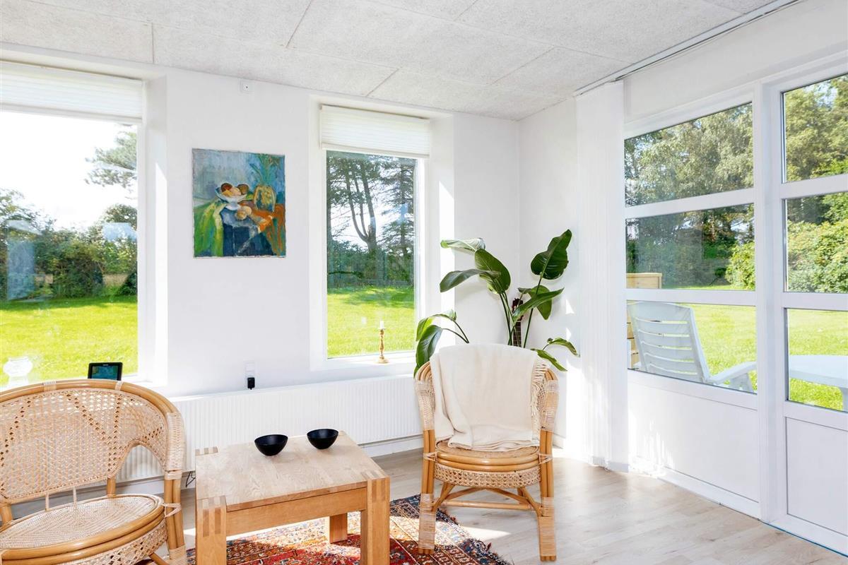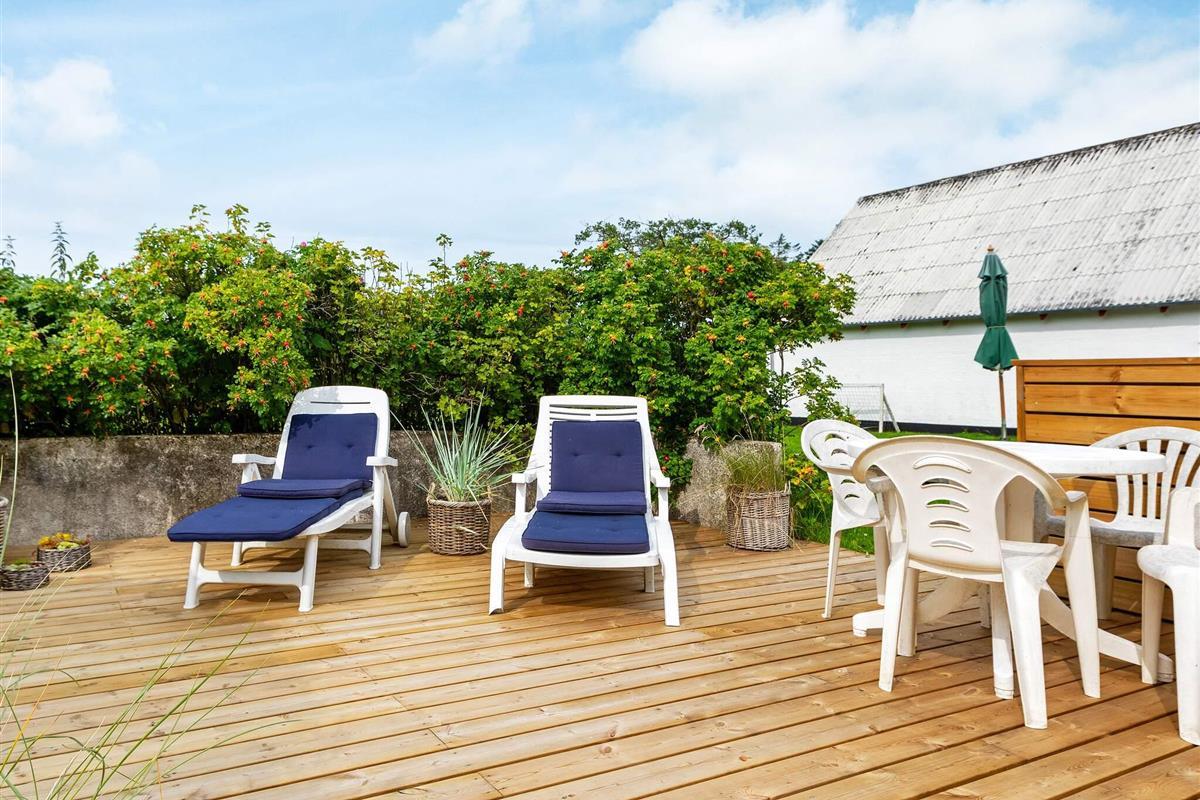 Im Außenbereich schöne Terrasse mit Ausblick zu Wiesen und Feldern der Umgebung. Der Ferienort Lønstrup mit Einkaufsläden und Gaststätten ist per Fahrrad schnell erreichbar.