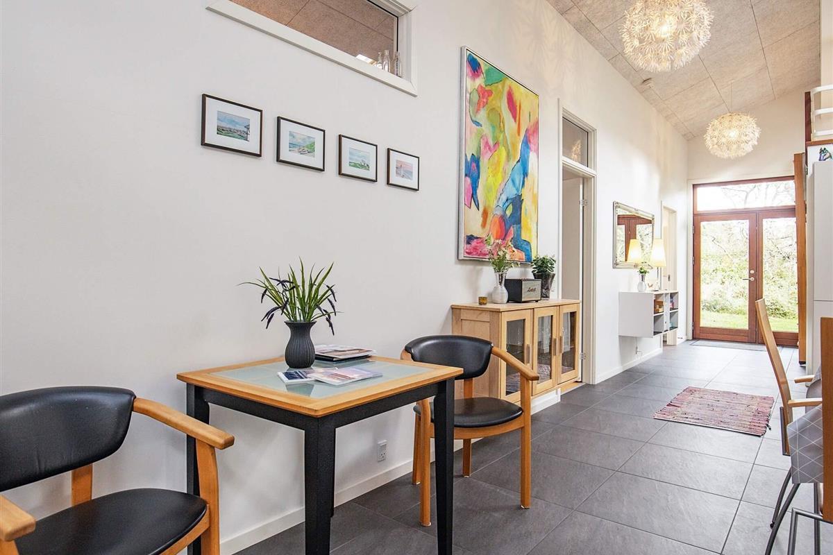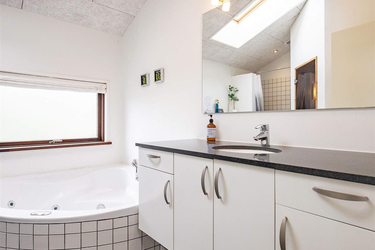 Das Ferienhaus bietet Platz für bis zu 10 Personen und verfügt über vier Schlafzimmer – drei mit Doppelbetten und eines mit zwei Einzelbetten – sowie zwei zusätzliche Schlafplätze auf dem offenen Dachboden (Hems). Darüber hinaus gibt es zwei schöne Badezimmer, von denen das größere mit Sauna und Whirlpool ausgestattet ist – perfekt zum Entspannen und Genießen des Urlaubs.