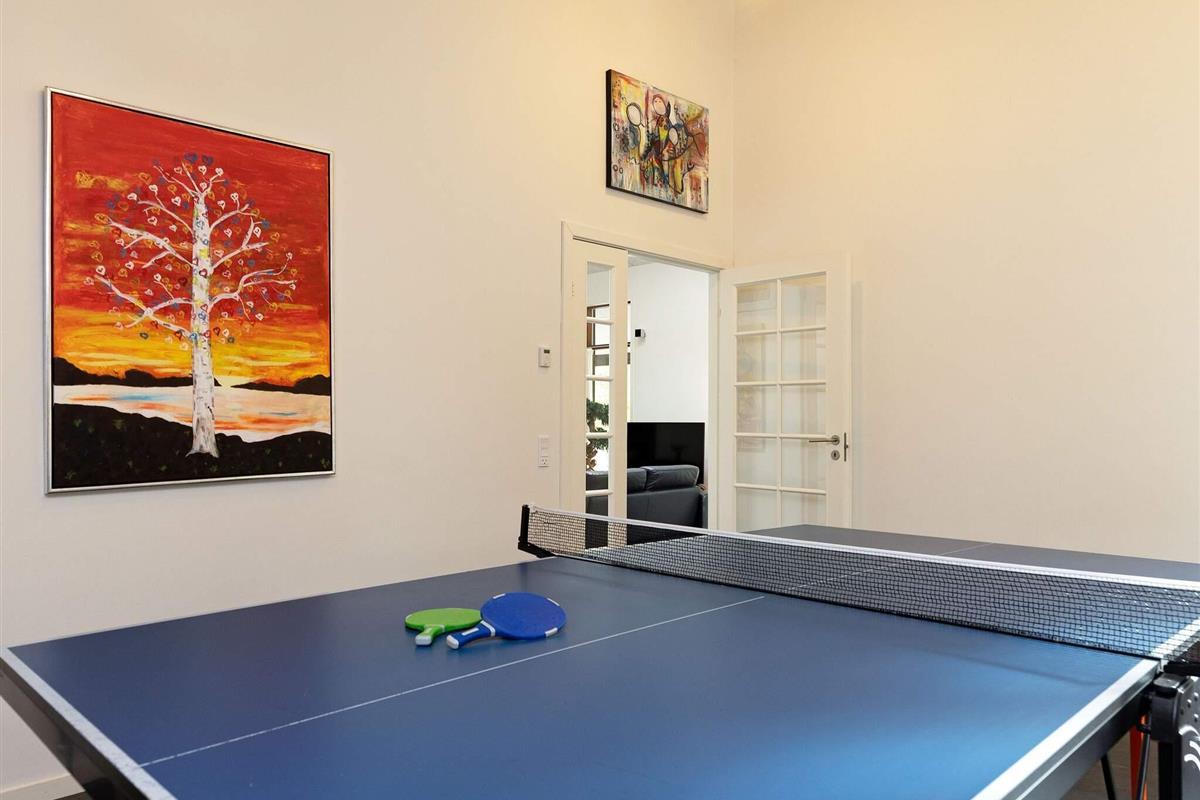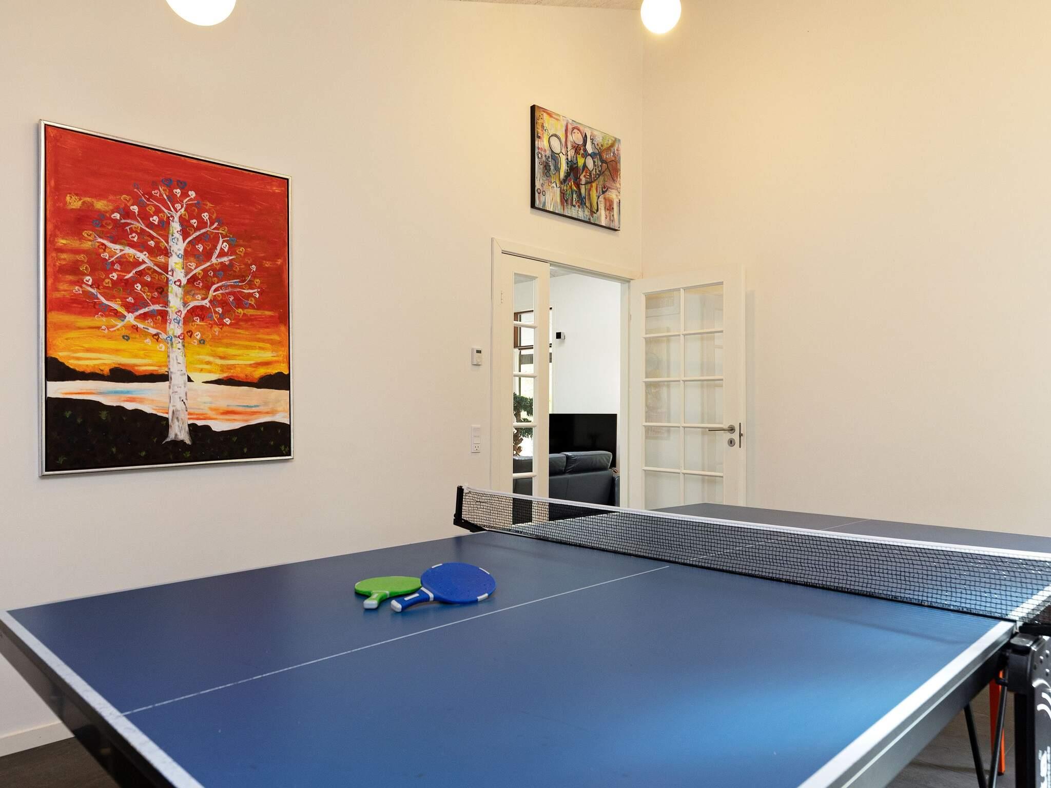 Das Ferienhaus verfügt über einen gemütlichen Aktivitätsraum mit Tischtennis, Dart und Bobspiel – ideal für Kinder und Erwachsene. Das Herz des Hauses bildet die großzügige Wohnküche und das einladende Wohnzimmer, die durch einen eingebauten Kaminofen getrennt sind, der beiden Räumen Wärme und eine behagliche Atmosphäre verleiht.