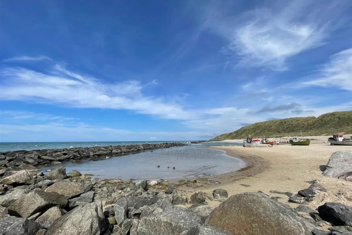 Dieses attraktive Ferienhaus in Lønstrup liegt nur 200 Meter von der Nordsee entfernt und ist wunderschön gelegen in einem herrlichen Gebiet mit Wald und Dünen auf einem großen, ungestörten Naturgrundstück.