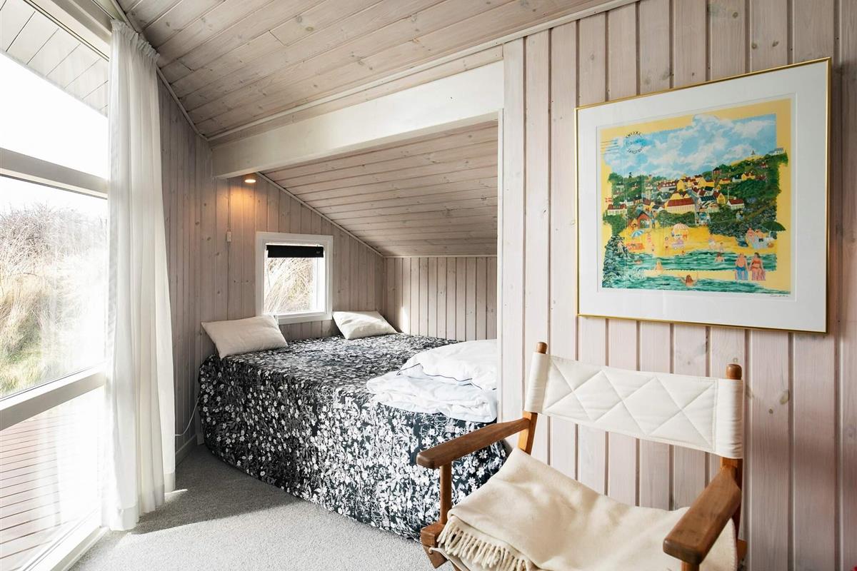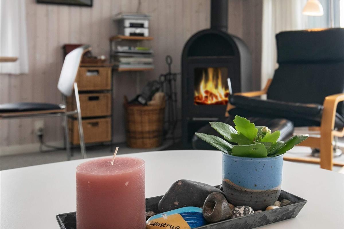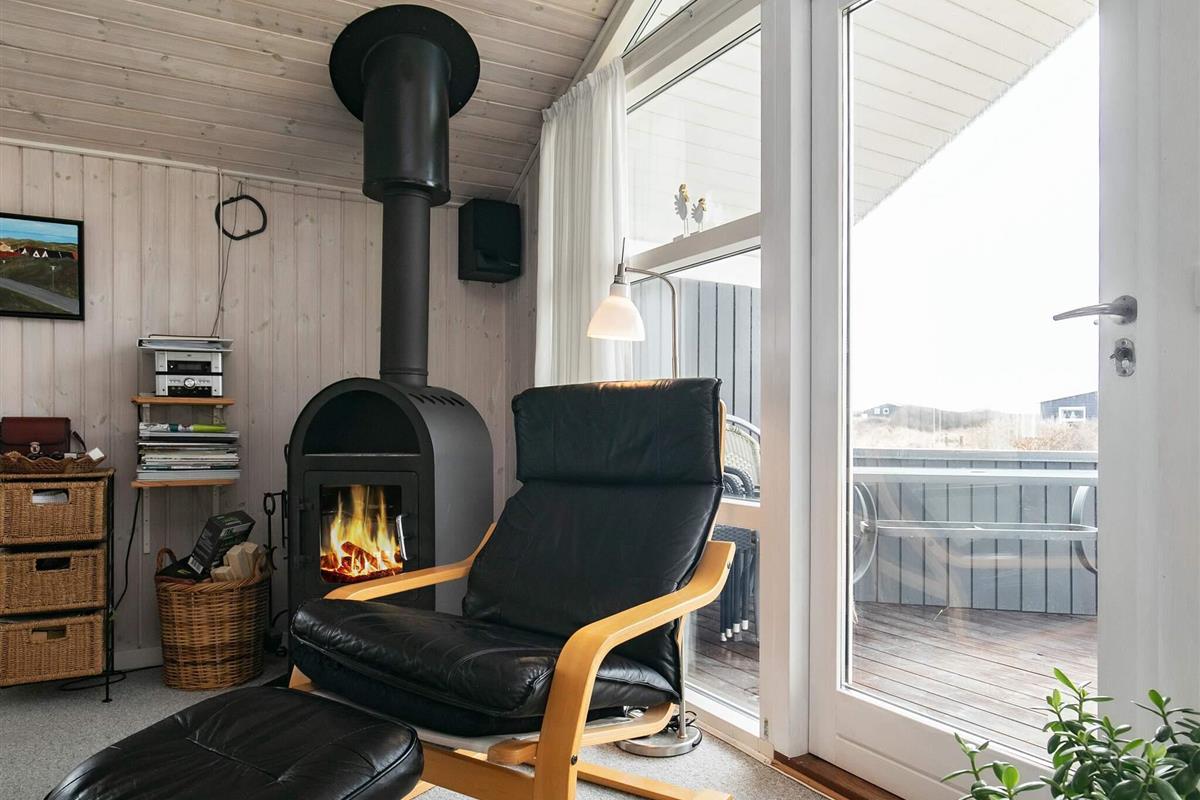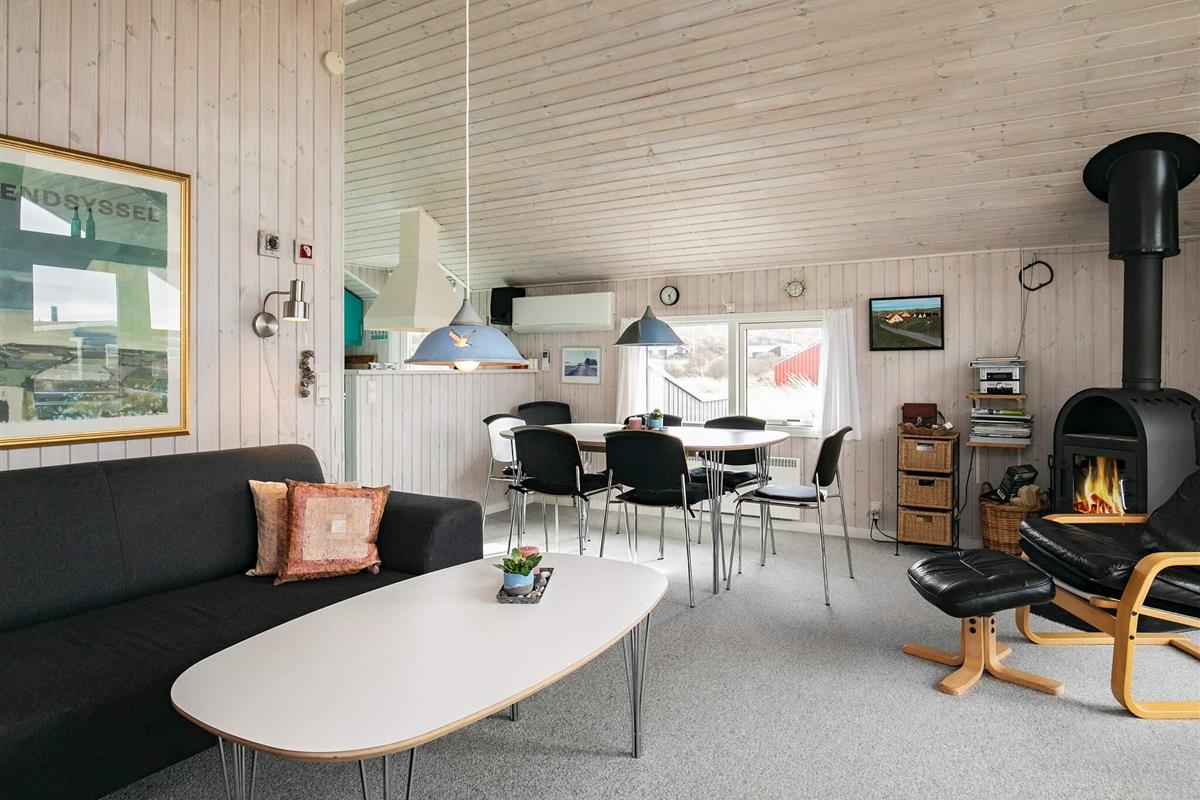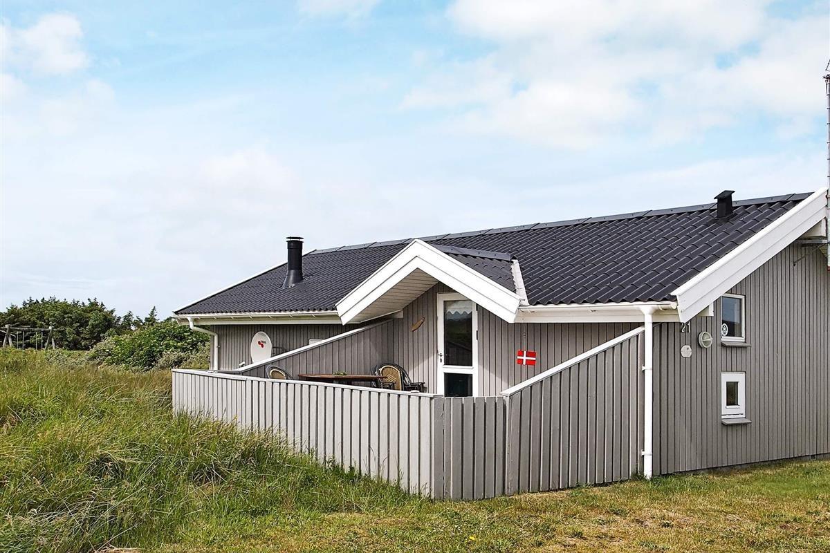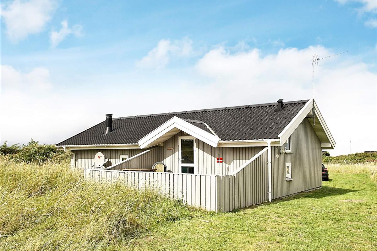 Nur ca. 100 m vom Meer, auf einem hügligen Grundstück liegt dieses gepflegte Ferienhaus. Von einigen Fenstern aus kann man das Meer so gerade noch sehen, während es auf dem Grundstück einen erhöhten Punkt gibt, von dem aus sich ein schöner Meerblick bietet. Küchen-Wohnbereich, zwei Schlafzimmer, ein Alkoven und ein Bad mit angenehmer Fußbodenheizung erwarten Sie im Haus. Es ist geschmackvoll im dänischen Ferienhausstil eingerichtet, so dass es sich die Gäste schön gemütlich machen können. Ein Holzofen verbreitet angenehme Wärme. Die Südwest-Terrasse bietet guten Windschutz, und die Südost-Terrasse ist überdacht.