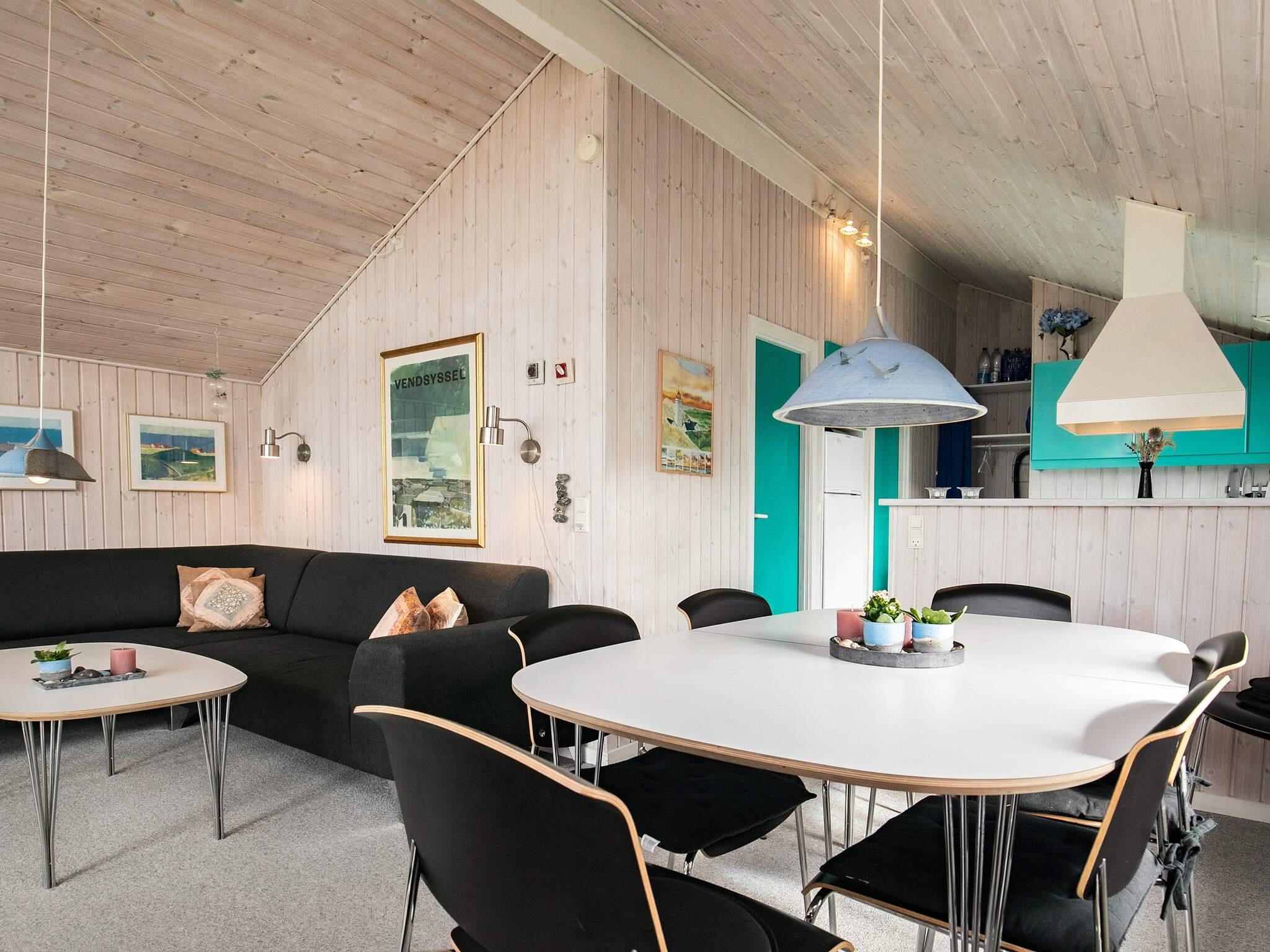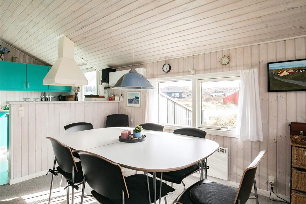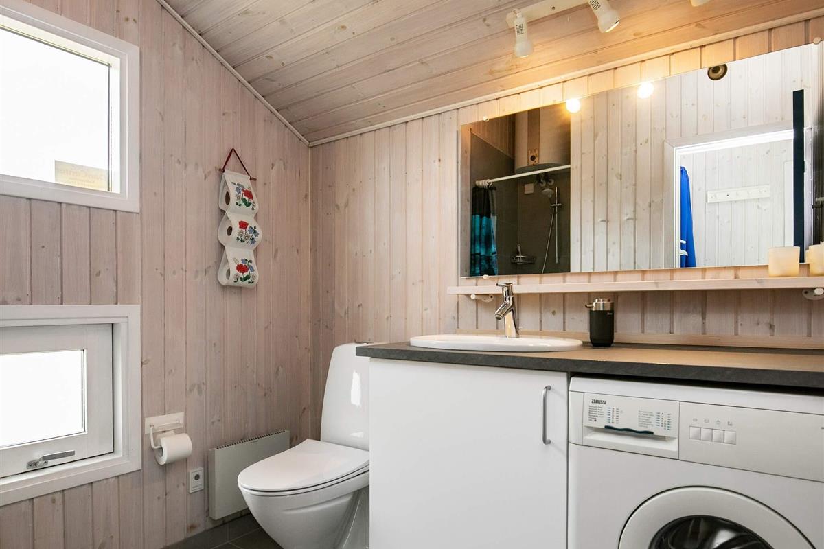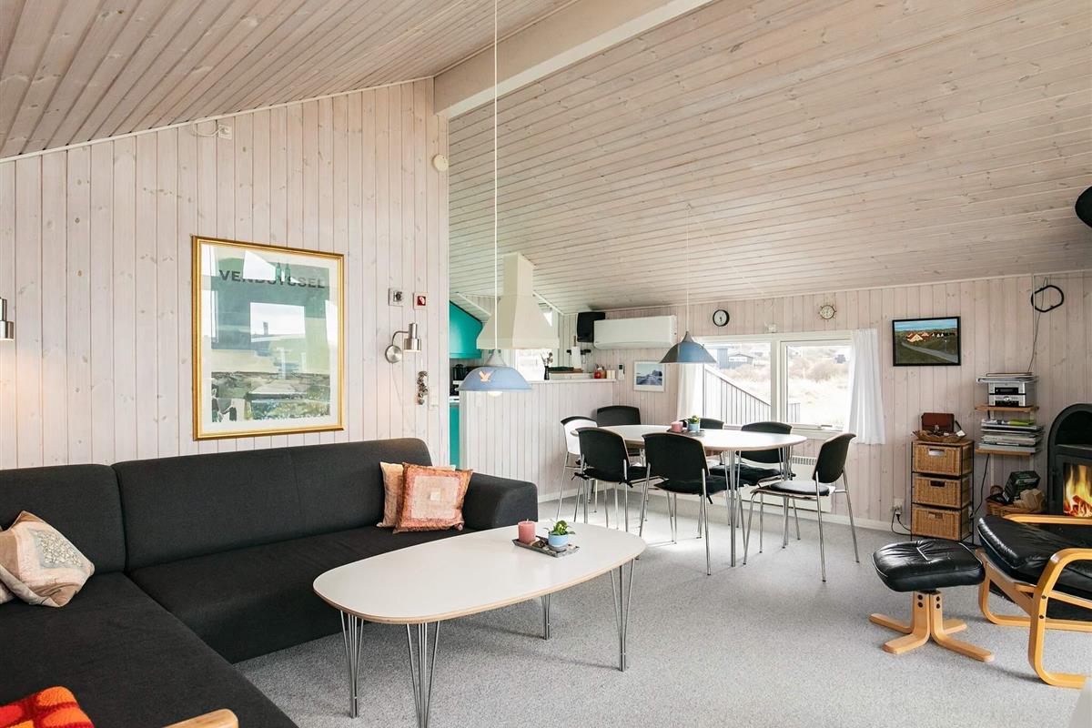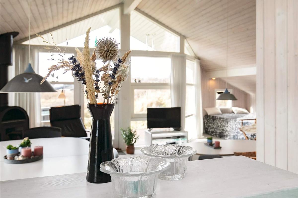 Nur ca. 100 m vom Meer, auf einem hügligen Grundstück liegt dieses gepflegte Ferienhaus. Von einigen Fenstern aus kann man das Meer so gerade noch sehen, während es auf dem Grundstück einen erhöhten Punkt gibt, von dem aus sich ein schöner Meerblick bietet. Küchen-Wohnbereich, zwei Schlafzimmer, ein Alkoven und ein Bad mit angenehmer Fußbodenheizung erwarten Sie im Haus. Es ist geschmackvoll im dänischen Ferienhausstil eingerichtet, so dass es sich die Gäste schön gemütlich machen können. Ein Holzofen verbreitet angenehme Wärme. Die Südwest-Terrasse bietet guten Windschutz, und die Südost-Terrasse ist überdacht.